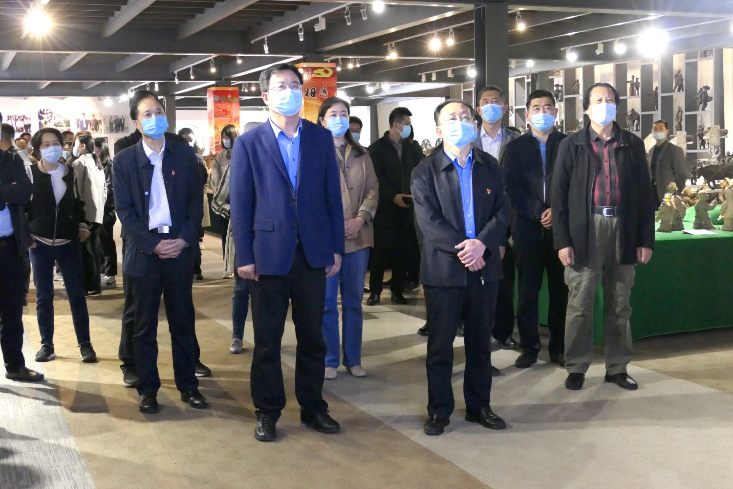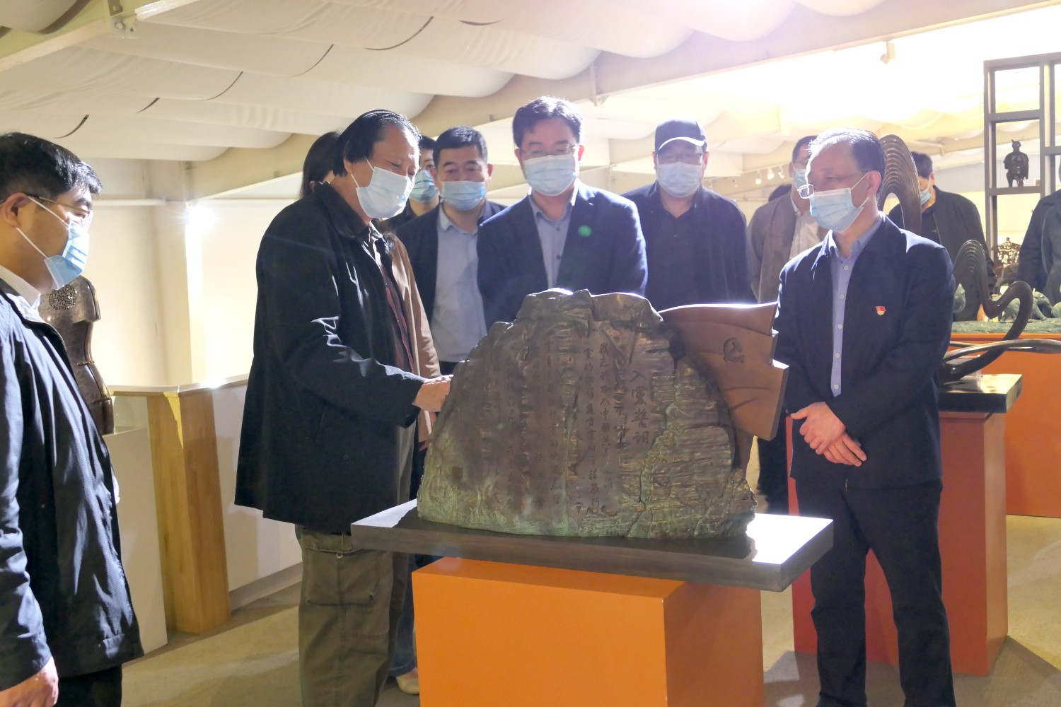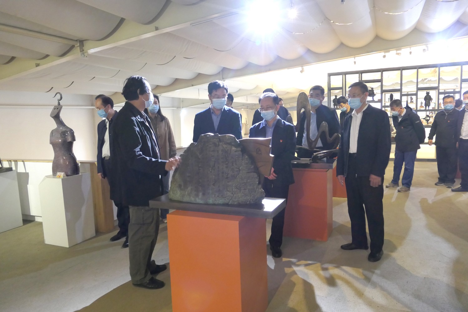 各位領(lǐng)導(dǎo)觀看大型雕塑《孫武頌》視頻