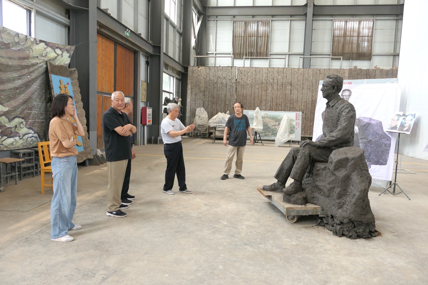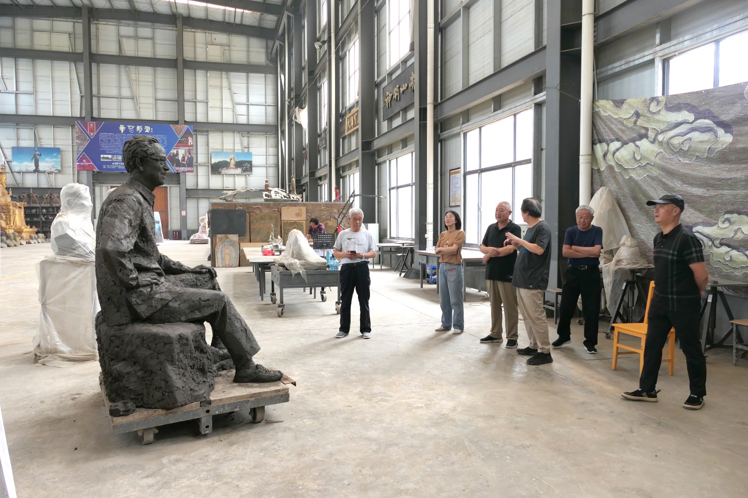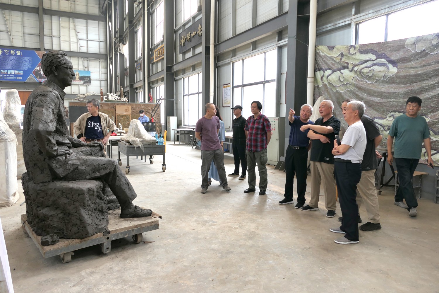 2022年6月15日,泰安葛總、周總、山農(nóng)大朱書(shū)記,譚曉霞老師及濰坊美術(shù)學(xué)院周赤舟教授,藝術(shù)家齊魯濱等嘉賓,蒞臨華藝雕塑參觀指導(dǎo),并觀看雕塑家郭心聰塑造的北京大學(xué)楊辛教授雕像泥塑。