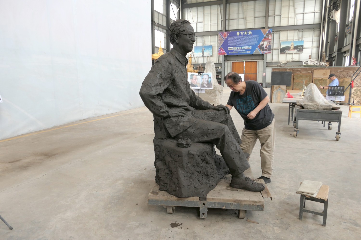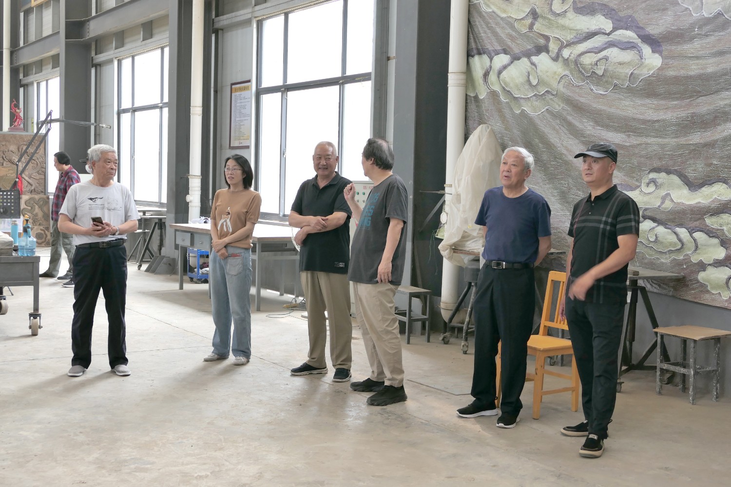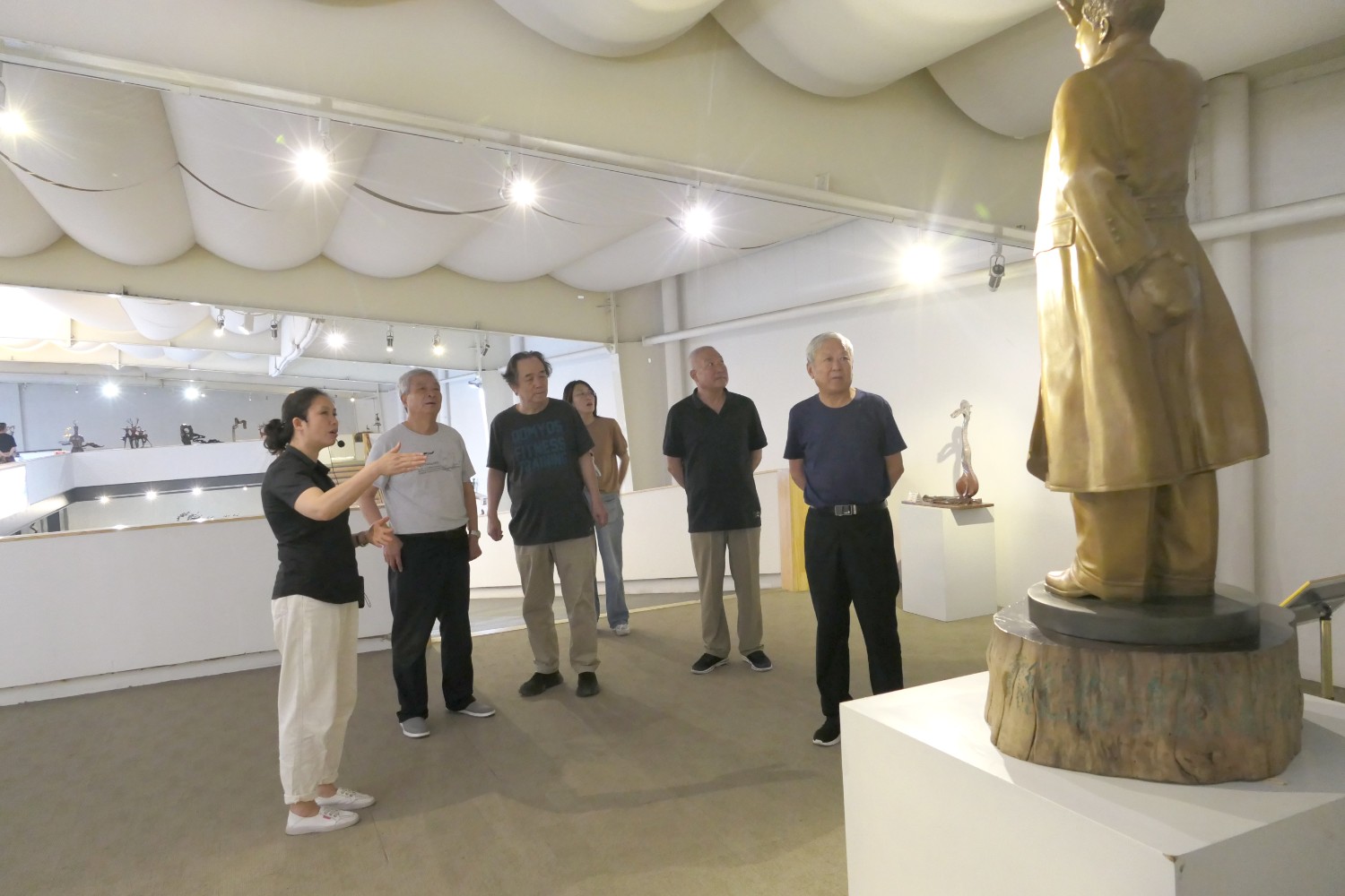 2022年6月15日,泰安葛總、周總、山農(nóng)大朱書(shū)記,譚曉霞老師及濰坊美術(shù)學(xué)院周赤舟教授,藝術(shù)家齊魯濱等嘉賓,蒞臨華藝雕塑參觀指導(dǎo),并觀看雕塑家郭心聰塑造的北京大學(xué)楊辛教授雕像泥塑。
