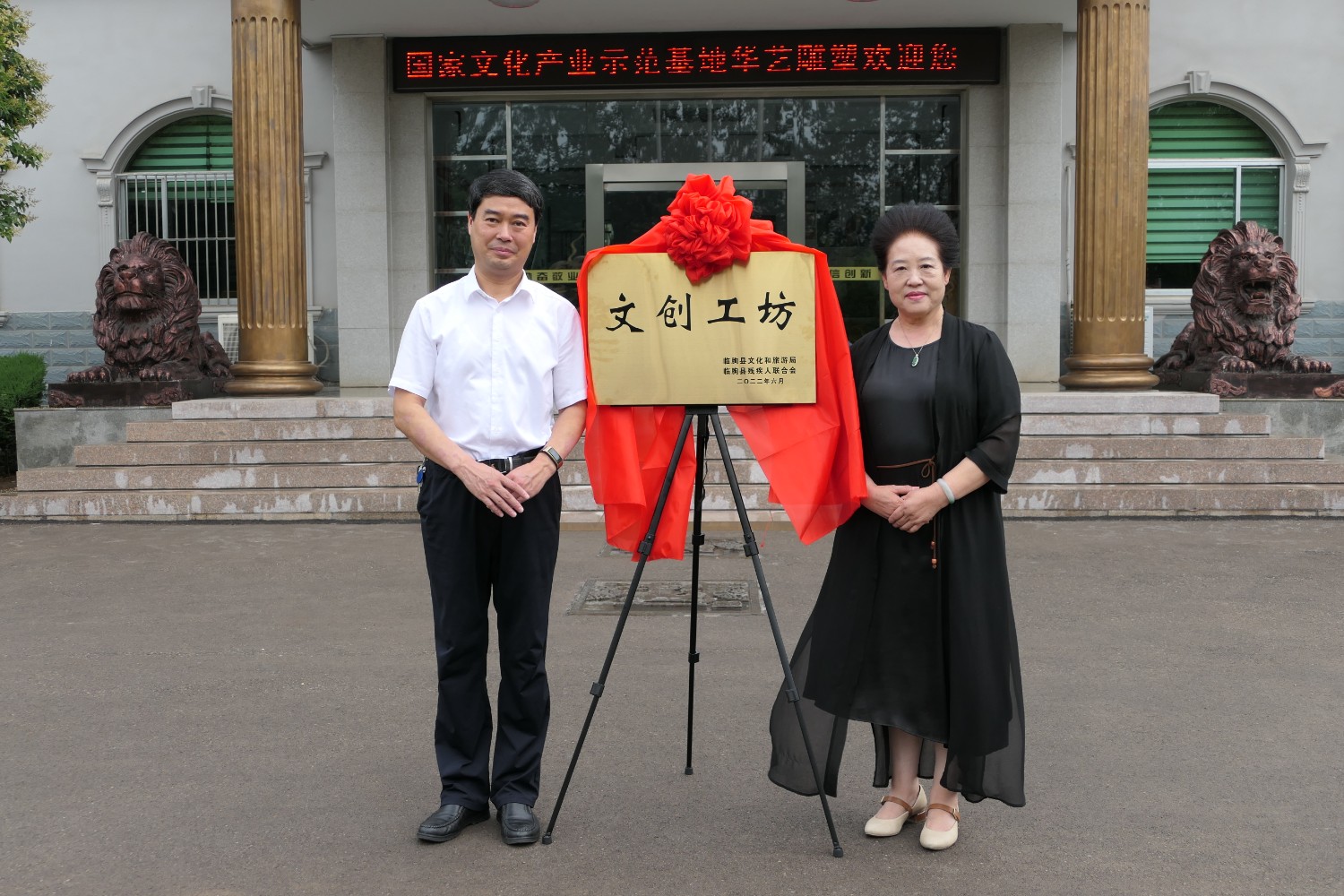 2022年6月16日,臨朐縣殘聯(lián)理事長孟凡政一行蒞臨華藝雕塑,舉行《文創(chuàng)工坊》授牌儀式,華藝雕塑總經(jīng)理譚宏偉出席授牌儀式并代表企業(yè)感謝縣殘聯(lián)的關(guān)心和支持,做好文創(chuàng)新產(chǎn)品的研發(fā),大力發(fā)展殘疾人文化產(chǎn)業(yè)和事業(yè)。