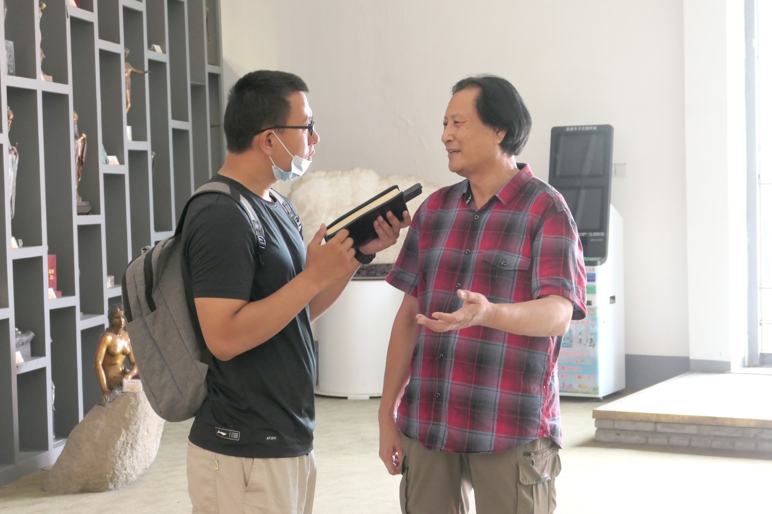 2022-7-92022年6月30日,中國(guó)互聯(lián)網(wǎng)新聞中心(中國(guó)網(wǎng))、中國(guó)網(wǎng)儒學(xué)頻道總編栗娟,中國(guó)網(wǎng)采編記者張嚴(yán),中國(guó)孔子網(wǎng)視頻記者王云鵬,魯網(wǎng)濰坊新聞中心采編部副主任王玉龍一行,在縣委宣傳部文化科祝紅蕾科長(zhǎng)陪同下,蒞臨華藝參觀指導(dǎo)并進(jìn)行采訪活動(dòng),傅紹相介紹文創(chuàng)作品的創(chuàng)作過(guò)程。