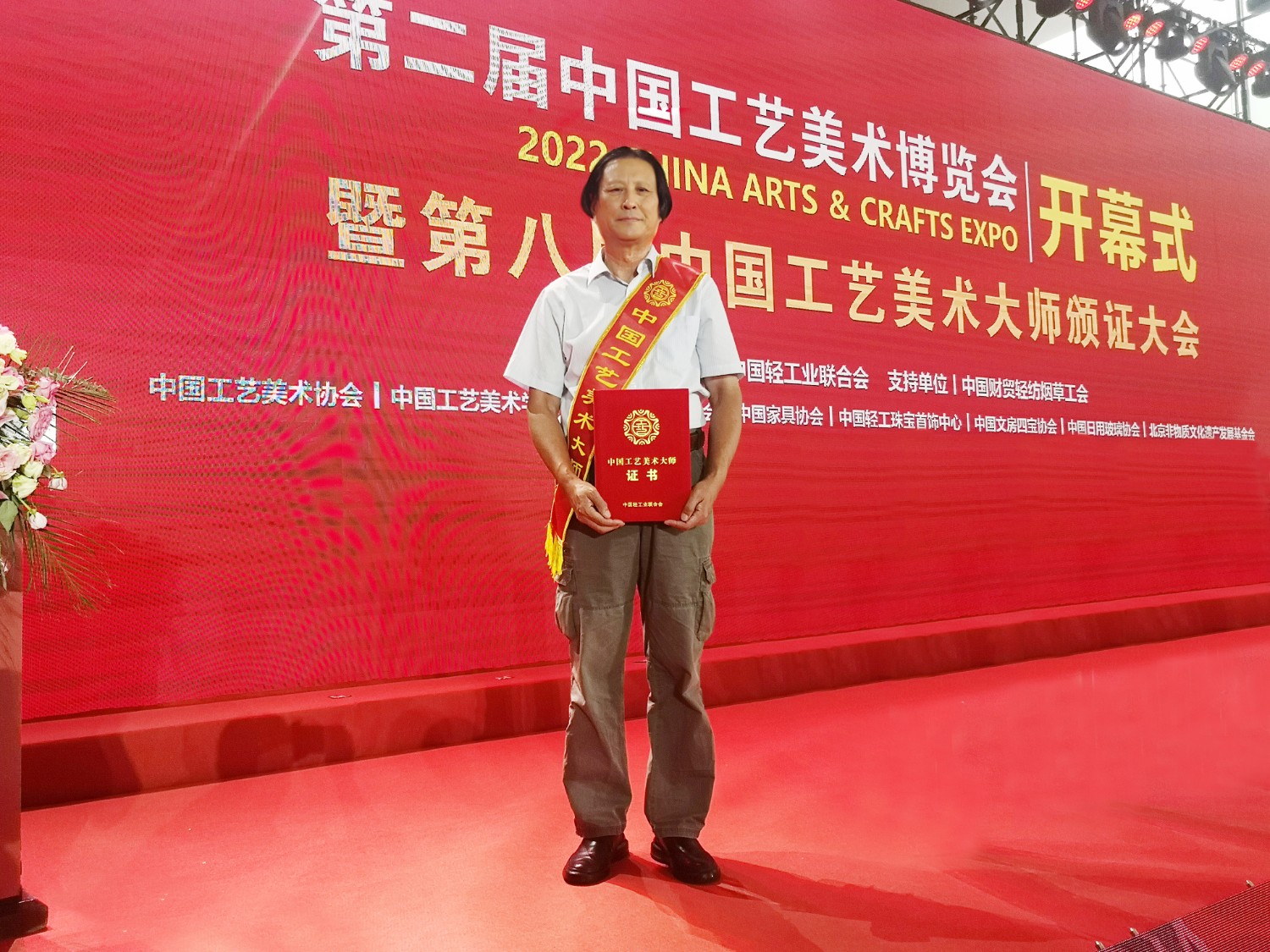 2022年8月18日上午,由中國輕工業(yè)聯(lián)合會主辦、中國財貿輕紡工會支持,中國工藝美術協(xié)會、中國工藝美術學會、中國陶瓷工業(yè)協(xié)會、中國家具協(xié)會、中國輕工珠寶首飾中心等協(xié)辦的“第二屆中國工藝美術博覽會”在南京國際會展中心隆重開幕。同時,在工信部指導下,舉行了“第八屆中國工藝美術大師”頒證大會。
