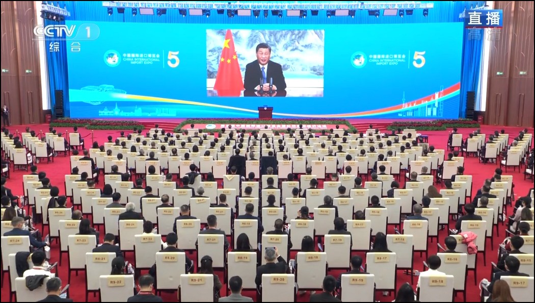 國家主席習近平以視頻方式出席在上海舉行的第五屆中國國際進口博覽會開幕式并發(fā)表題為《共創(chuàng)開放繁榮的美好未來》的致辭