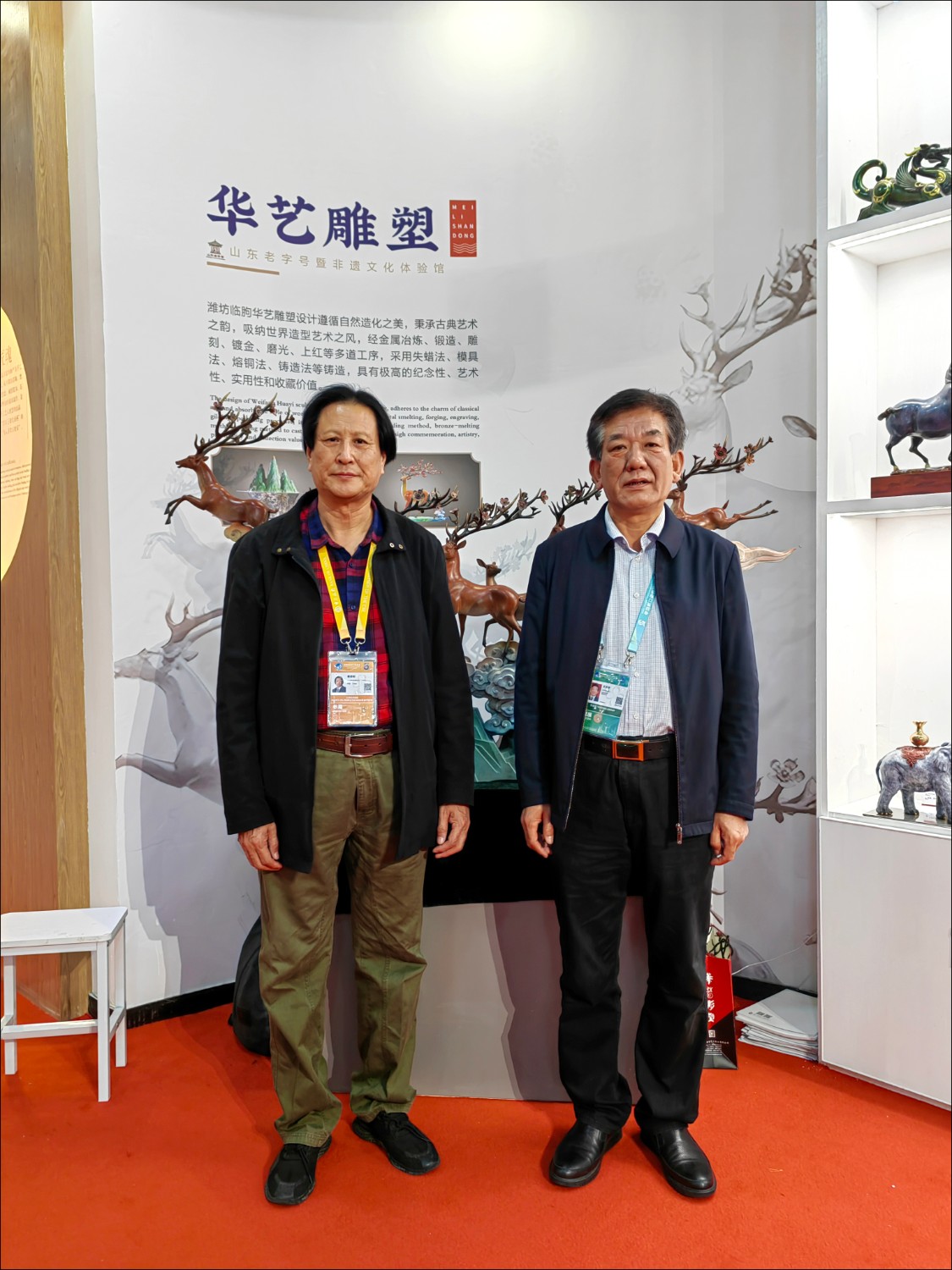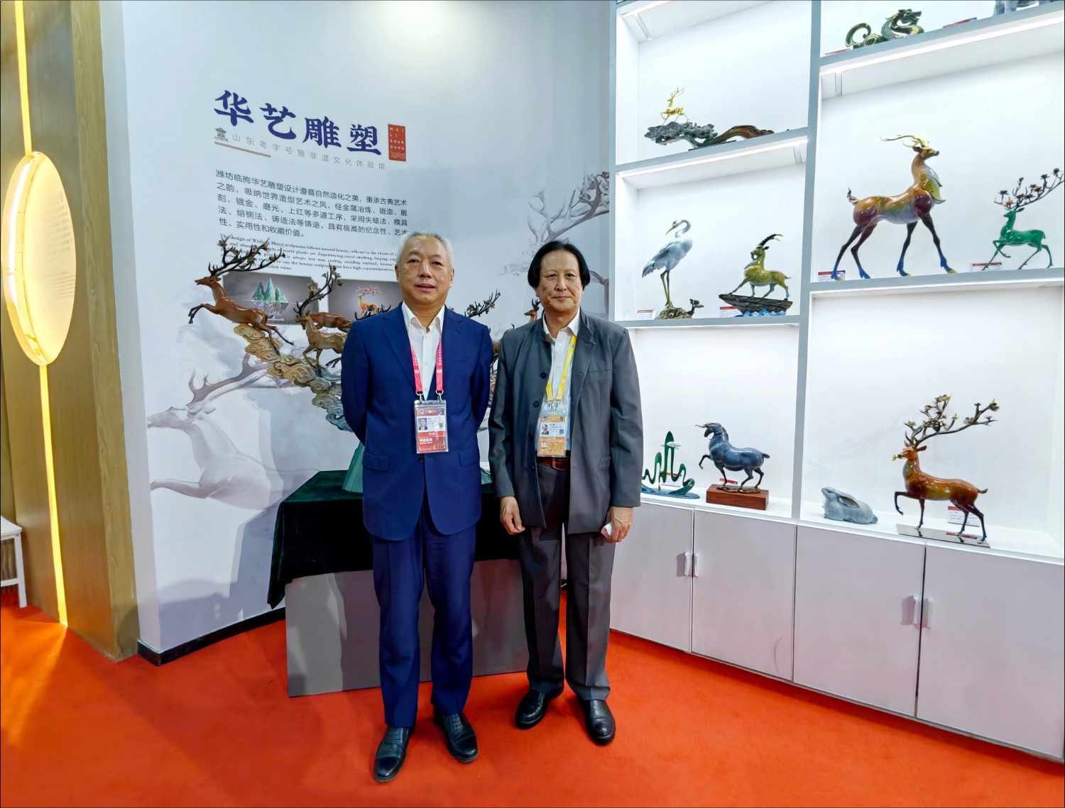 山東省副省長凌文與傅紹相在華藝雕塑展區(qū)合影留念