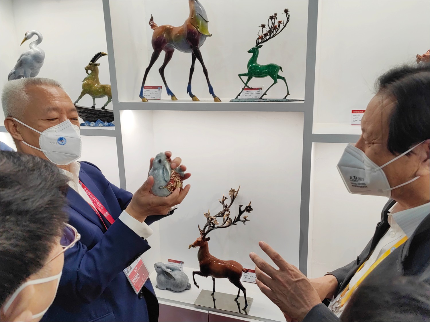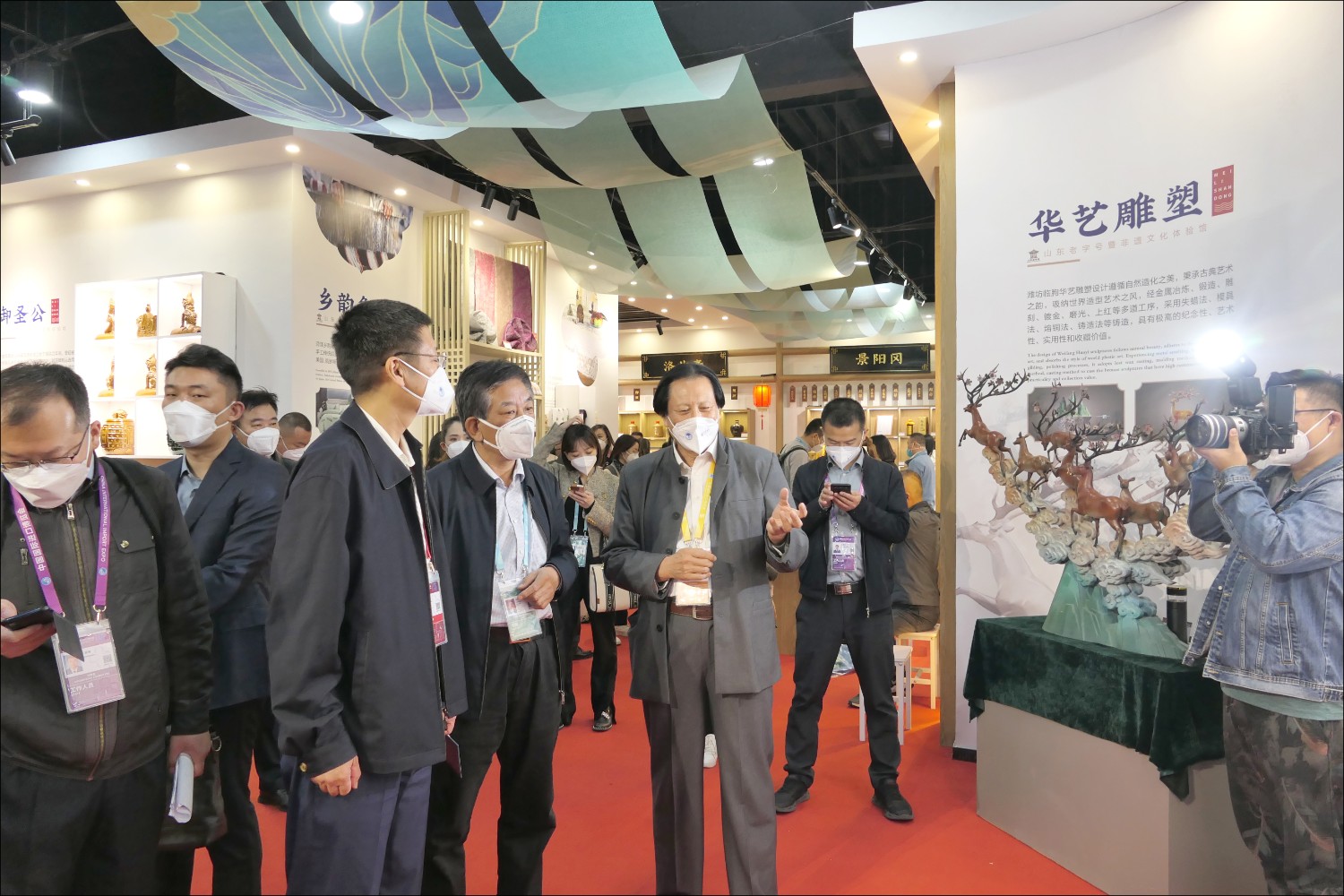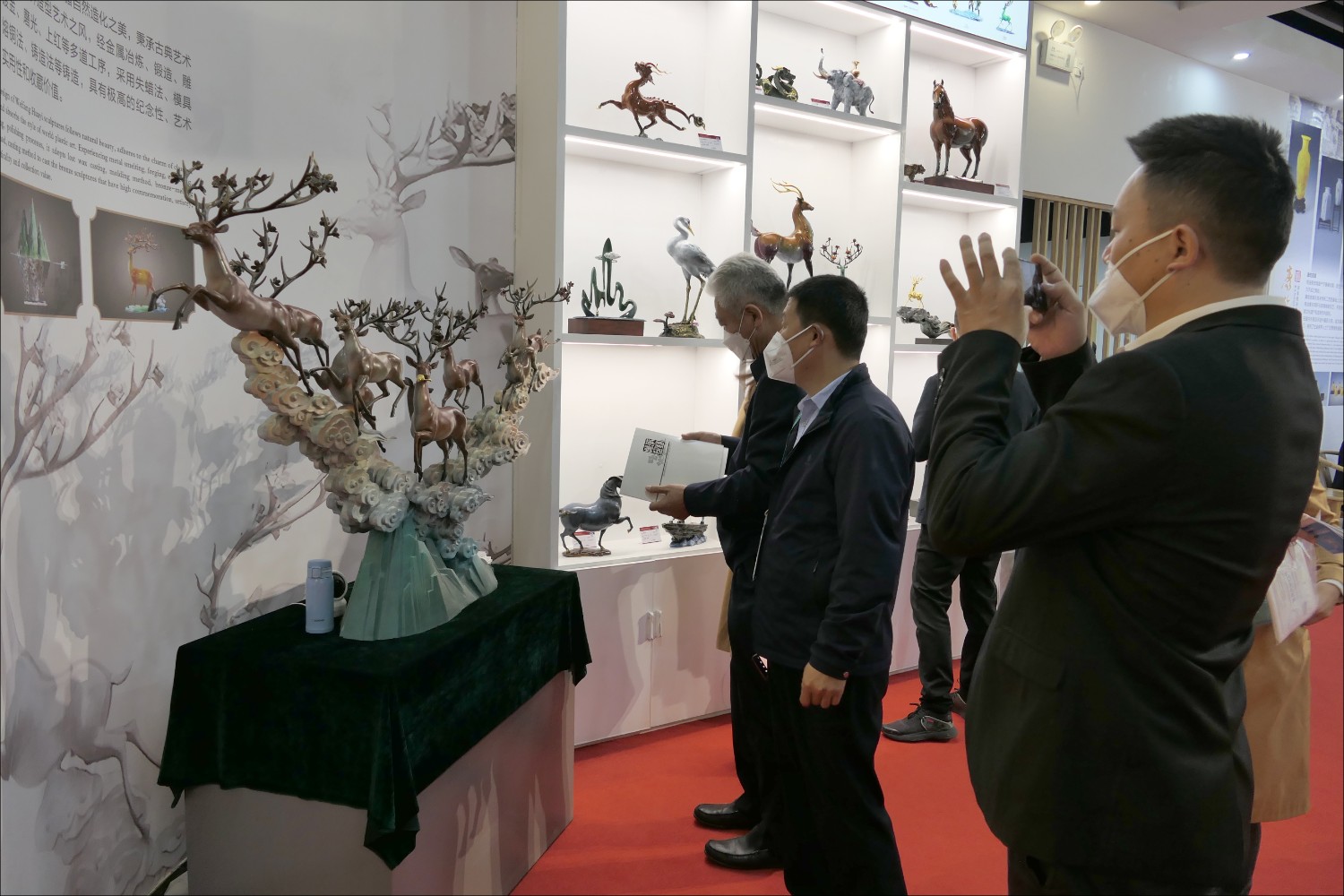 嘉賓參觀華藝雕塑展區(qū)文創(chuàng)作品