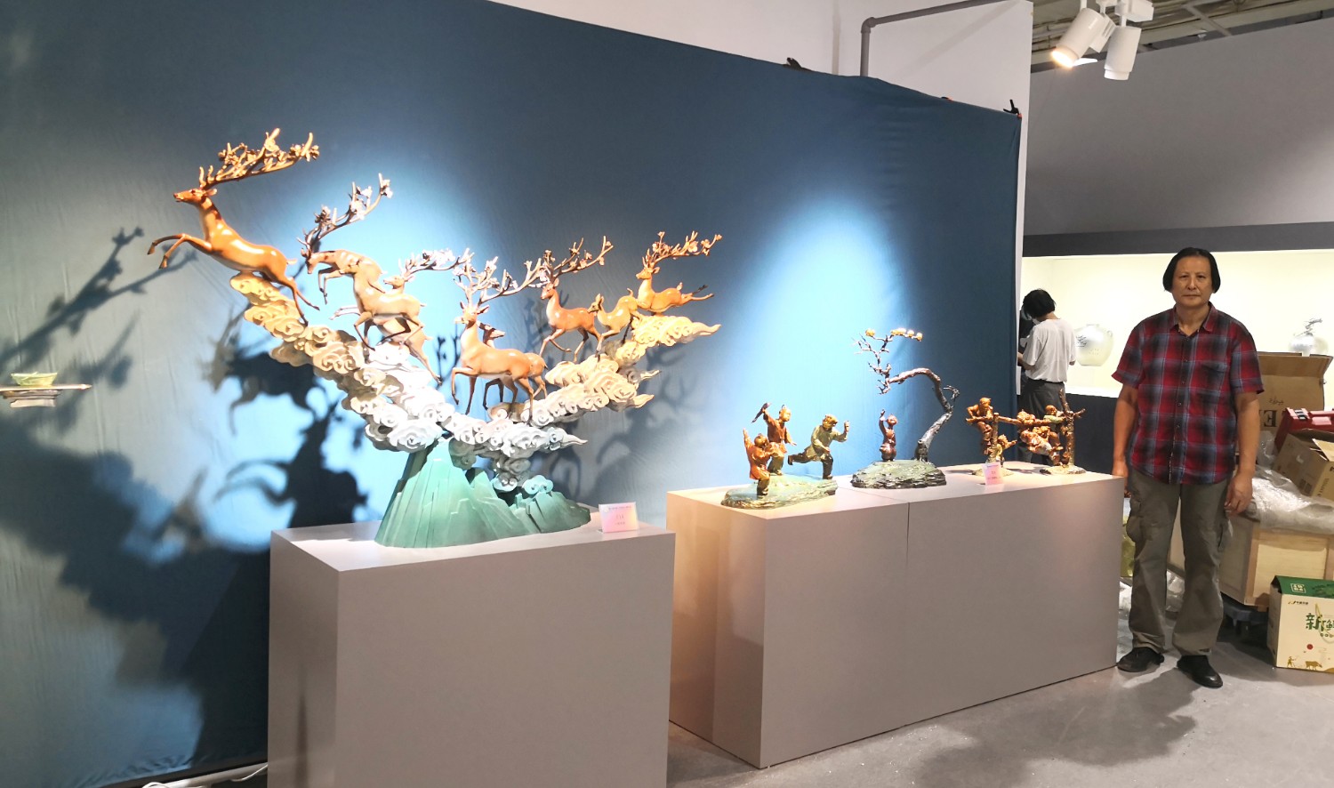 2022年7月20日,第八屆中國(guó)工藝美術(shù)大師評(píng)選在廣州南豐匯國(guó)際展覽中心隆重舉行,傅紹相精心布展的三件套作品《九鹿鳴春》《綠水青山》《放飛?放歌夢(mèng)想?山娃》參加評(píng)審,經(jīng)過(guò)第八屆中國(guó)工藝美術(shù)大師評(píng)審組的公平公正的嚴(yán)格評(píng)審,傅紹相榮獲“第八屆工藝美術(shù)大師”稱號(hào)。