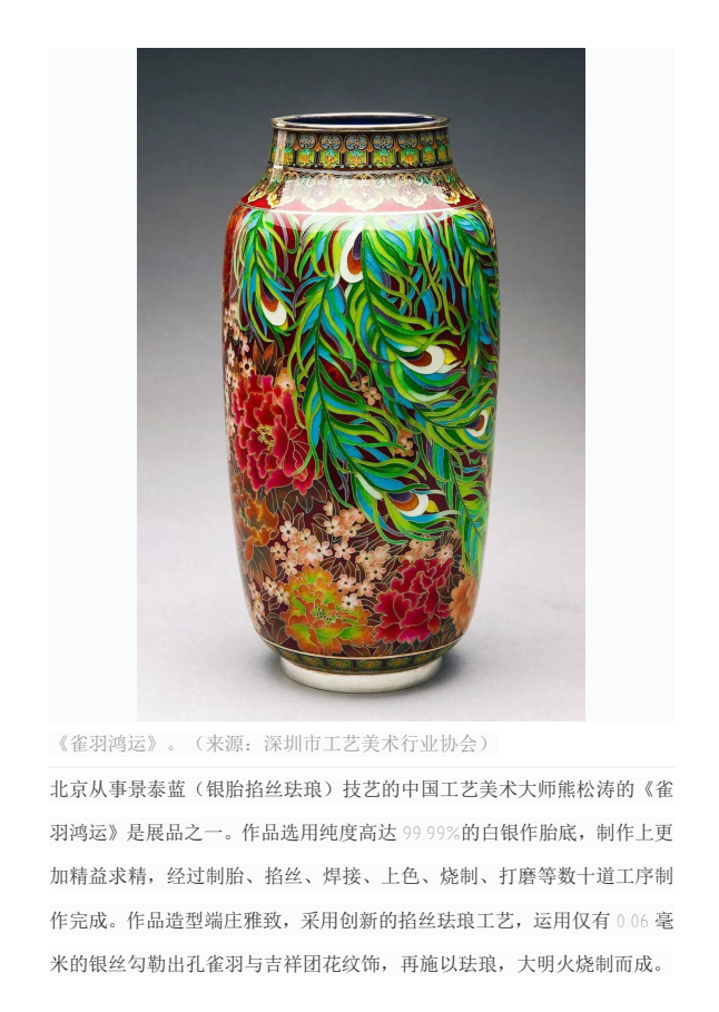 參觀中國(guó)工藝美術(shù)大師傅紹相作品《綠水青山》《一路祥瑞》