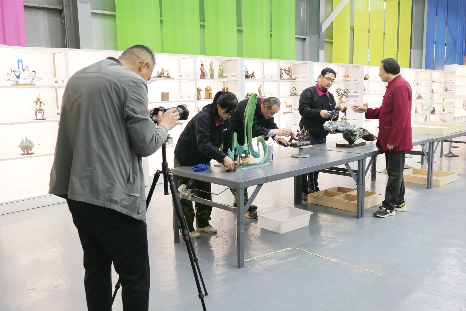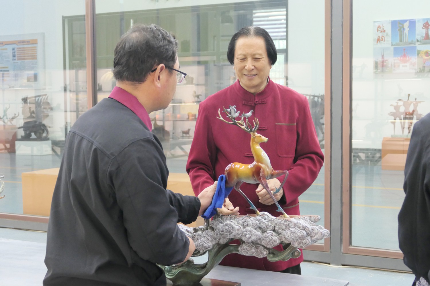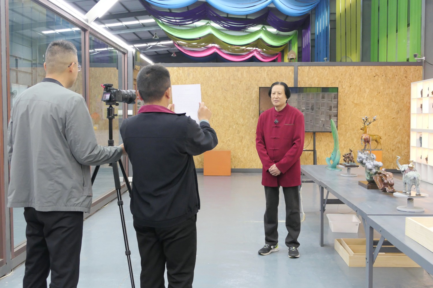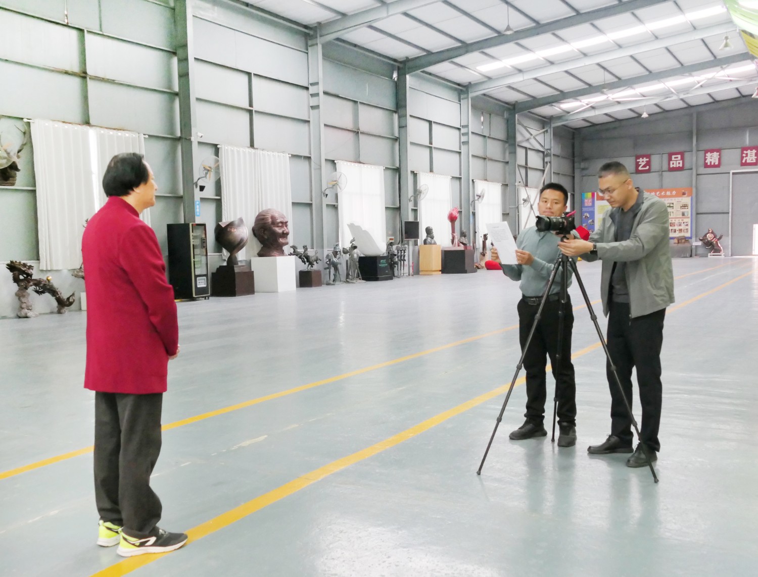 2023年4月4日,臨朐縣電視臺(tái)記者蘇凱來華藝拍攝選送“第40屆濰坊國際風(fēng)箏會(huì)”展出的四件青銅作品《一路祥瑞》《放飛》《山青水韻》《太平吉象》,傅紹相參加采訪視頻。