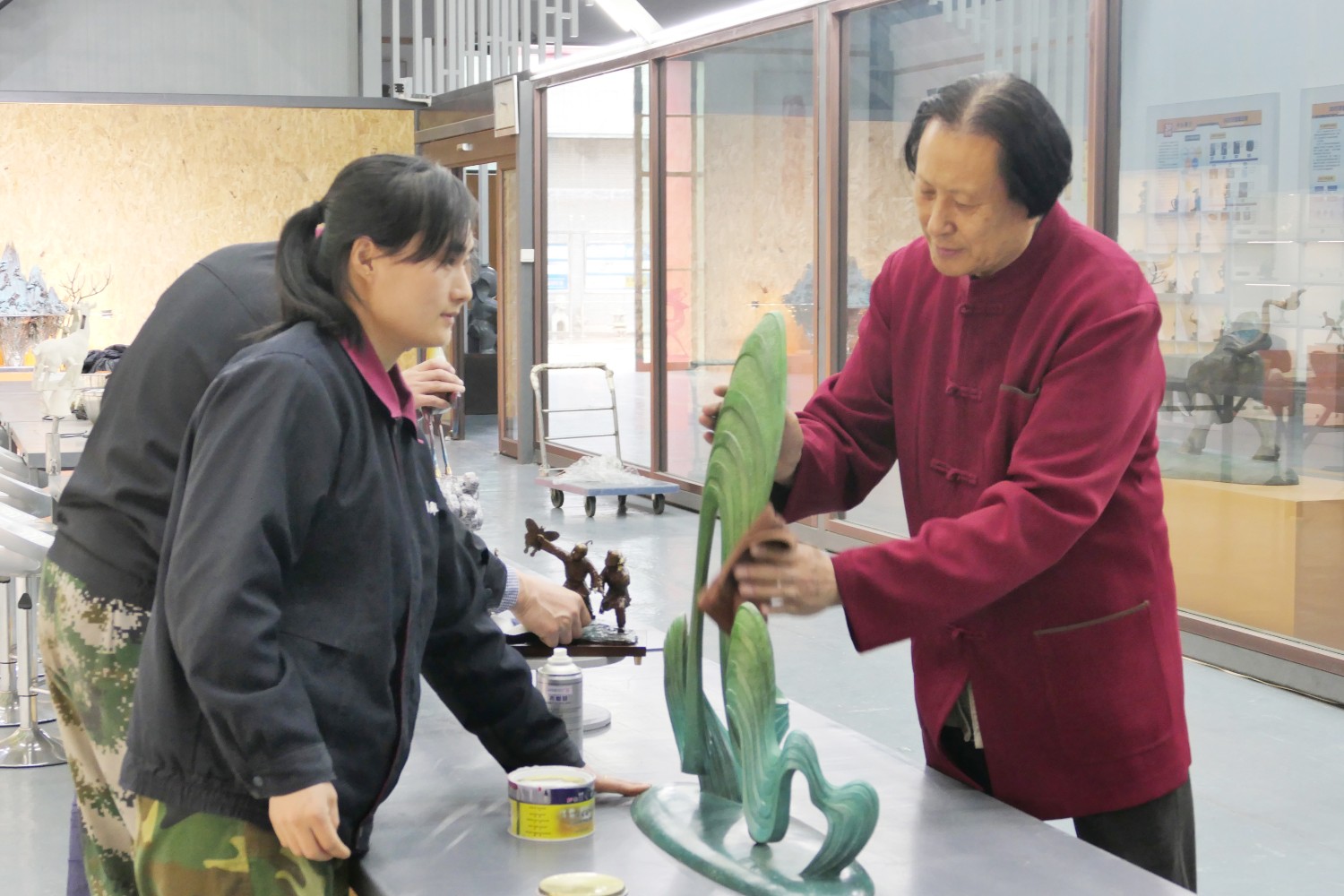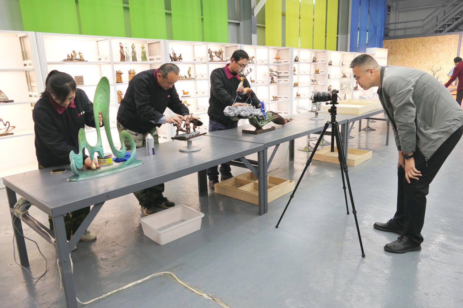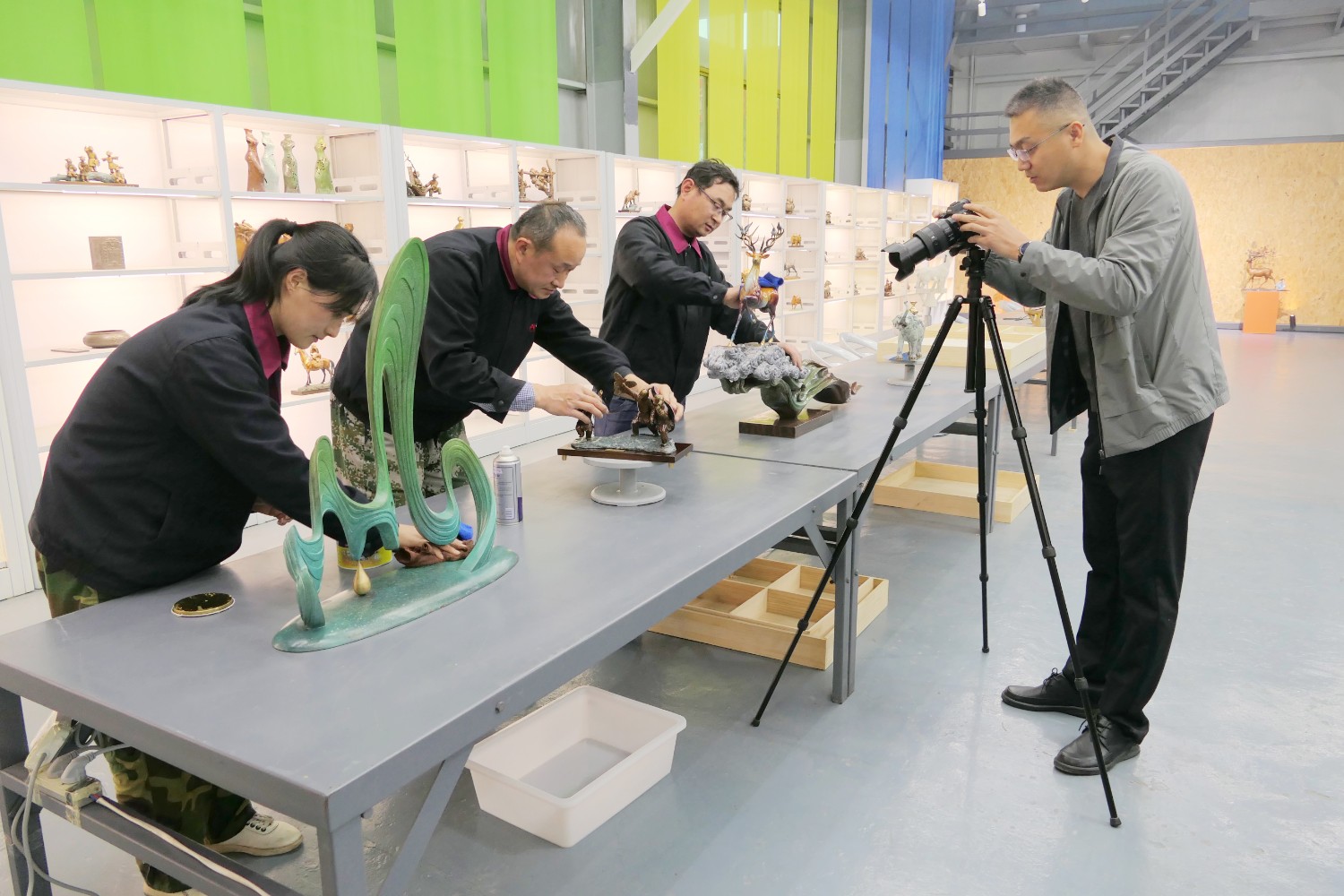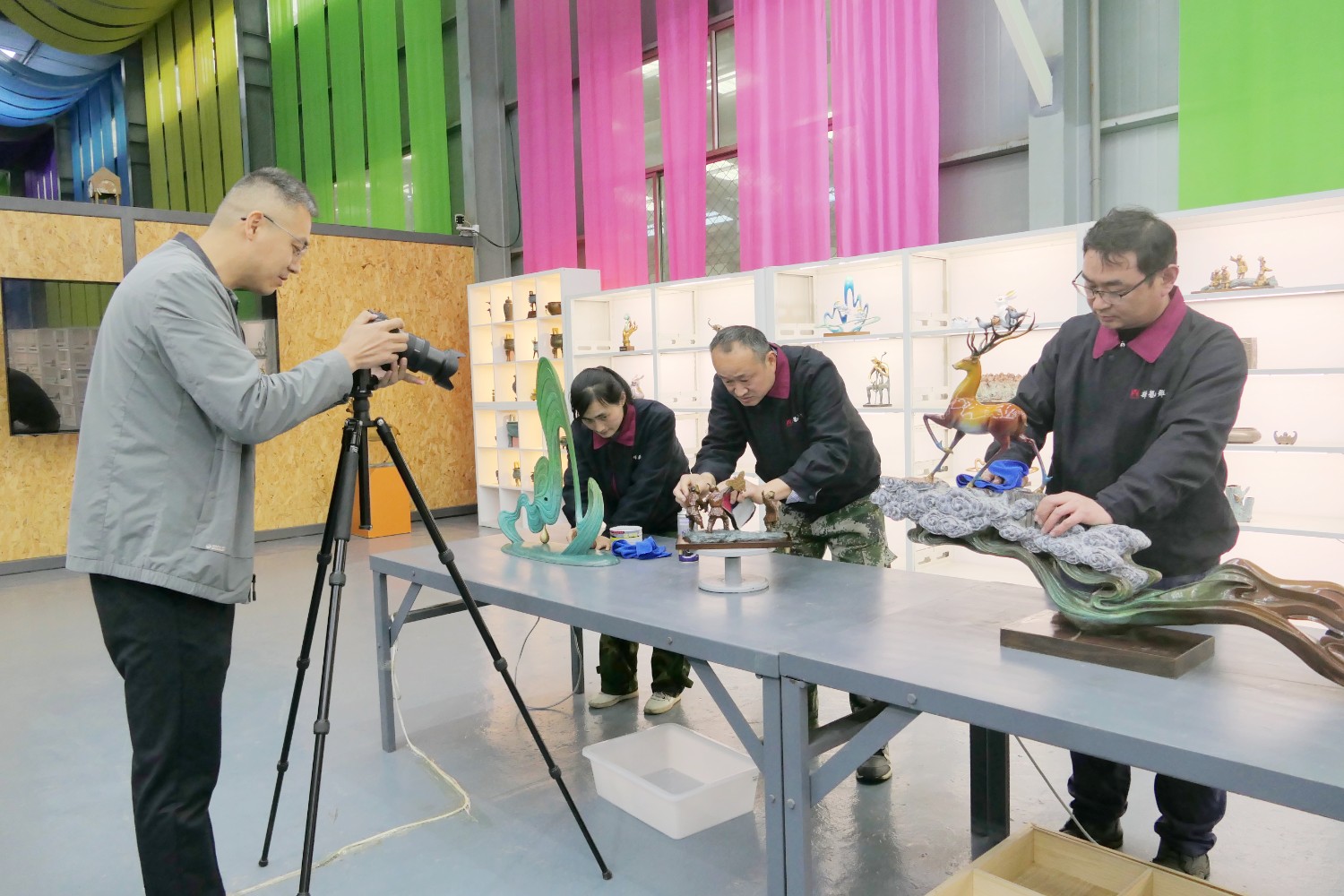 2023年4月4日,臨朐縣電視臺(tái)記者蘇凱來華藝拍攝選送“第40屆濰坊國際風(fēng)箏會(huì)”展出的四件青銅作品《一路祥瑞》《放飛》《山青水韻》《太平吉象》,傅紹相參加采訪視頻。