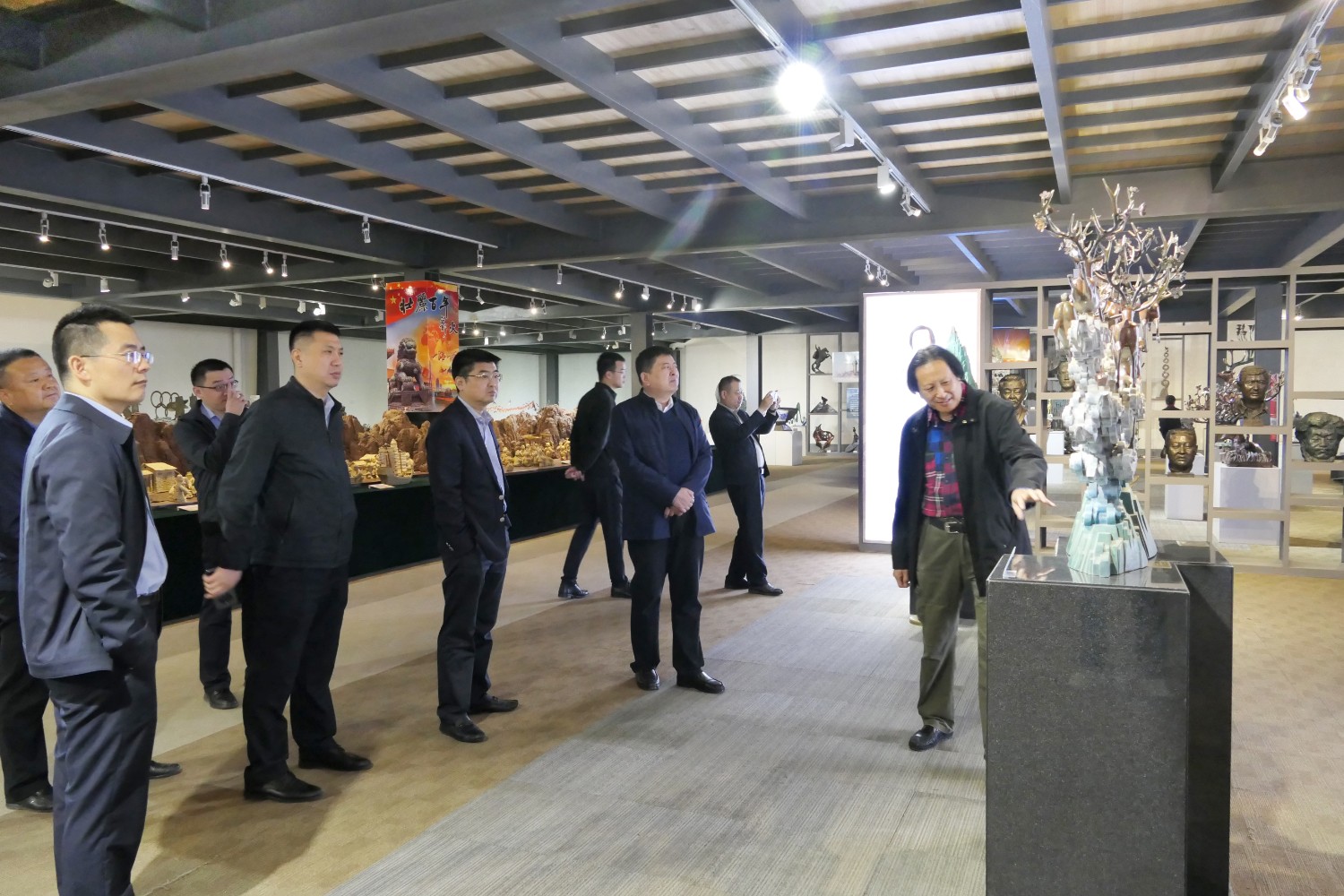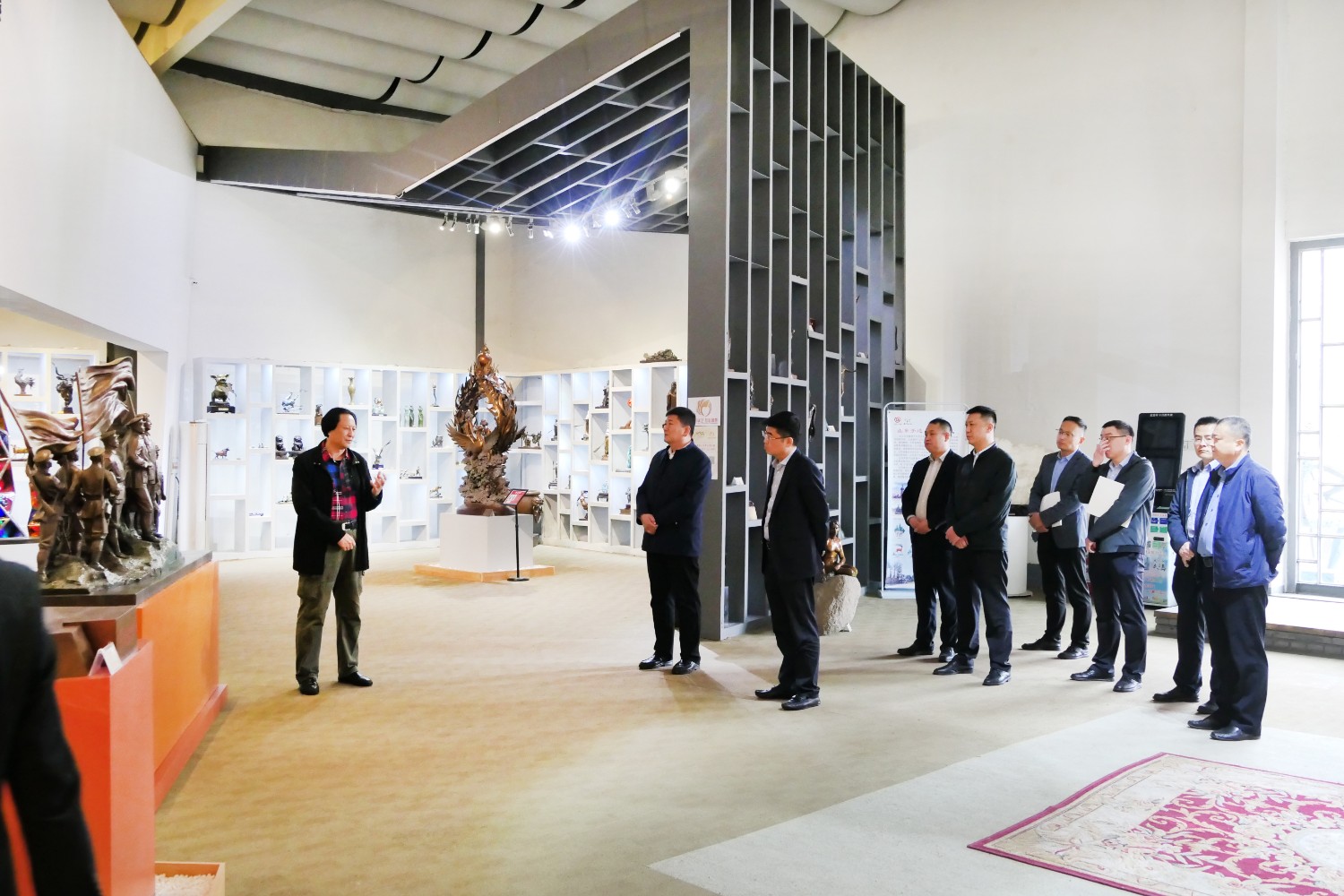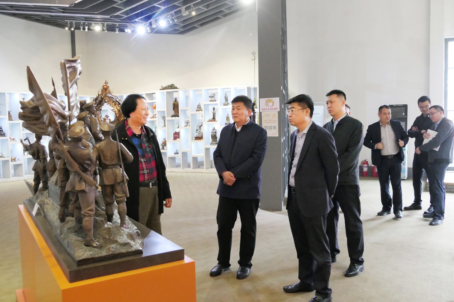 2023年4月23日,濰坊創(chuàng)新投資集團有限公司李曉華總裁一行,在臨朐縣稅務(wù)局王鈺局長的陪同下,蒞臨華藝參觀指導(dǎo),并洽談合作事宜。傅紹相介紹雕塑藝術(shù)。