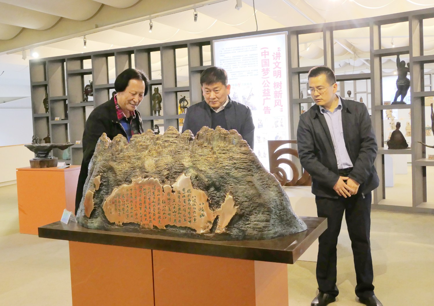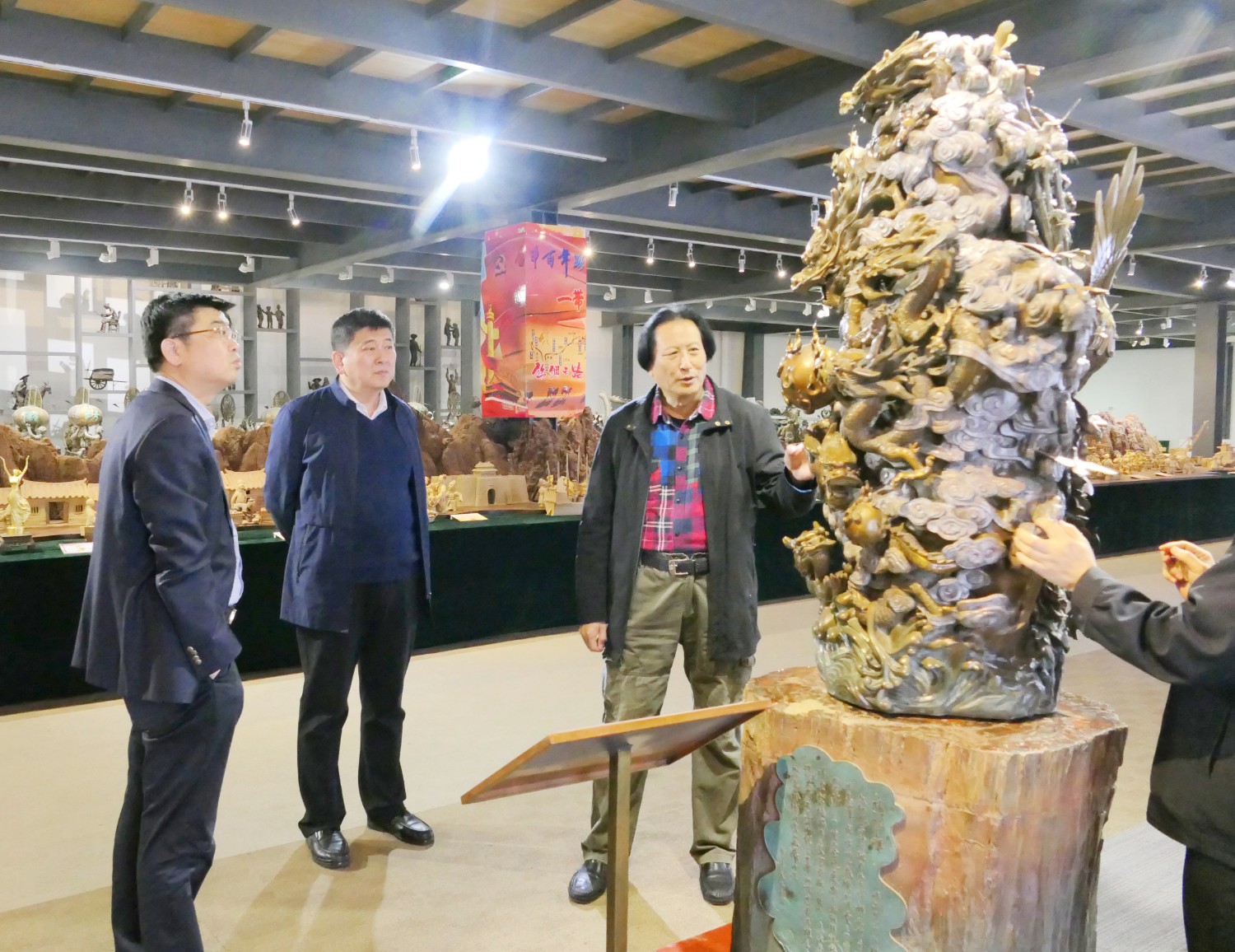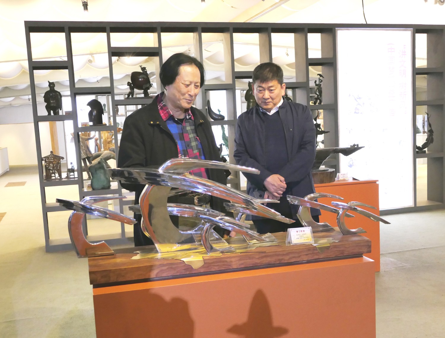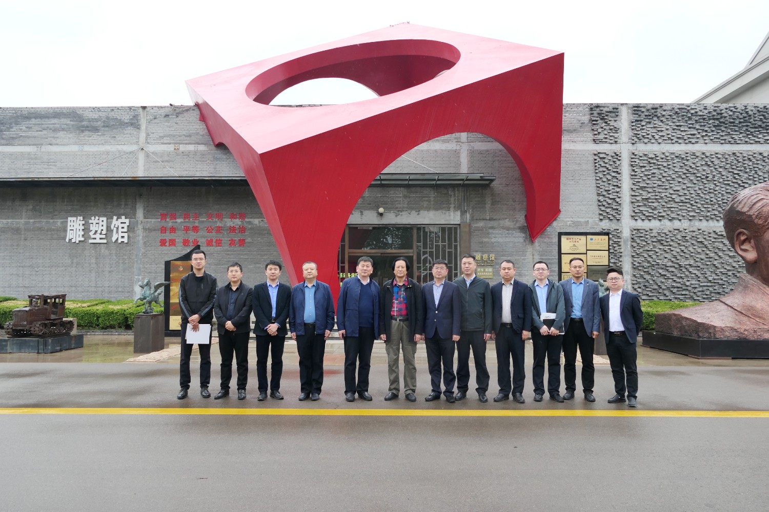 2023年4月23日,濰坊創(chuàng)新投資集團有限公司李曉華總裁一行,在臨朐縣稅務(wù)局王鈺局長的陪同下,蒞臨華藝參觀指導(dǎo),并洽談合作事宜。傅紹相介紹雕塑藝術(shù)。