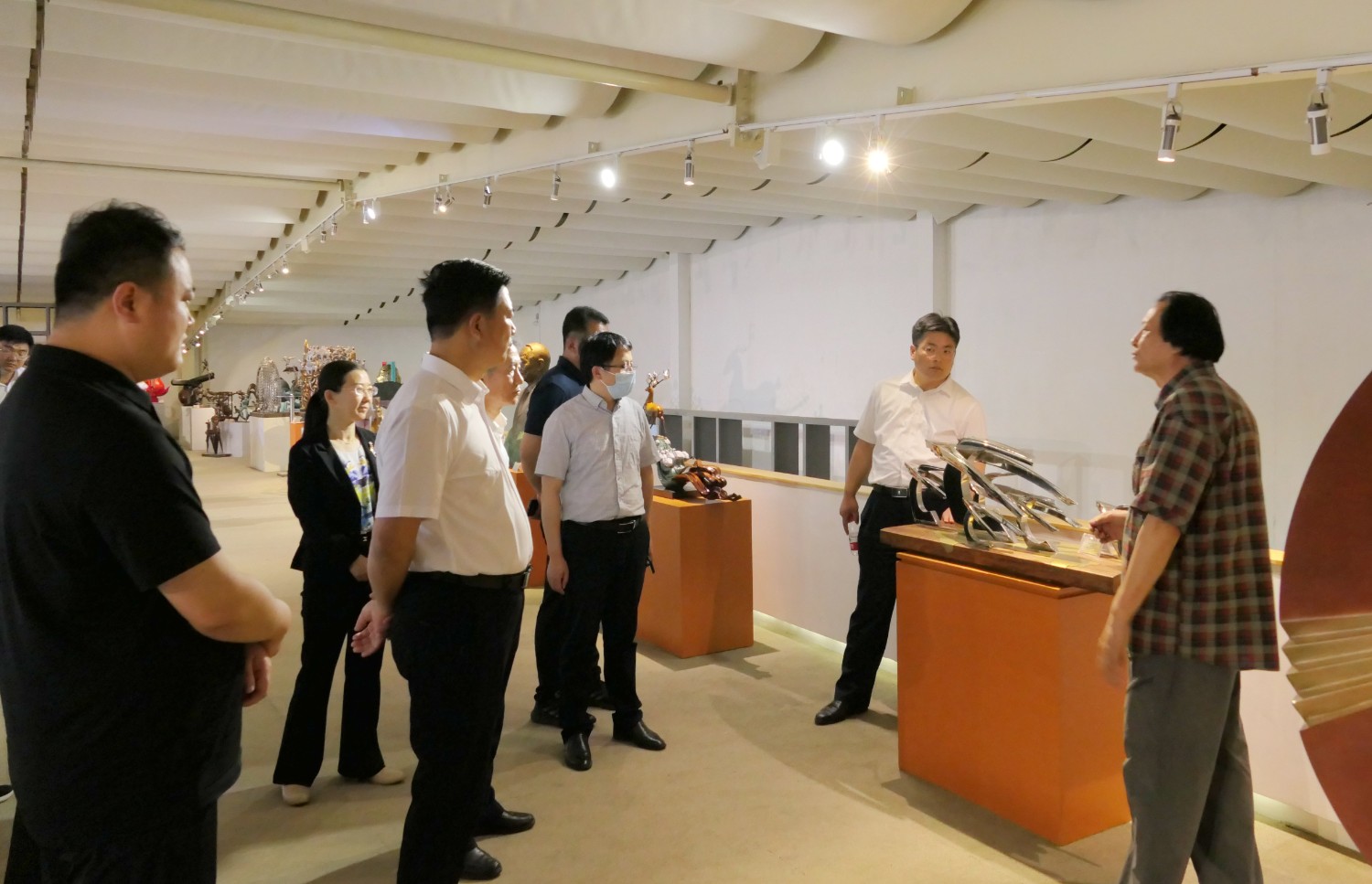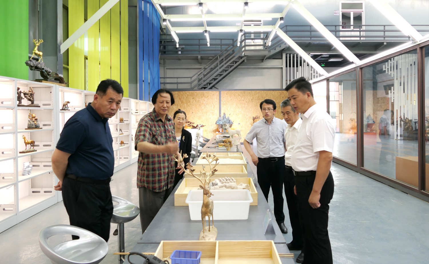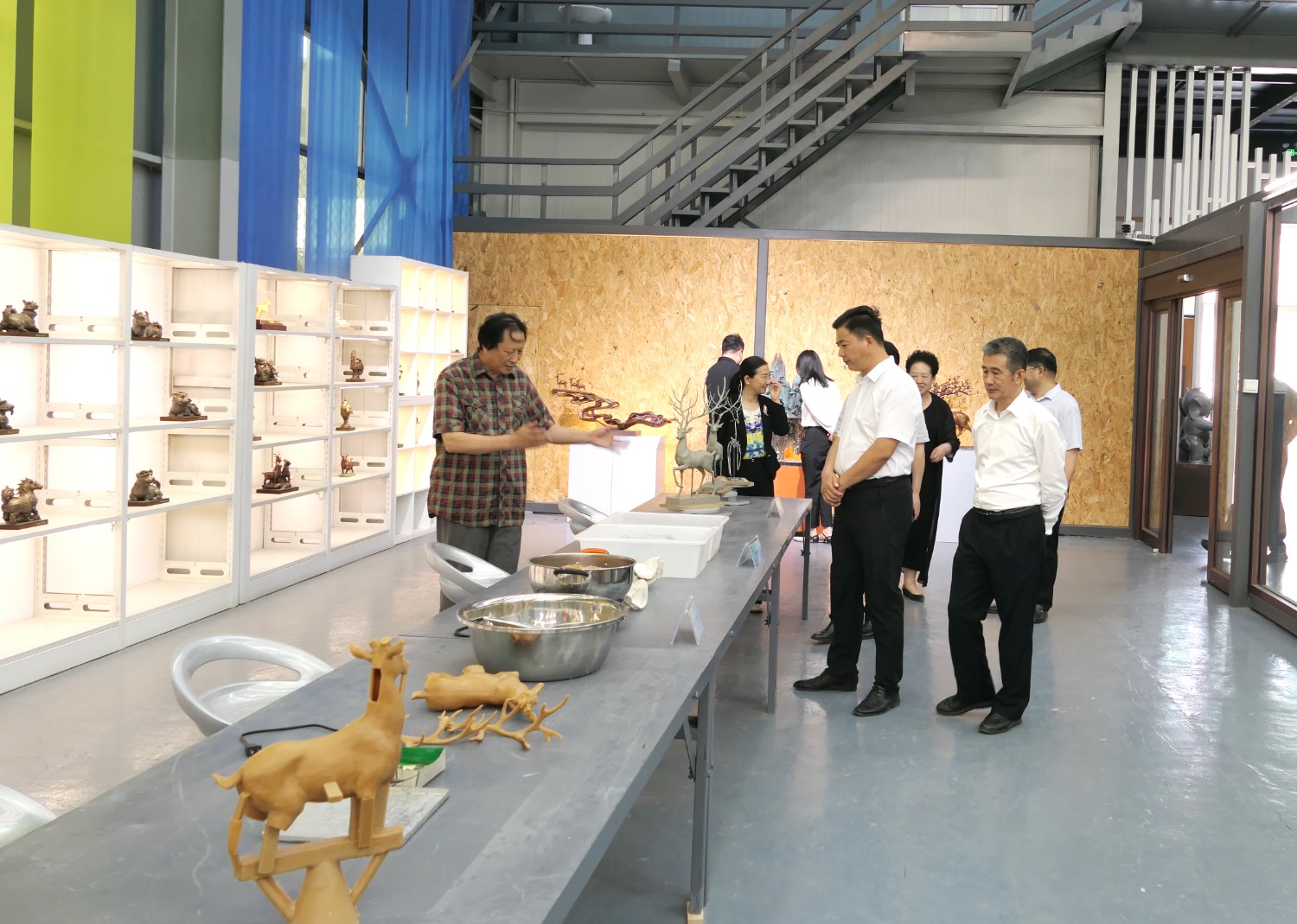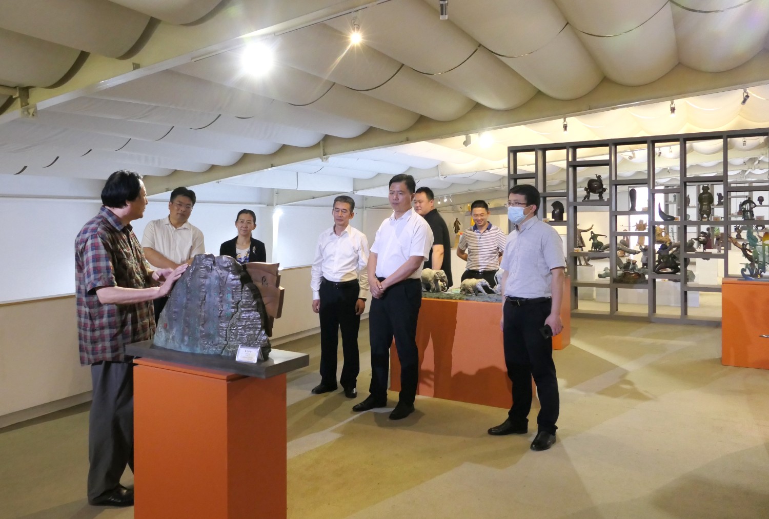 2023年5月18日,山東省文旅廳二級調(diào)研員田忠民處長在濰坊市委宣傳部副部長李傳江的陪同下,來臨朐開展調(diào)研工作活動,并蒞臨華藝雕塑參觀指導,臨朐縣委劉艷芳書記,縣宣傳部長劉瑩有,縣文旅局局長朱占花,城管街辦王法周等領導陪同活動,傅紹相介紹雕塑藝術。