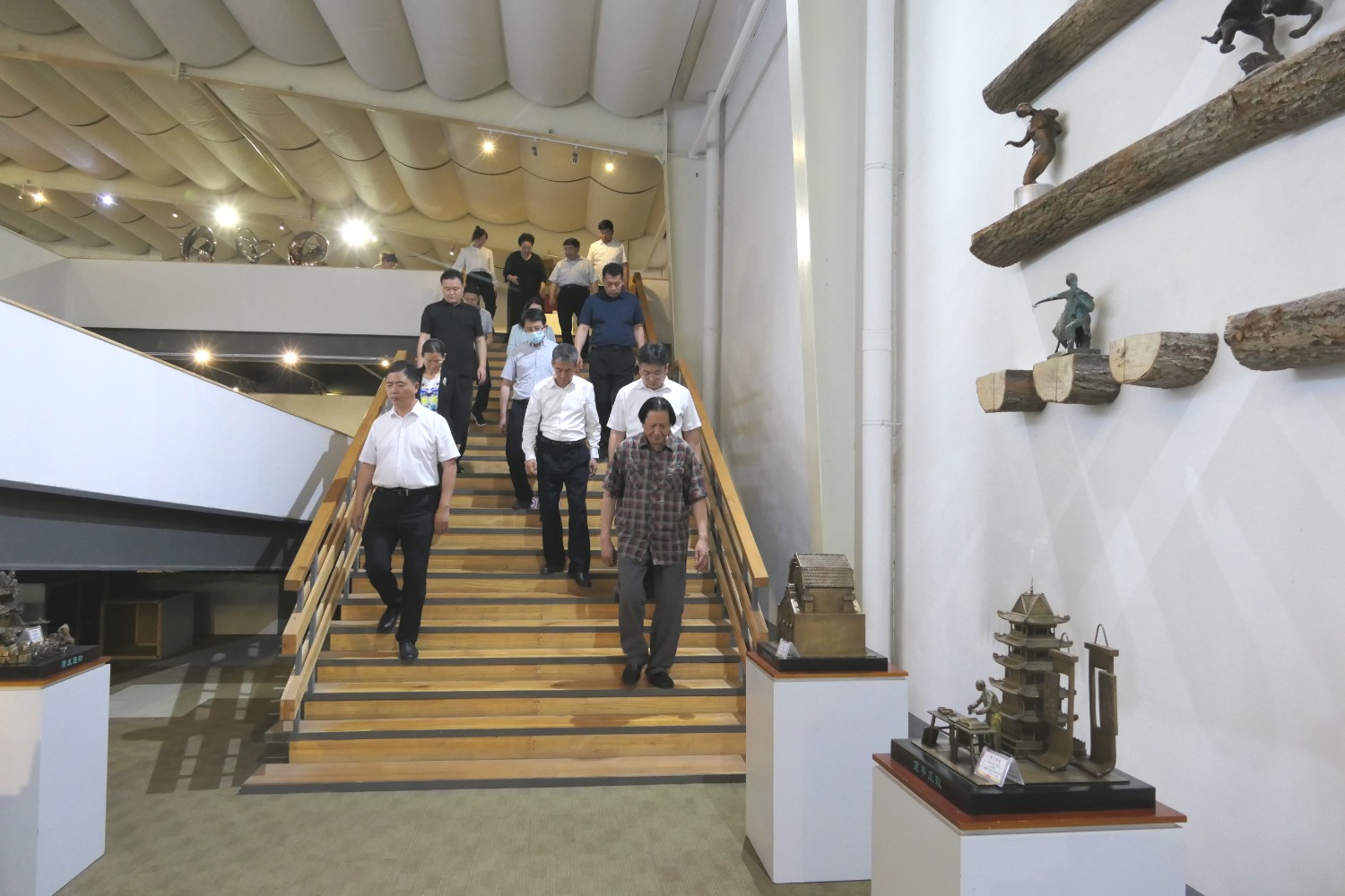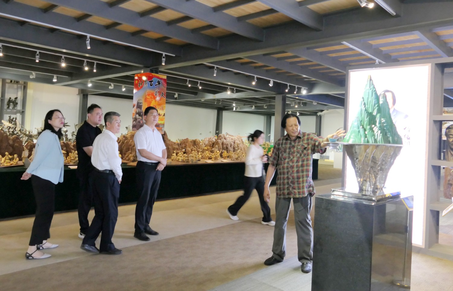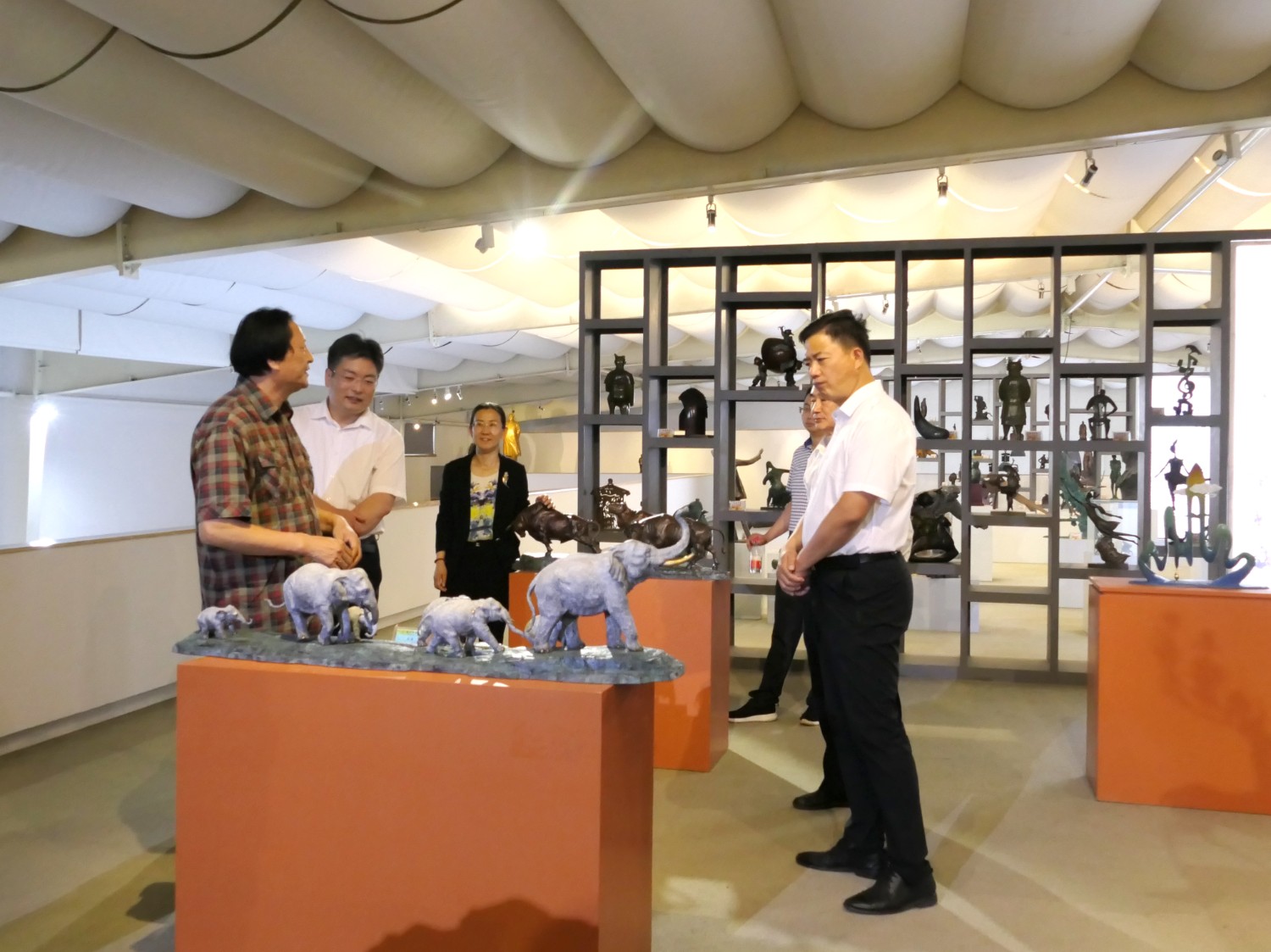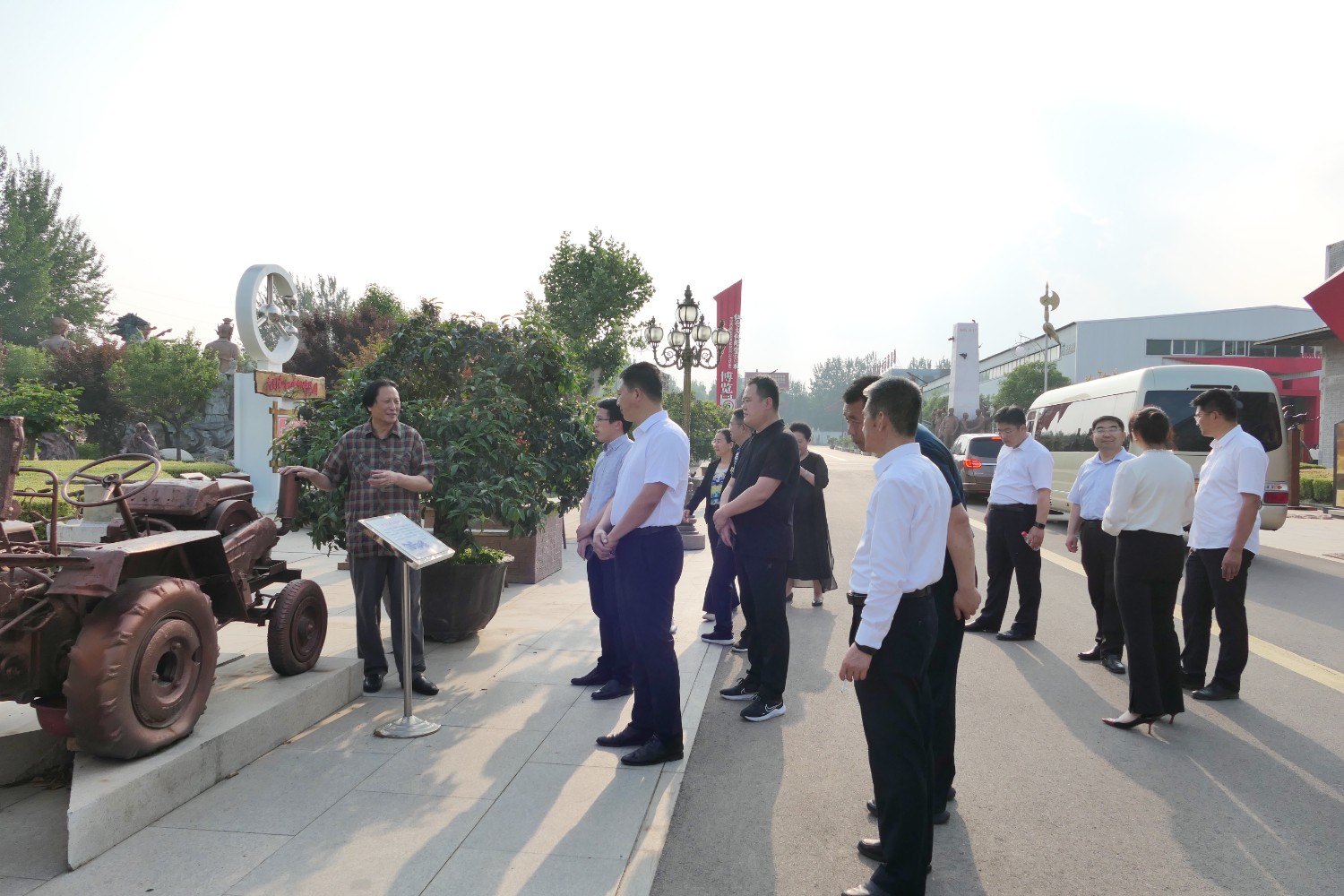 2023年5月18日,山東省文旅廳二級調(diào)研員田忠民處長在濰坊市委宣傳部副部長李傳江的陪同下,來臨朐開展調(diào)研工作活動,并蒞臨華藝雕塑參觀指導,臨朐縣委劉艷芳書記,縣宣傳部長劉瑩有,縣文旅局局長朱占花,城管街辦王法周等領導陪同活動,傅紹相介紹雕塑藝術。