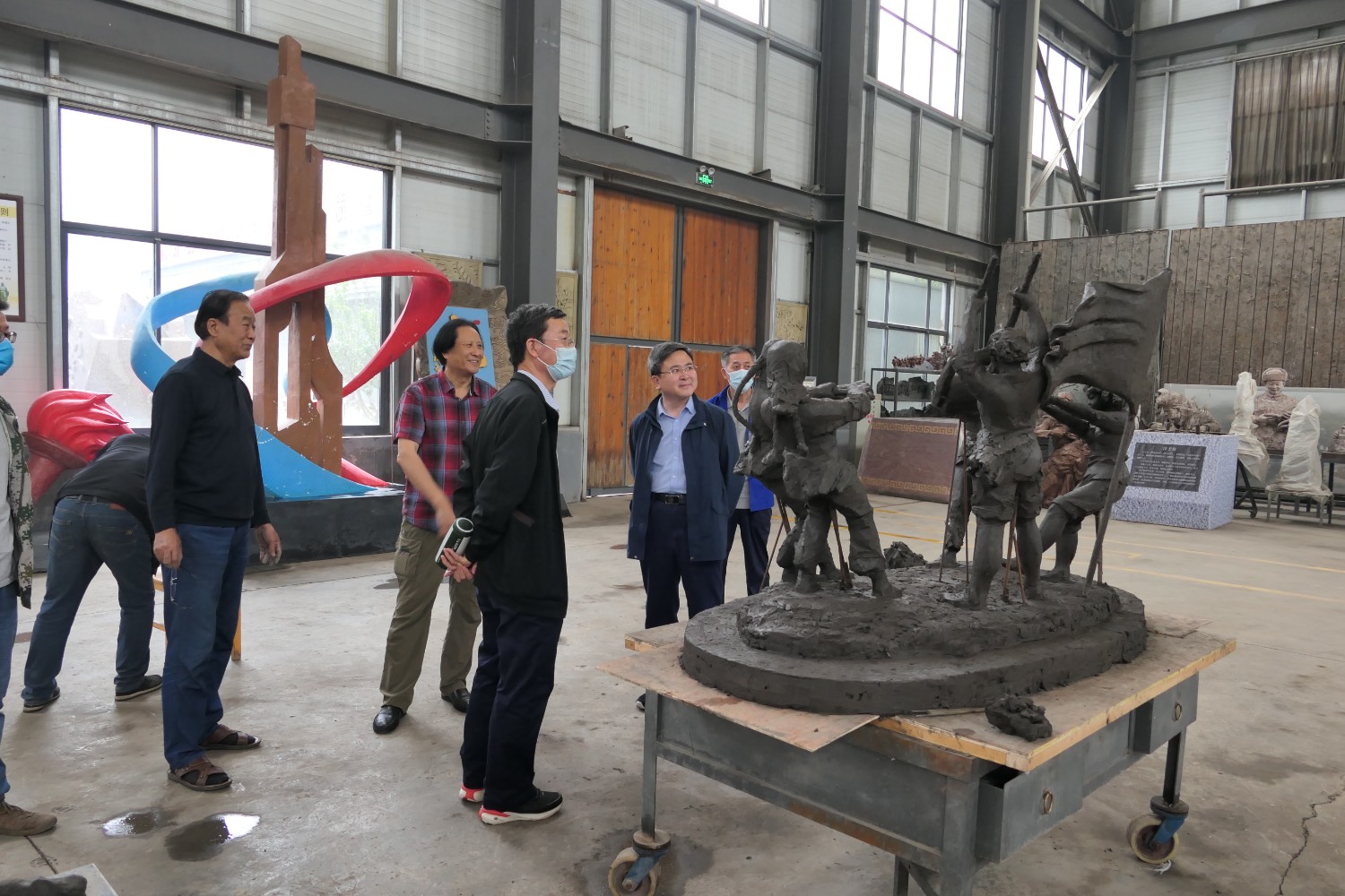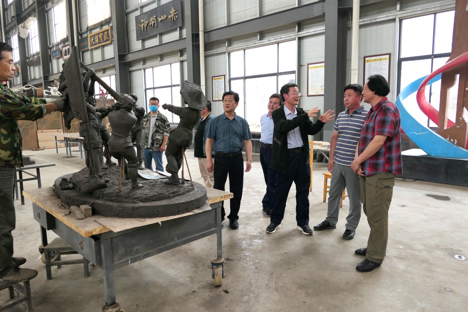 2023年5月30日,山東?;瘓F黨群書記張良波,?;瘓笊缈偩庉嬙枏W臨華藝審驗泥塑作品。諸城市東升房地產(chǎn)開發(fā)有限公司董事長姜衛(wèi)剛及北京朋友魏玉國等領導,蒞臨華藝雕塑洽談合作業(yè)務。傅紹相陪同參觀并介紹雕塑藝術(shù)。