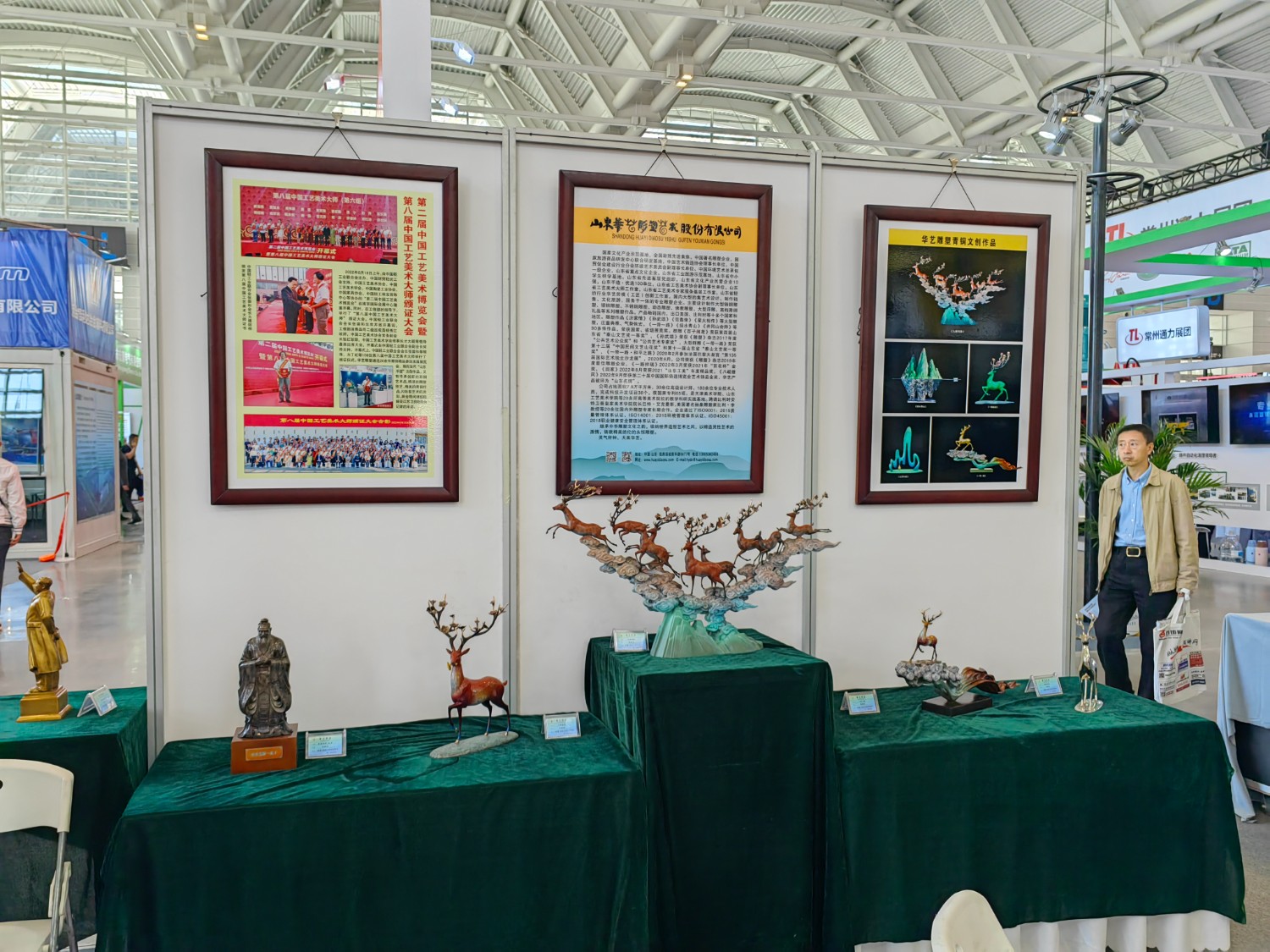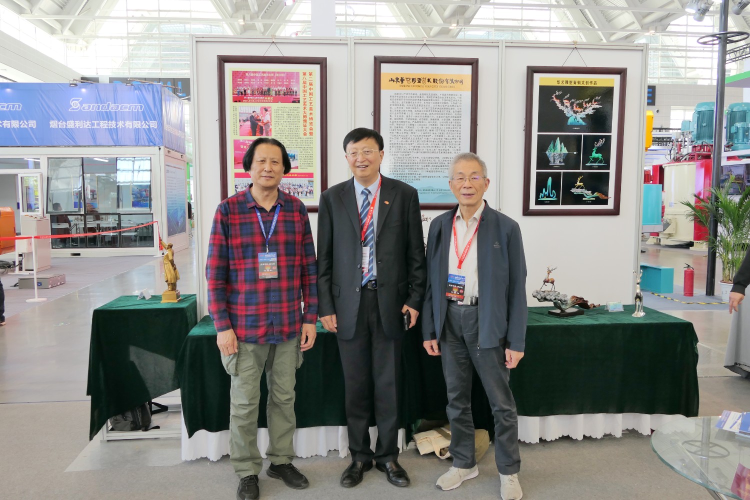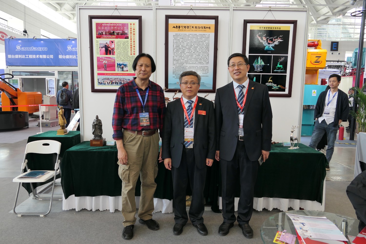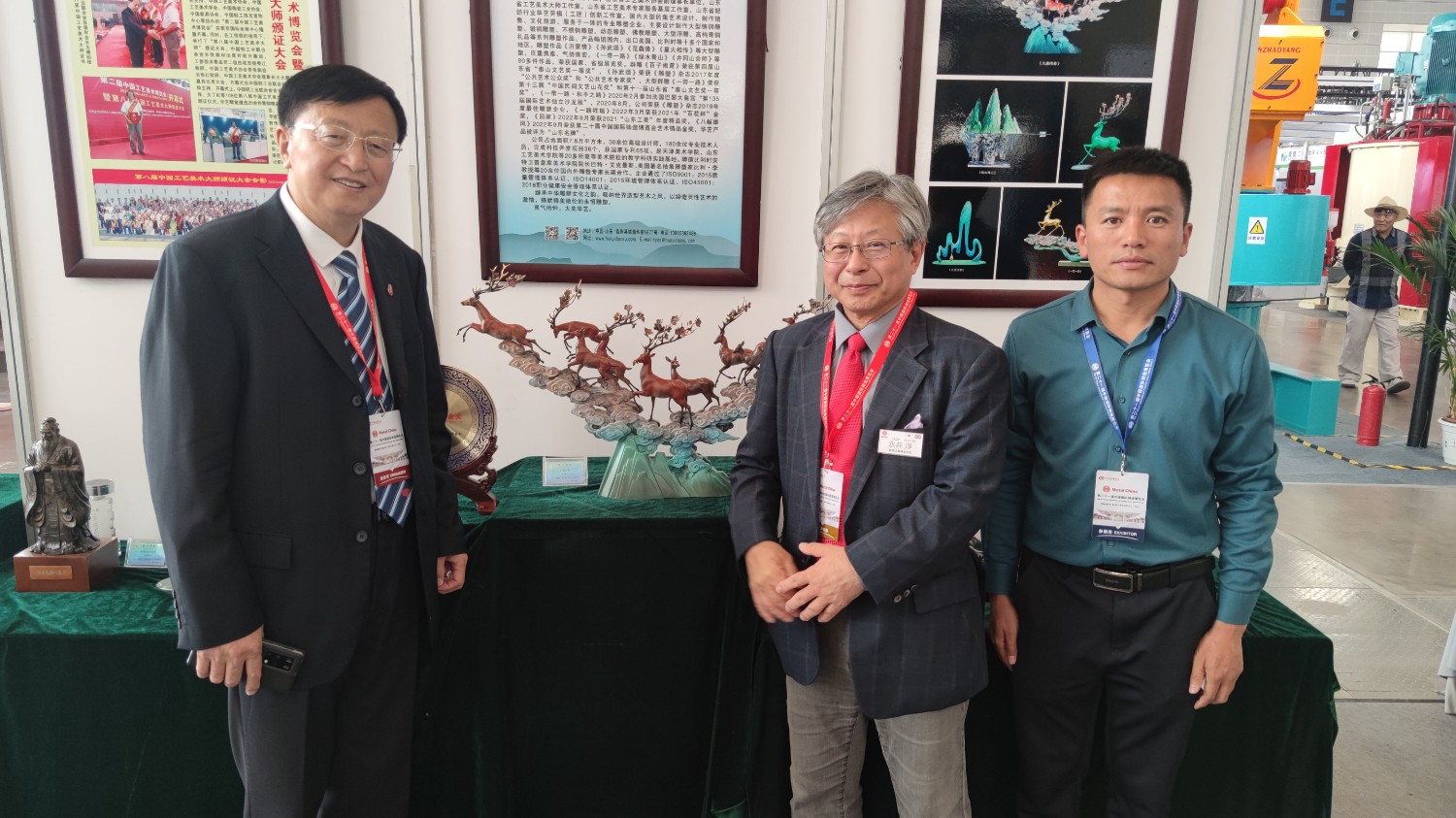 華藝雕塑遴選十二件青銅雕塑作品在博覽會(huì)“鑄造文化展區(qū)”參加展覽,精湛的雕塑藝術(shù),精美的青銅作品,贏(yíng)得了領(lǐng)導(dǎo)和嘉賓的高度贊揚(yáng)。中國(guó)工藝美術(shù)大師傅紹相作品《九鹿鳴春》榮獲第二十一屆中國(guó)國(guó)際鑄造博覽會(huì)“藝術(shù)鑄品”金獎(jiǎng)。展會(huì)期間,傅紹相去天津美術(shù)學(xué)院拜訪(fǎng)雕塑系副主任趙展教授并進(jìn)行雕塑藝術(shù)交流,并前往益德成(天津)聞藥文化發(fā)展有限公司拜訪(fǎng)馬衛(wèi)東董事長(zhǎng)、張松貞總經(jīng)理,并進(jìn)行友好的藝術(shù)交流。