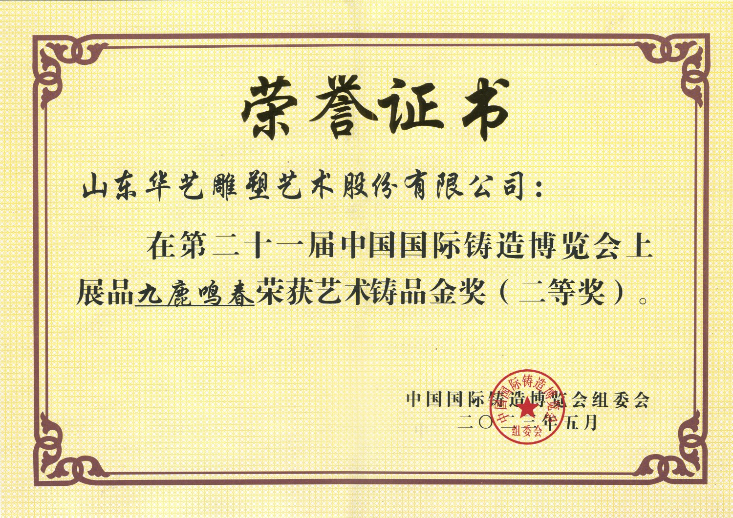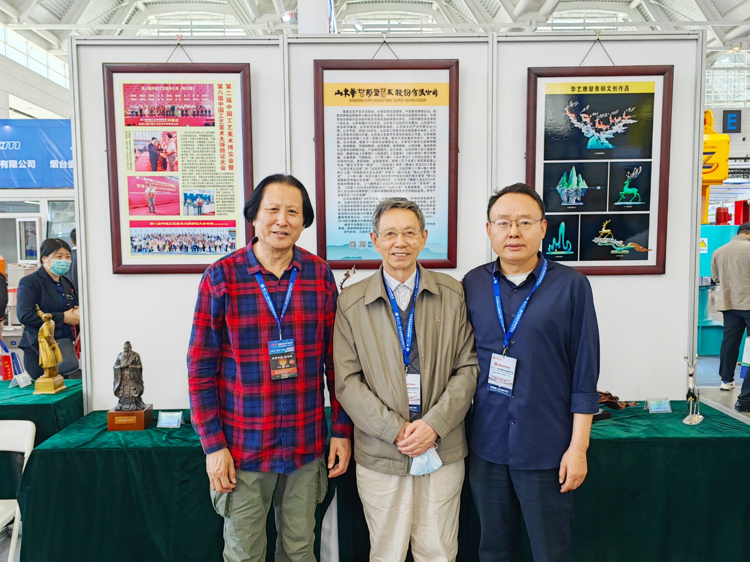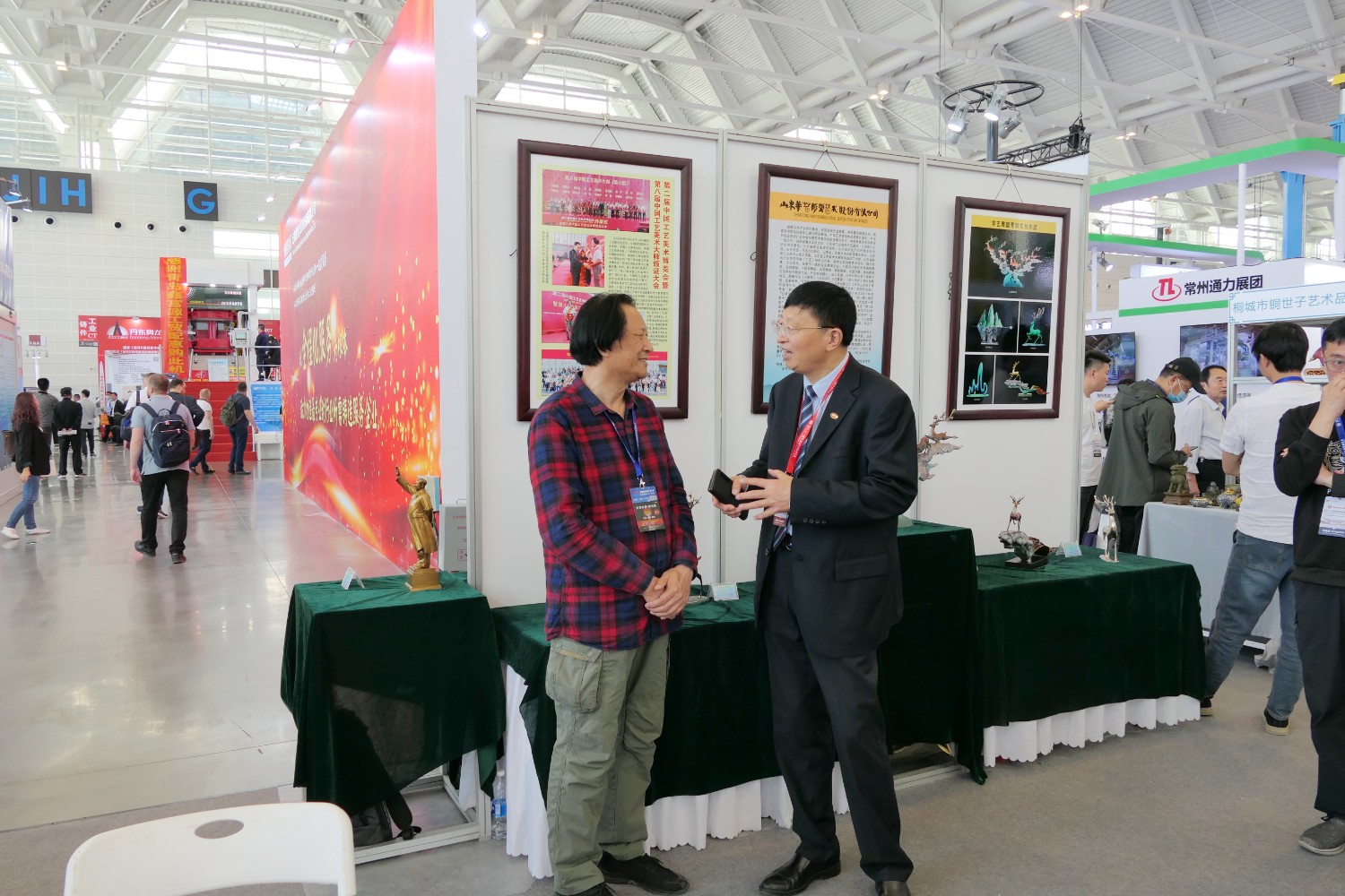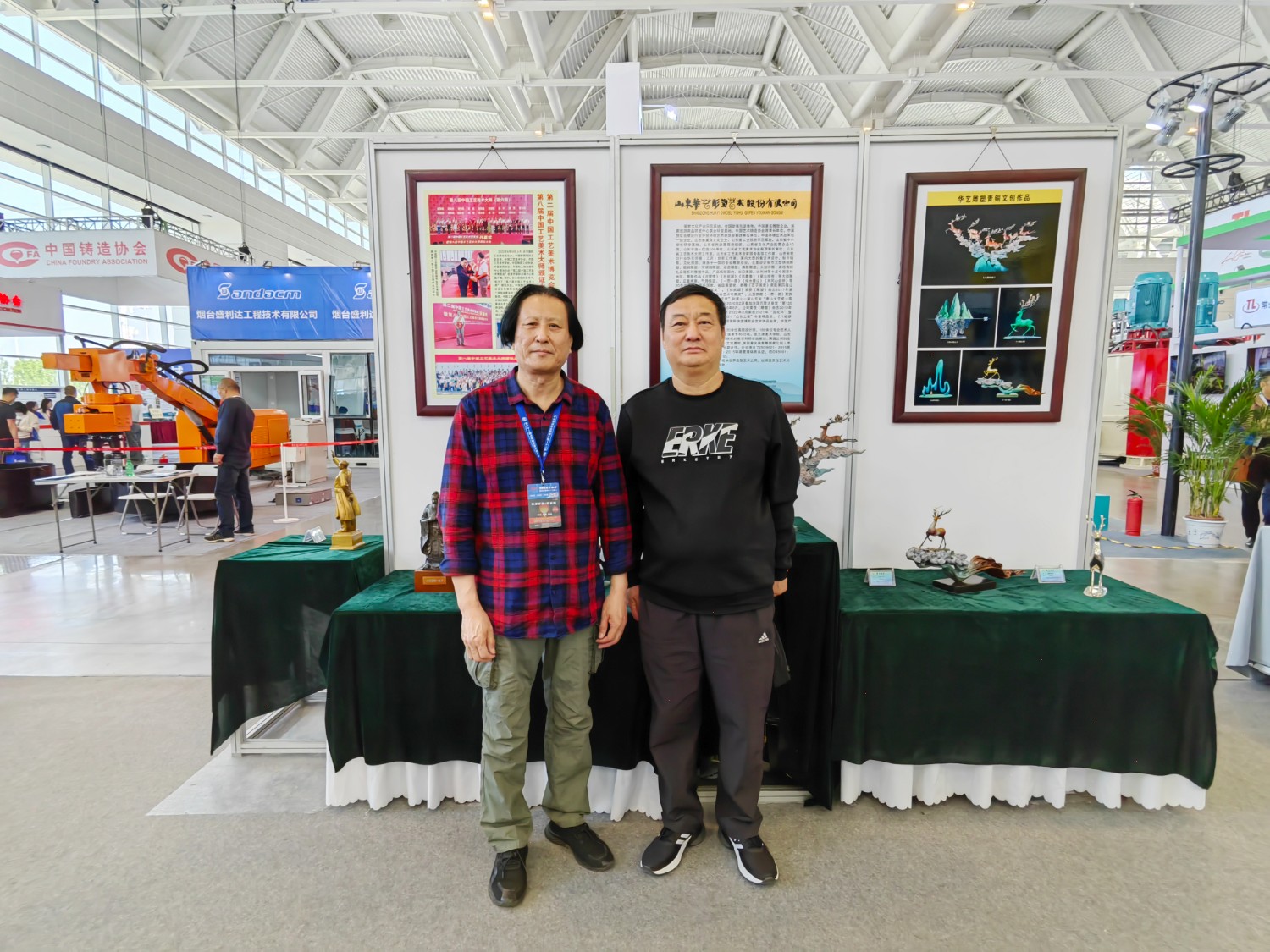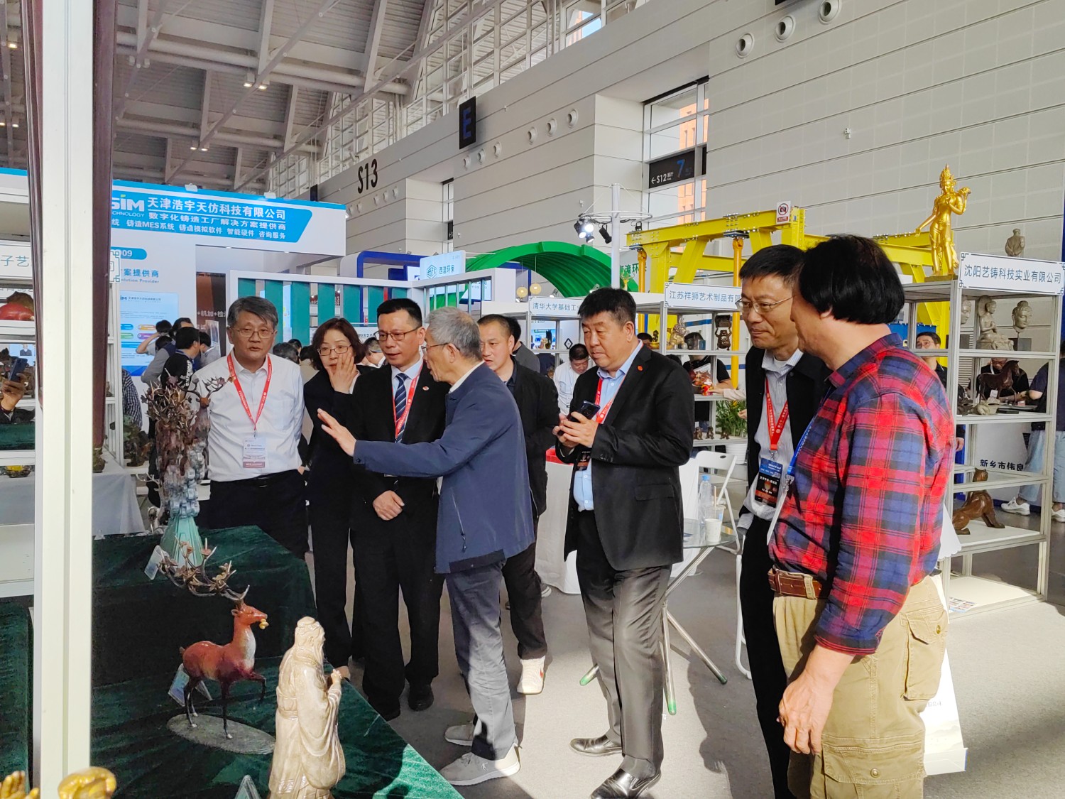 華藝雕塑遴選十二件青銅雕塑作品在博覽會(huì)“鑄造文化展區(qū)”參加展覽,精湛的雕塑藝術(shù),精美的青銅作品,贏(yíng)得了領(lǐng)導(dǎo)和嘉賓的高度贊揚(yáng)。中國(guó)工藝美術(shù)大師傅紹相作品《九鹿鳴春》榮獲第二十一屆中國(guó)國(guó)際鑄造博覽會(huì)“藝術(shù)鑄品”金獎(jiǎng)。展會(huì)期間,傅紹相去天津美術(shù)學(xué)院拜訪(fǎng)雕塑系副主任趙展教授并進(jìn)行雕塑藝術(shù)交流,并前往益德成(天津)聞藥文化發(fā)展有限公司拜訪(fǎng)馬衛(wèi)東董事長(zhǎng)、張松貞總經(jīng)理,并進(jìn)行友好的藝術(shù)交流。