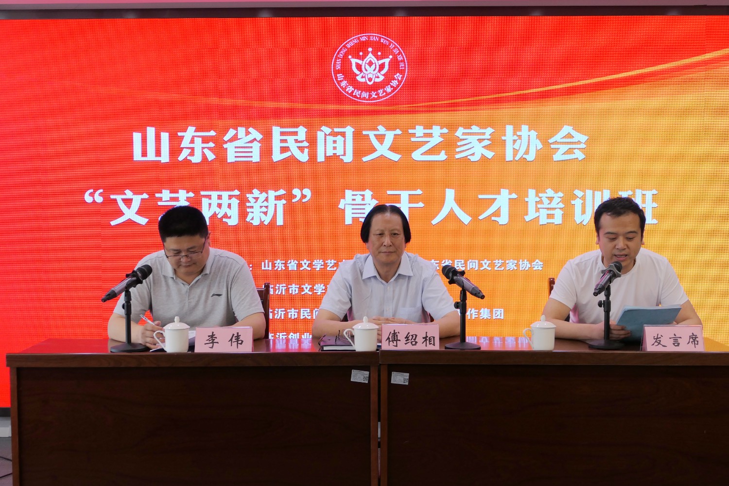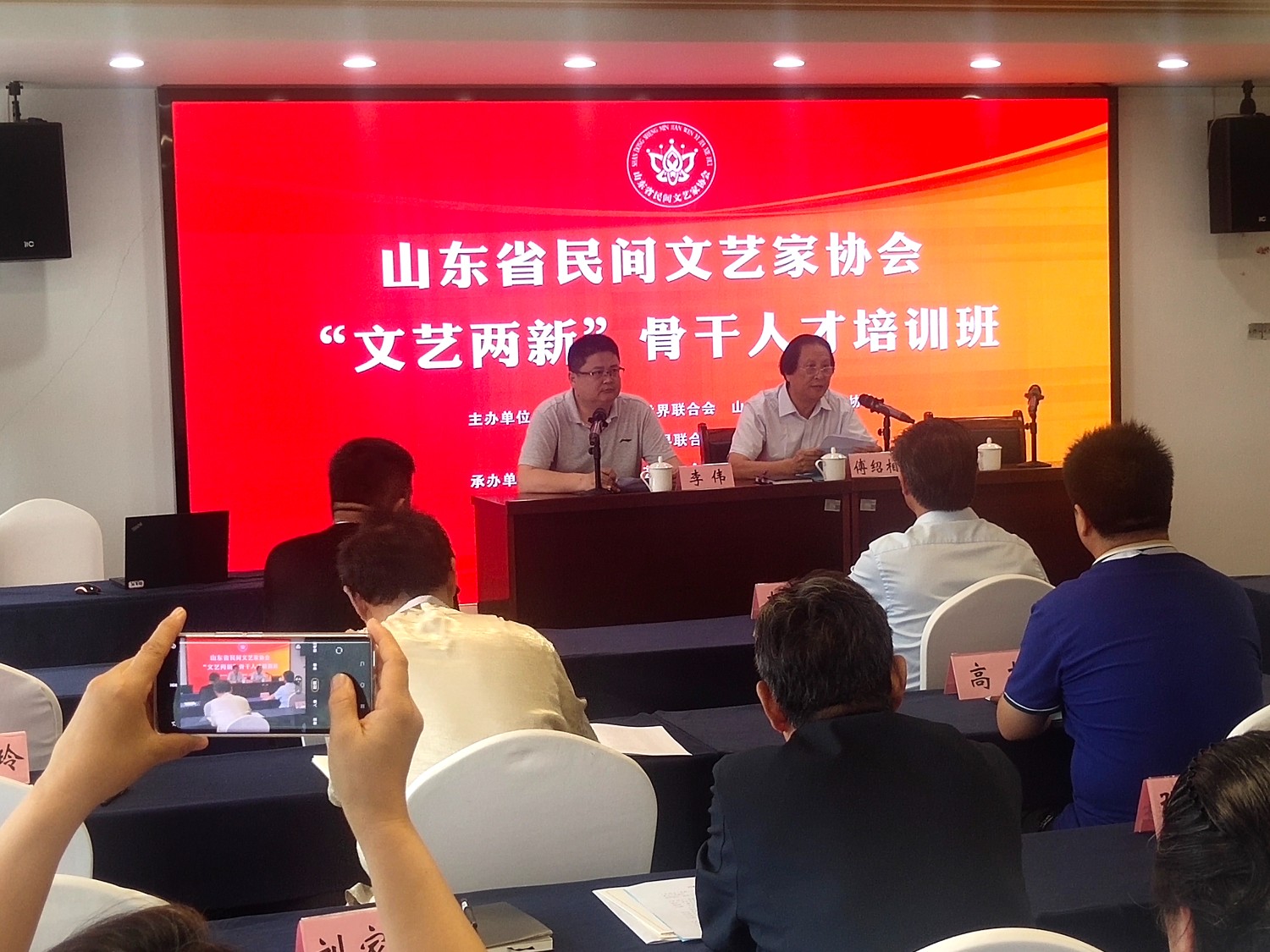 5月23日至26日,山東省民間文藝家協(xié)會(huì)“文藝兩新”骨干人才培訓(xùn)班在臨沂市順利舉辦。山東省民協(xié)副主席、日照市民協(xié)主席邢葆東,山東省民協(xié)副秘書(shū)長(zhǎng)、三級(jí)調(diào)研員高光華,山東省民協(xié)文藝兩新工作委員會(huì)主任傅紹相,臨沂市文聯(lián)黨組書(shū)記、主席戰(zhàn)祥春,臨沂市文聯(lián)辦公室主任、臨沂市民協(xié)主席徐志強(qiáng)出席開(kāi)班式。來(lái)自全省各市民協(xié)推薦的“文藝兩新”骨干代表、省民協(xié)“文藝兩新”工作委員會(huì)成員及當(dāng)?shù)亍拔乃噧尚隆眲?chuàng)作骨干代表等50余人參加培訓(xùn)。培訓(xùn)班邀請(qǐng)到臨沂市委黨校副校長(zhǎng)楊建中教授,臨沂市委黨校文史教研部副主任劉柯薇副教授,省民協(xié)副主席、青島科技大學(xué)朱紀(jì)副教授,省民協(xié)主席團(tuán)委員、山東工藝美術(shù)學(xué)院人文藝術(shù)學(xué)院榮新副教授等四位教員,重點(diǎn)圍繞“黨的二十大精神學(xué)習(xí)”和“提升文藝精品創(chuàng)作”等主題,精選《黨的二十大精神專(zhuān)題》《沂蒙精神專(zhuān)題》《非遺保護(hù)與文創(chuàng)設(shè)計(jì)》《民間文藝主題創(chuàng)作創(chuàng)新發(fā)展的思考》等課程為學(xué)員進(jìn)行現(xiàn)場(chǎng)專(zhuān)題授課,各領(lǐng)域、各地區(qū)“文藝兩新”人才齊聚一堂,互動(dòng)交流。