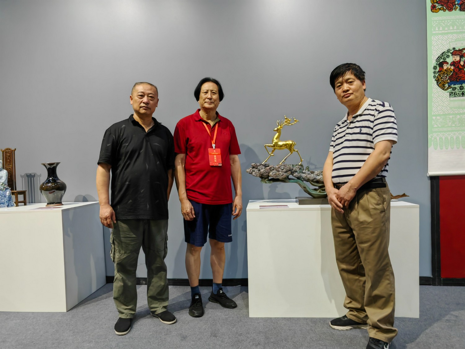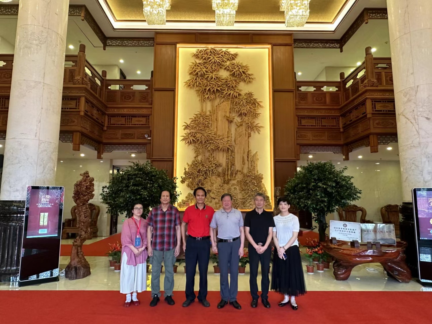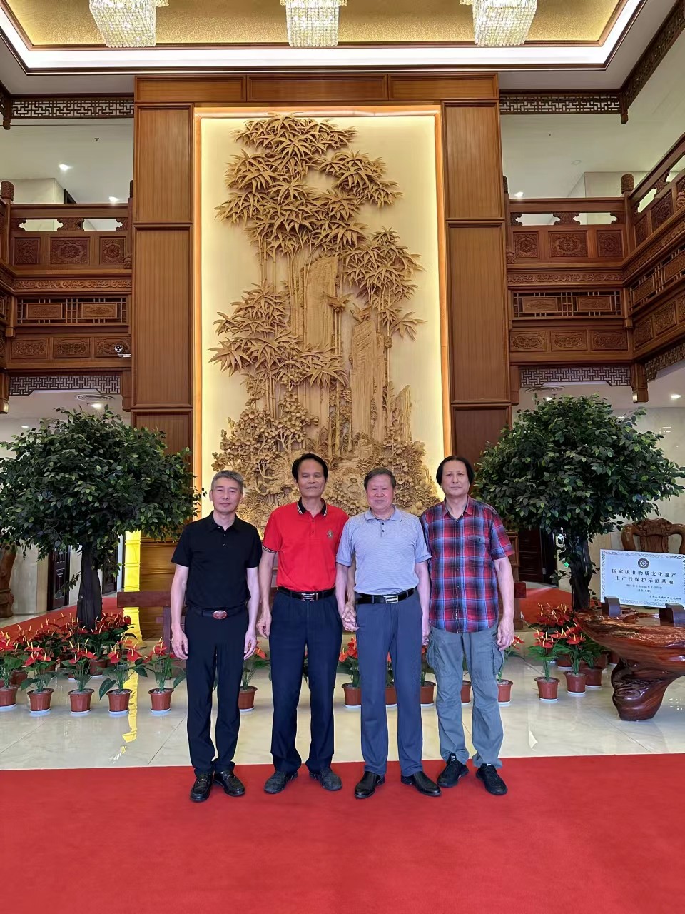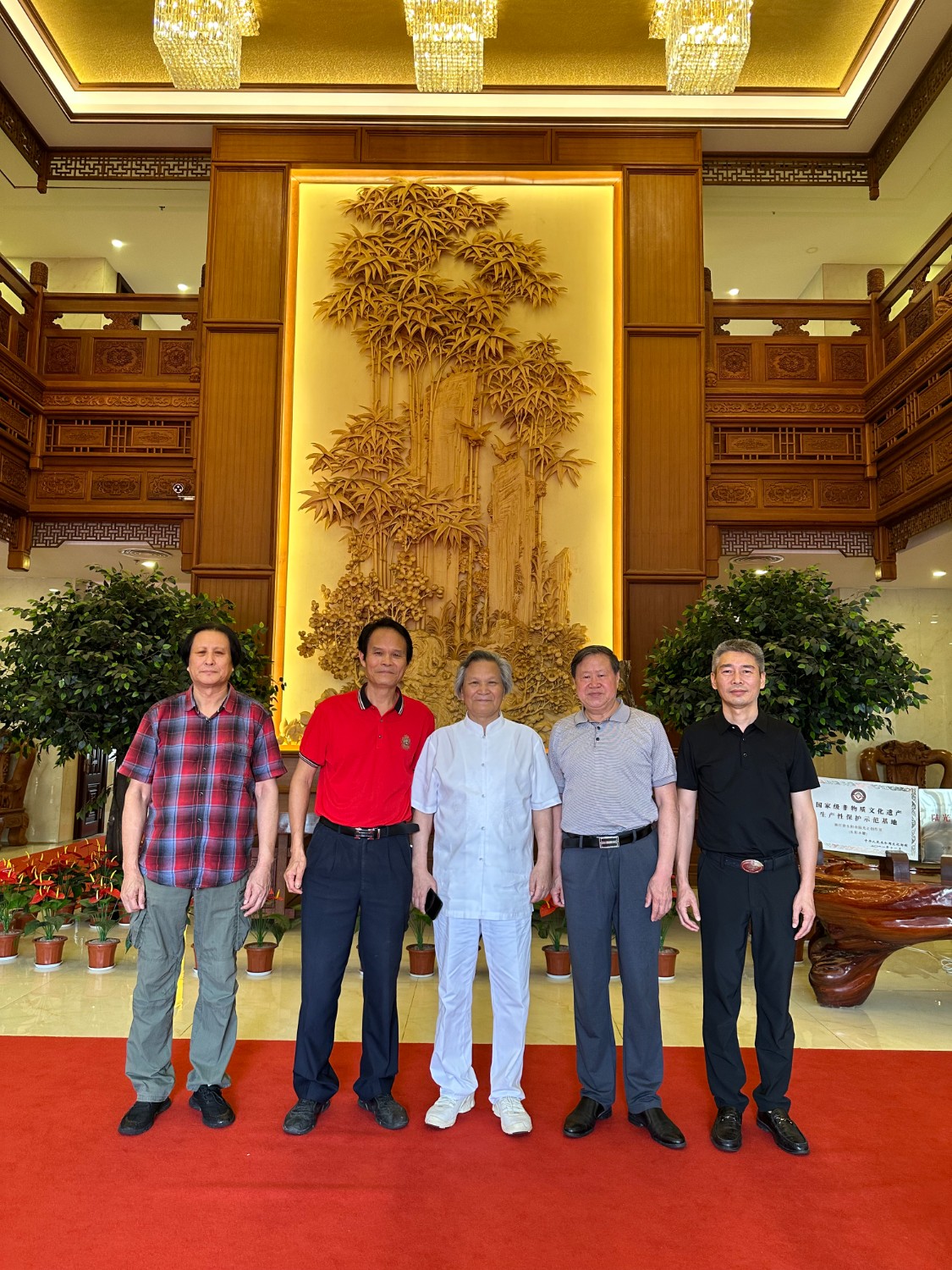中國工藝美術大師傅紹相應邀出席本次大會,榮獲2021年“百花杯”評審活動金獎的《一路祥瑞》作品參加“百花杯”獲獎作品展?;顒悠陂g,傅紹相出席本次博覽會開幕式,并接受東陽電視臺記者新聞采訪,參加“匠心筑夢,匠藝強國”中國(東陽)工藝美術行業(yè)峰會,參觀了東陽盧宅古建筑群,繼而到中國工藝美術大師陸光正木雕博物館參觀并合影留念。