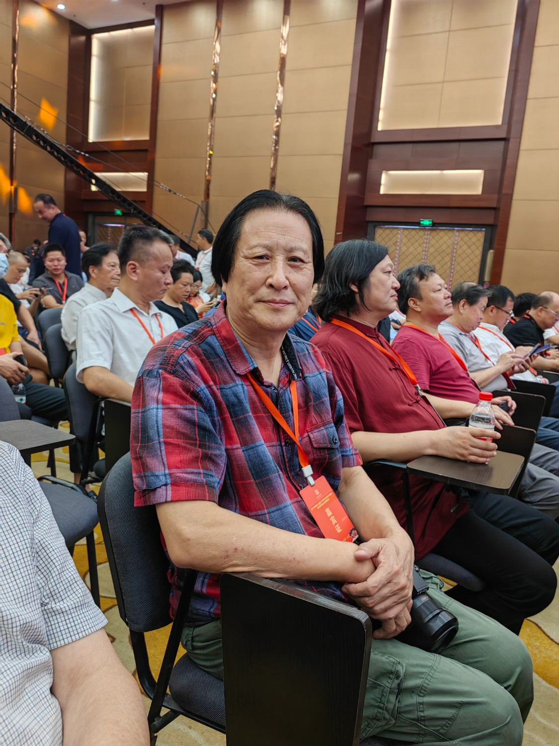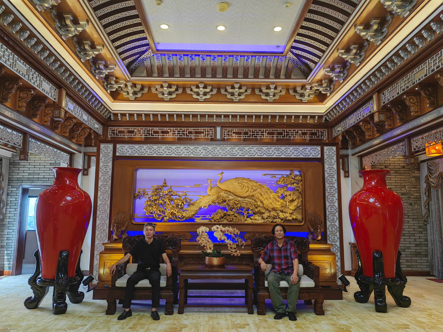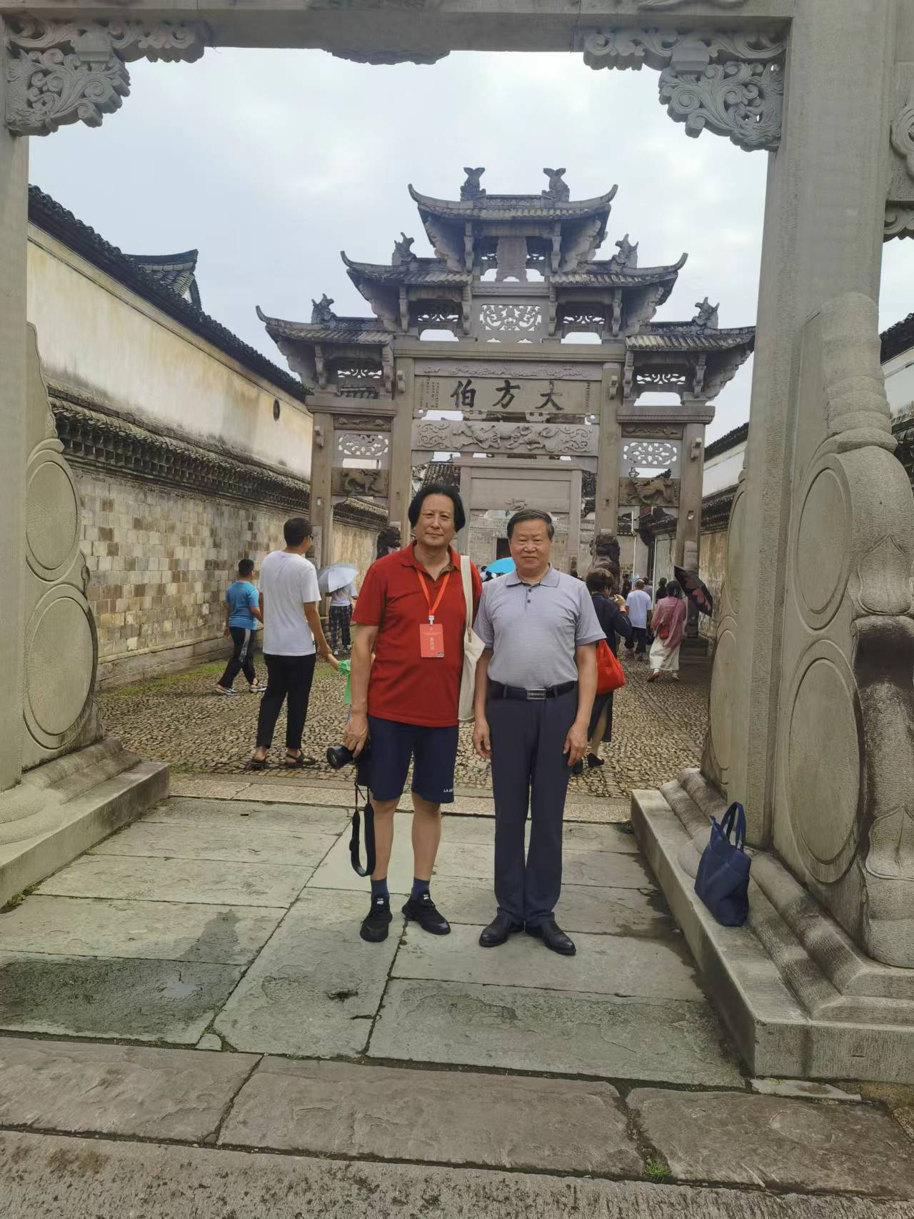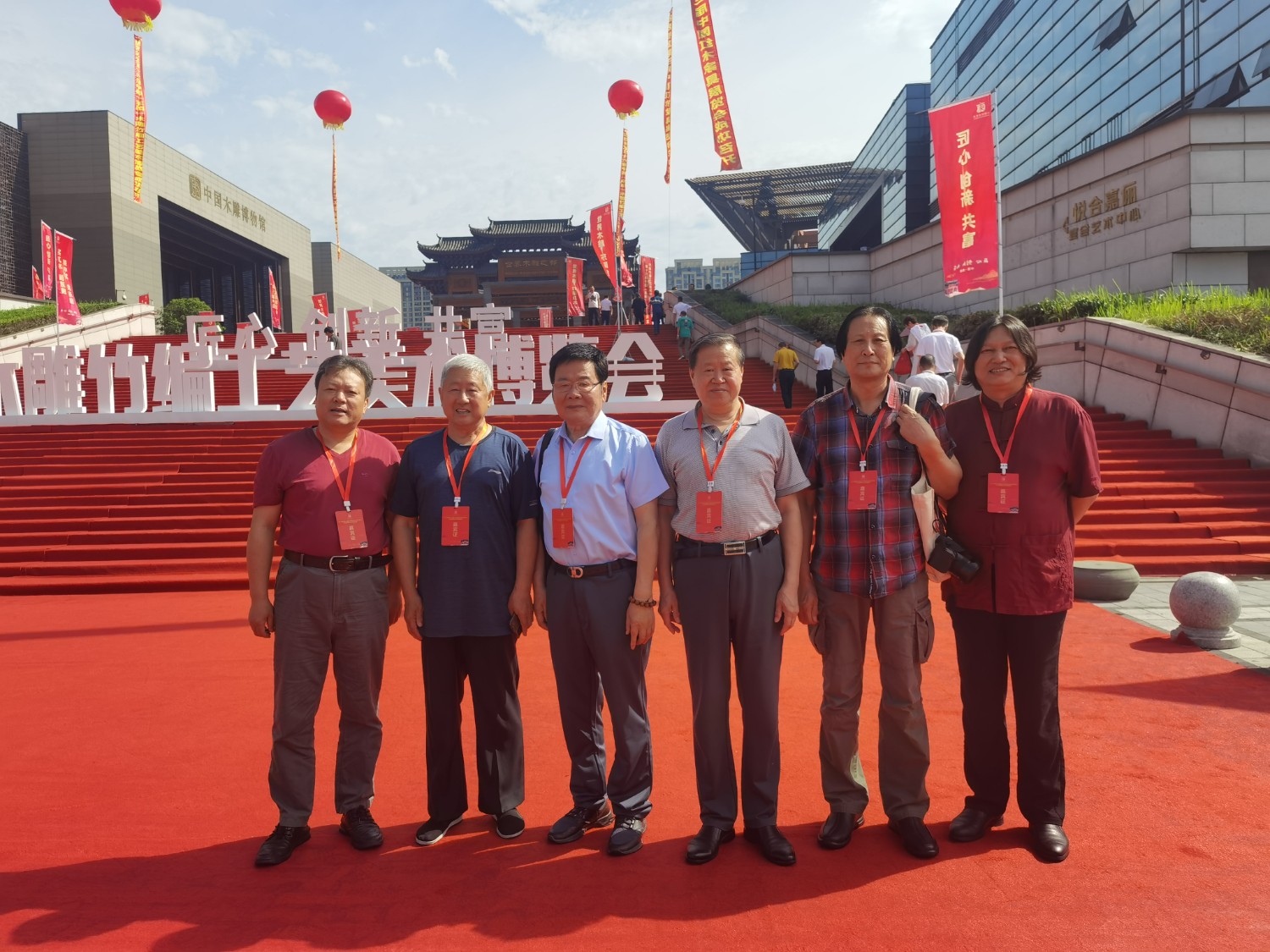 中國工藝美術大師傅紹相應邀出席本次大會,榮獲2021年“百花杯”評審活動金獎的《一路祥瑞》作品參加“百花杯”獲獎作品展?;顒悠陂g,傅紹相出席本次博覽會開幕式,并接受東陽電視臺記者新聞采訪,參加“匠心筑夢,匠藝強國”中國(東陽)工藝美術行業(yè)峰會,參觀了東陽盧宅古建筑群,繼而到中國工藝美術大師陸光正木雕博物館參觀并合影留念。