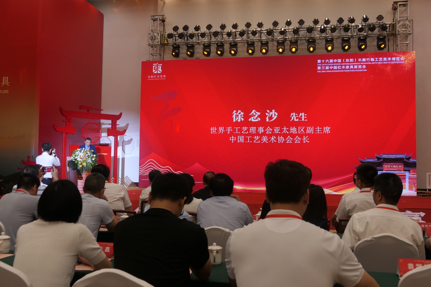 世界手工藝理事會副主席凱文穆雷,世界手工藝理事會亞太地區(qū)顧問羅建金,國務院參事室特約研究員、中國勞動學會會長、人社部原黨組副書記、常務副部長楊志明,中國林業(yè)產業(yè)聯合會常務副會長、原國家林業(yè)局總工程師封加平,中國輕工業(yè)聯合會黨委副書記、中華全國手工業(yè)合作總社副主任、世界家具聯合會主席、亞洲家具聯合會會長、中國家具協(xié)會理事長徐祥楠,世界手工藝理事會亞太地區(qū)副主席、中國工藝美術協(xié)會會長徐念沙,金華市副市長李斌峰,東陽市委書記樓瑯堅等出席。市委副書記、市長黃勝可主持。