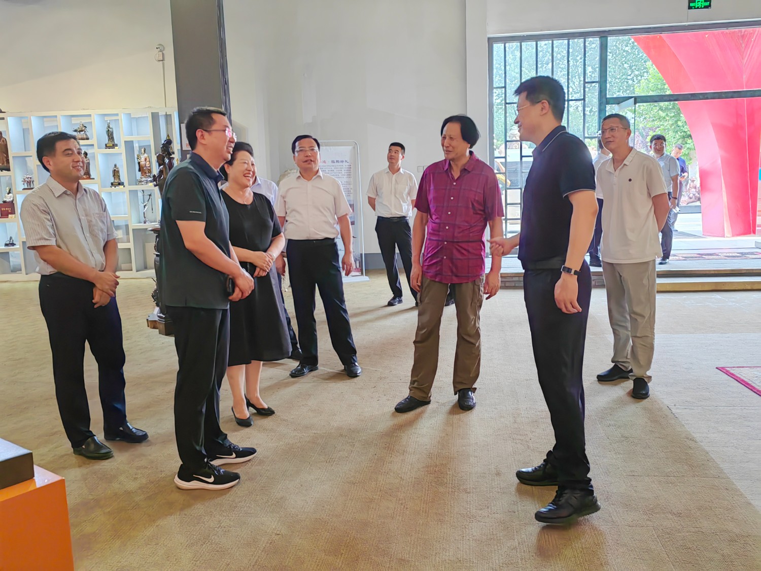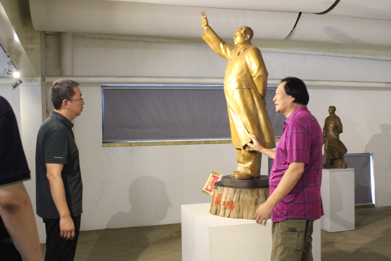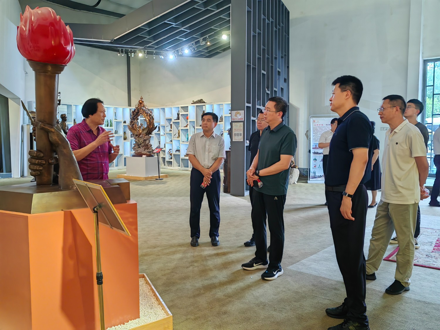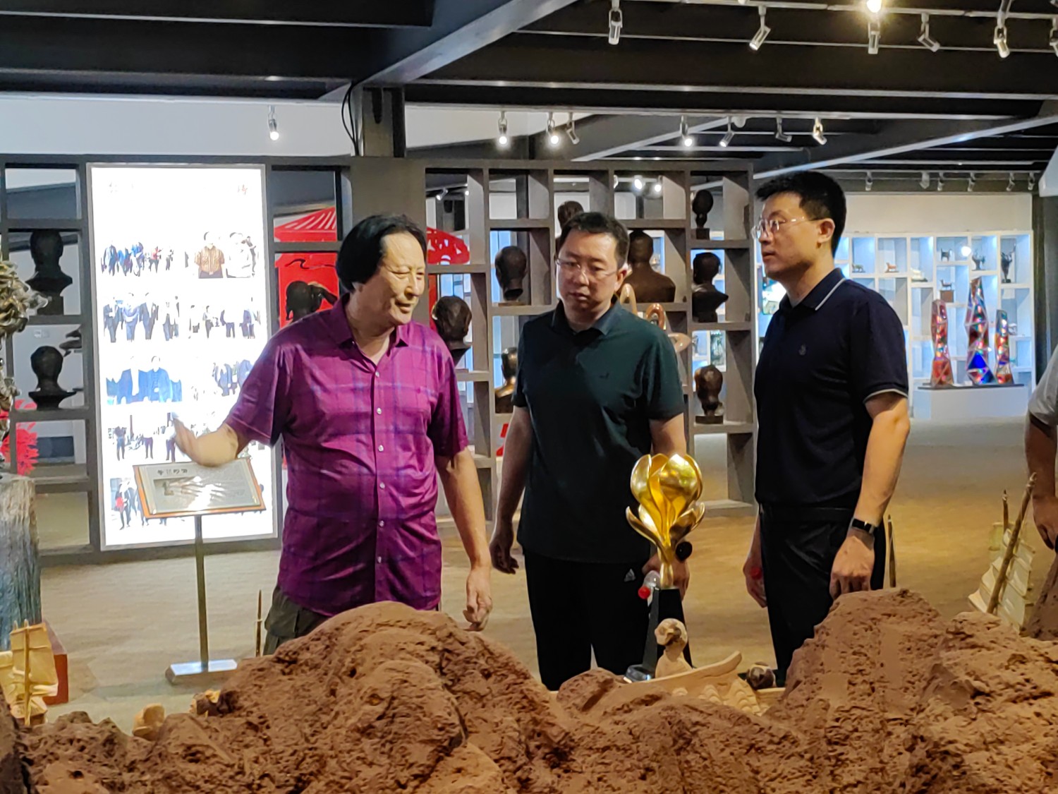 2023年7月19日,山東省財(cái)政廳政府債務(wù)管理處副處長(zhǎng)李金法,省交通廳交通運(yùn)輸事務(wù)服務(wù)發(fā)展研究處副處長(zhǎng)李國東等領(lǐng)導(dǎo),在臨朐縣委副書記、縣長(zhǎng)陳誠陪同下蒞臨華藝雕塑參觀指導(dǎo)。中國工藝美術(shù)大師傅紹相介紹雕塑藝術(shù)。