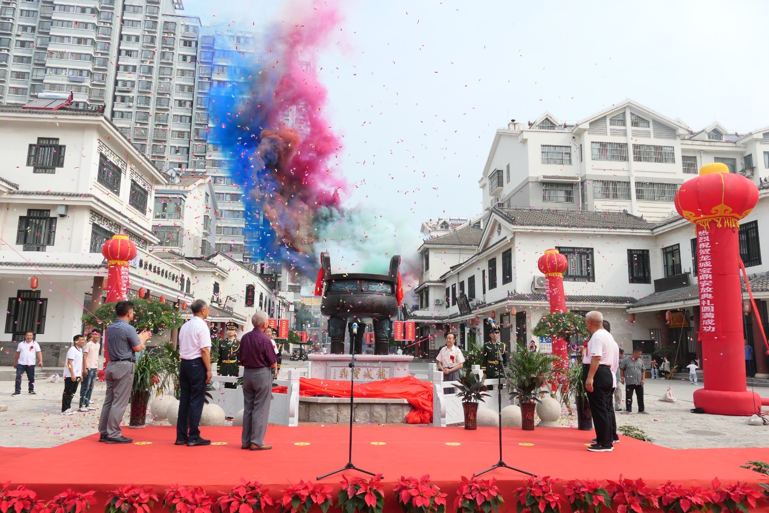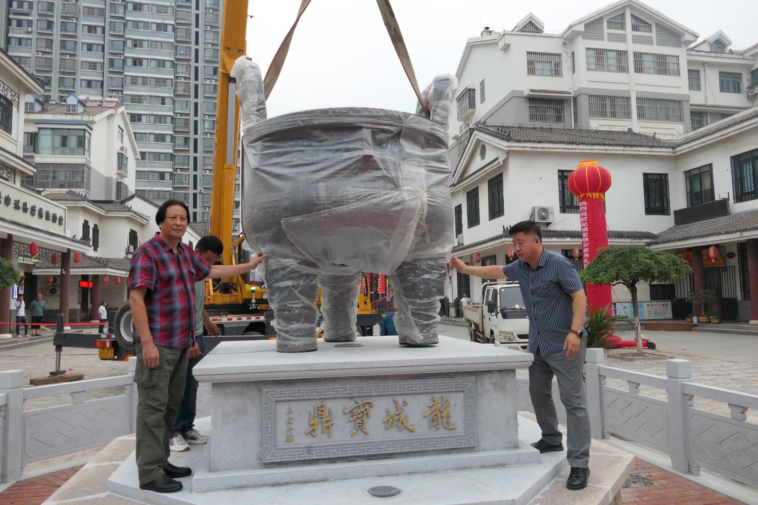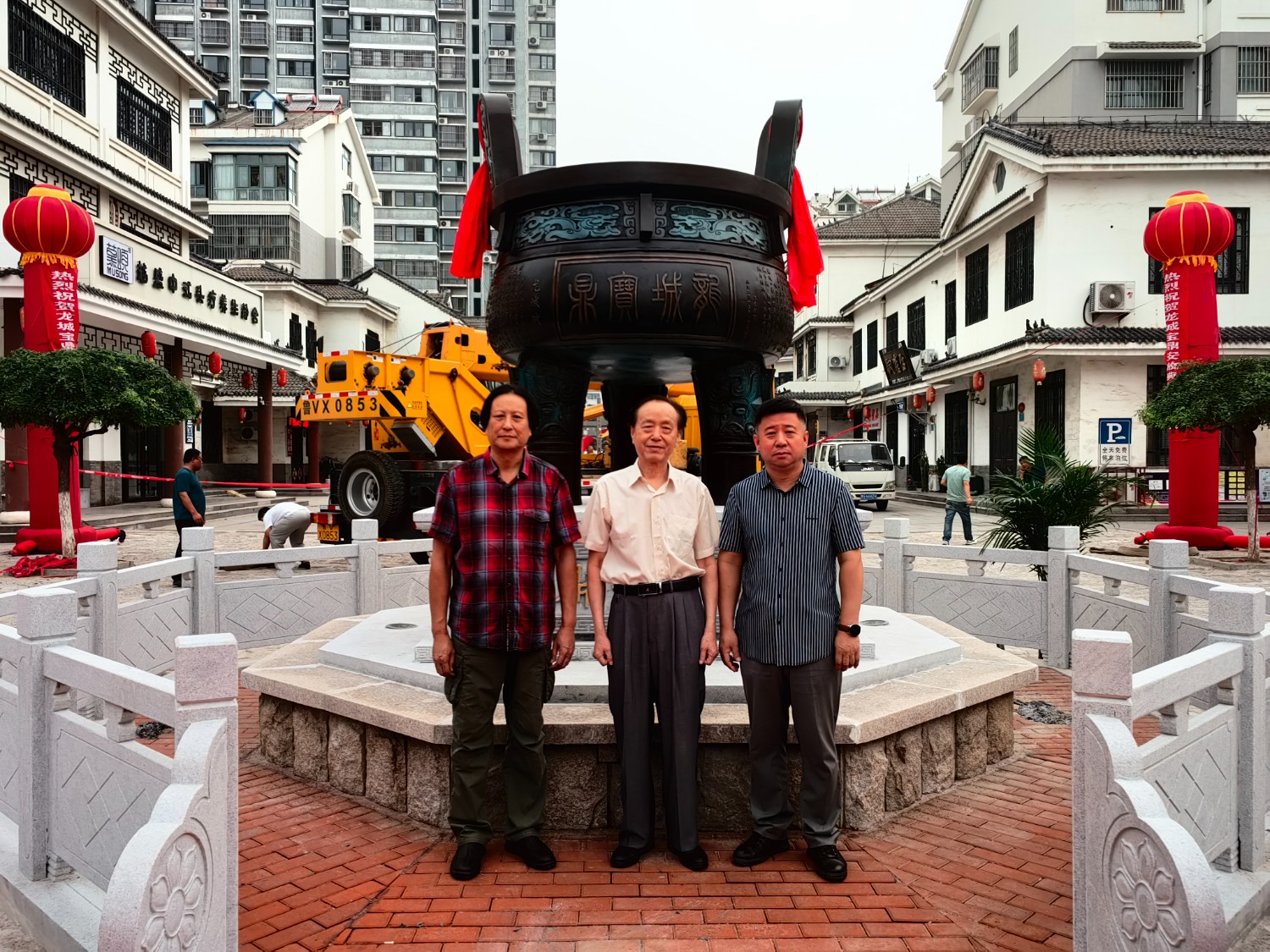 2023年8月26日 ,“龍城寶鼎”安放典禮在諸城市龍都街道岔道口張擇端文化街區(qū)茶道古街中心廣場隆重舉行,出席揭幕慶典儀式的有諸城市老領(lǐng)導、龍都街道辦事處領(lǐng)導、中國辭賦院院長王金鈴先生,龍都街道岔道口社區(qū)黨委書記、諸城市東升房地產(chǎn)開發(fā)有限責任公司董事長姜衛(wèi)剛先生、中國工美藝術(shù)大師、山東華藝雕塑藝術(shù)股份有限公司藝術(shù)總監(jiān)、董事長傅紹相先生。“龍城寶鼎”由傅紹相先生設(shè)計,鼎腹鐫刻王金鈴先生《龍城賦》,寶鼎由華藝雕塑精心鑄制。