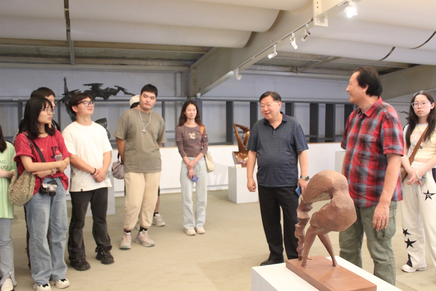 2023年9月13日,山東藝術(shù)學(xué)院教授、碩士研究生導(dǎo)師、工藝美術(shù)學(xué)主任鄭軍先生帶領(lǐng)13位學(xué)生,蒞臨華藝雕塑參觀學(xué)習(xí),中國工美藝術(shù)大師、華藝雕塑董事長傅紹相先生介紹雕塑藝術(shù),并與鄭軍教授和同學(xué)們合影留念。