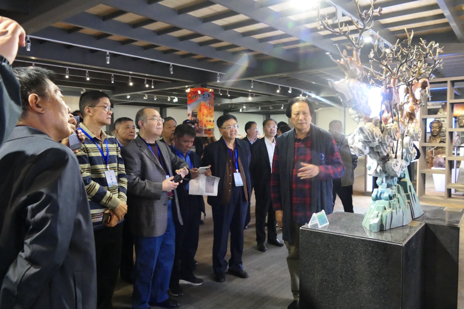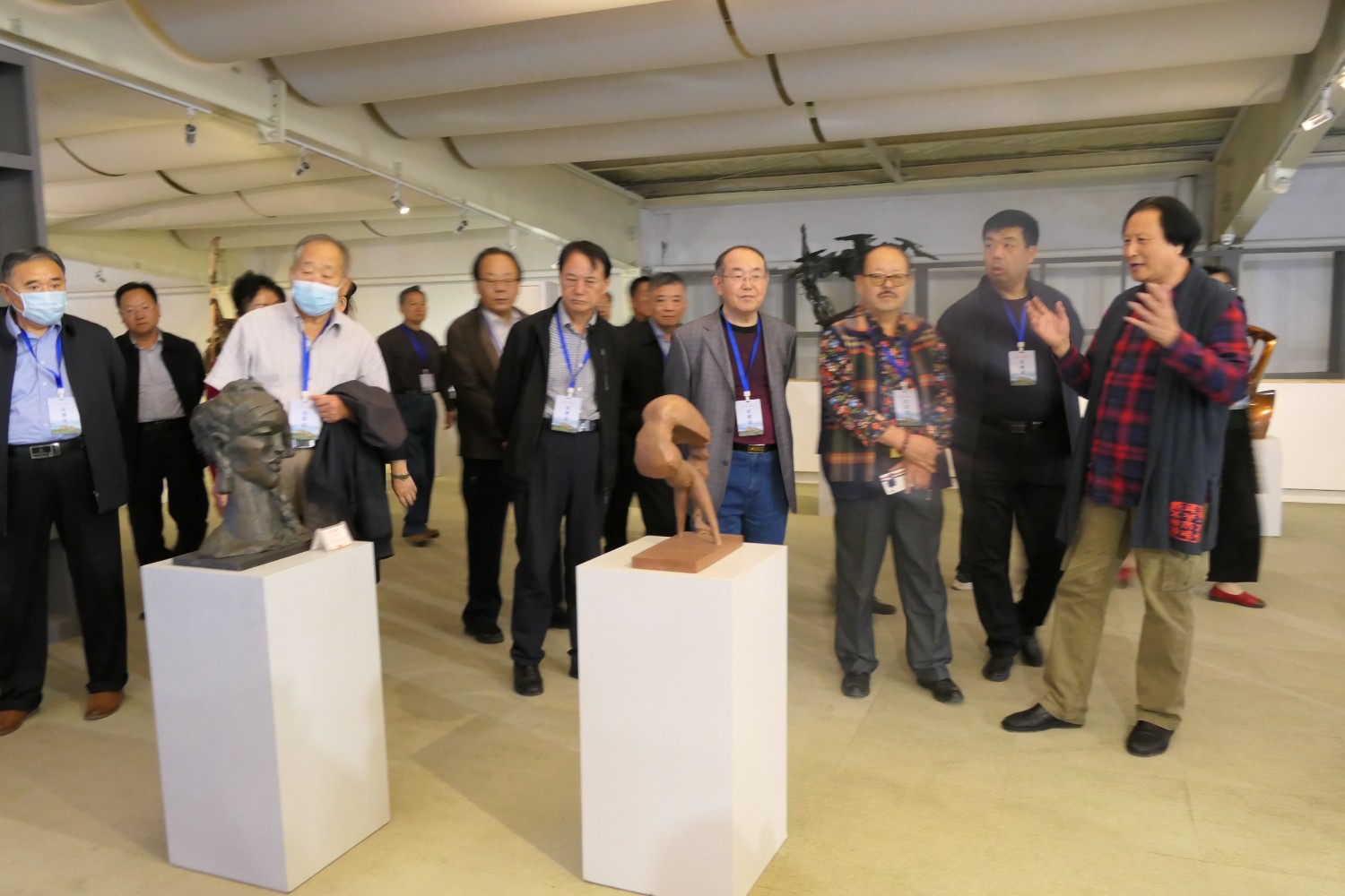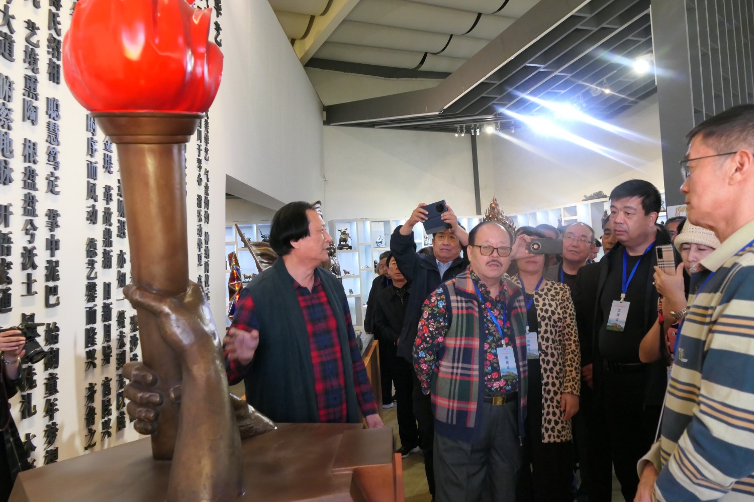 2023年11月3日,“‘永遠(yuǎn)跟黨走、奮進(jìn)新征程’山東省老年書(shū)畫(huà)精品展” 作者200余人, 在山東省老年書(shū)畫(huà)研究會(huì)會(huì)長(zhǎng)吳永福和臨朐縣老干部書(shū)畫(huà)研究會(huì)黨總支部書(shū)記鄧世華的帶領(lǐng)陪同下,蒞臨華藝雕塑參觀指導(dǎo),中國(guó)工美藝術(shù)大師傅紹相向嘉賓介紹雕塑藝術(shù)。