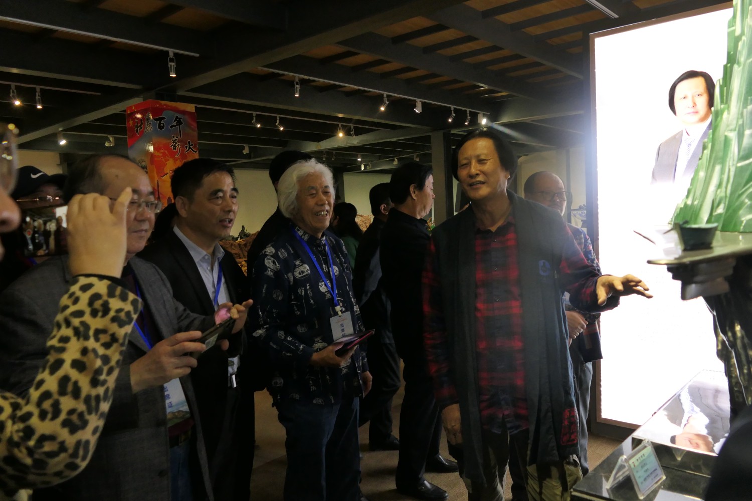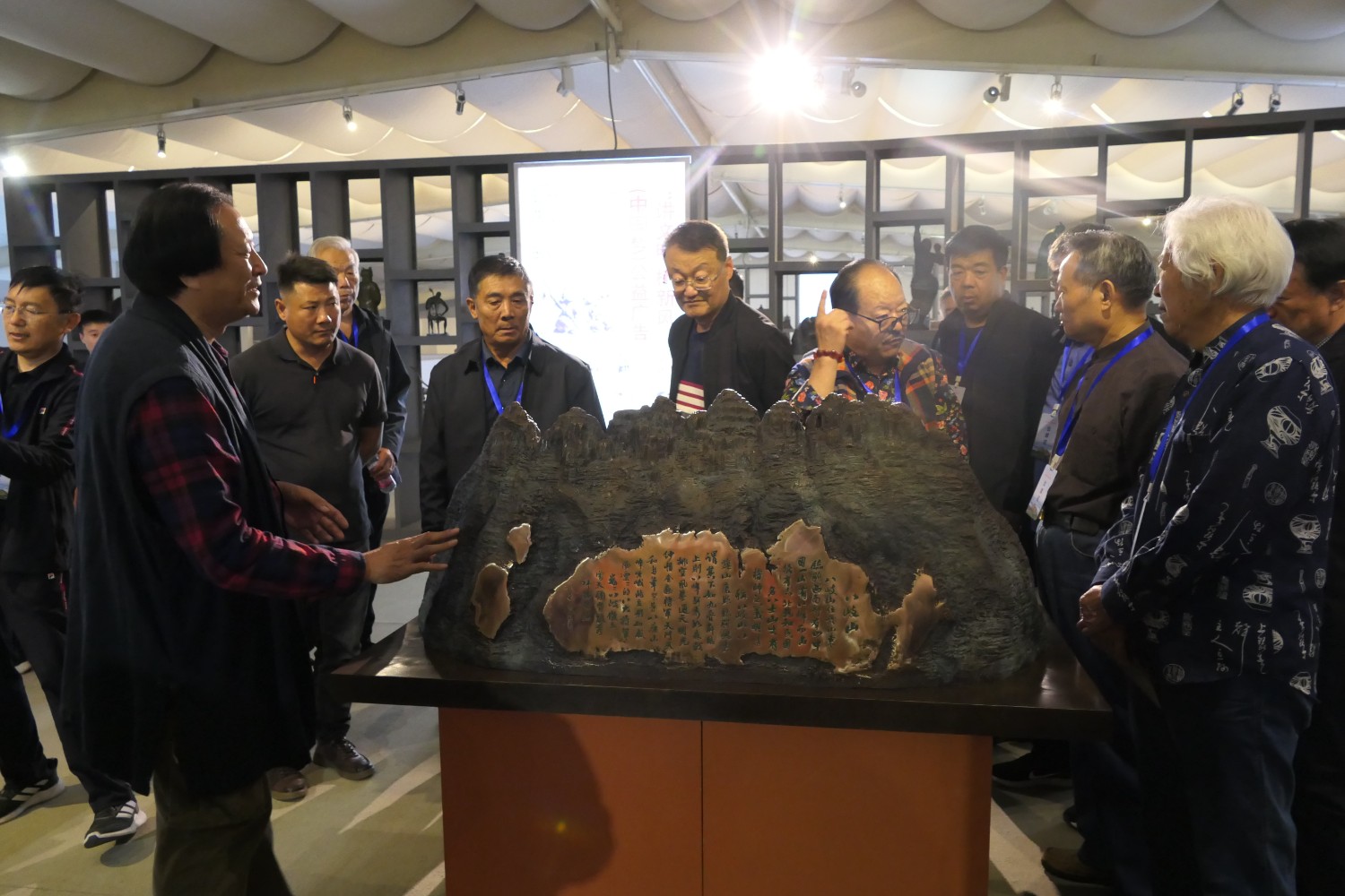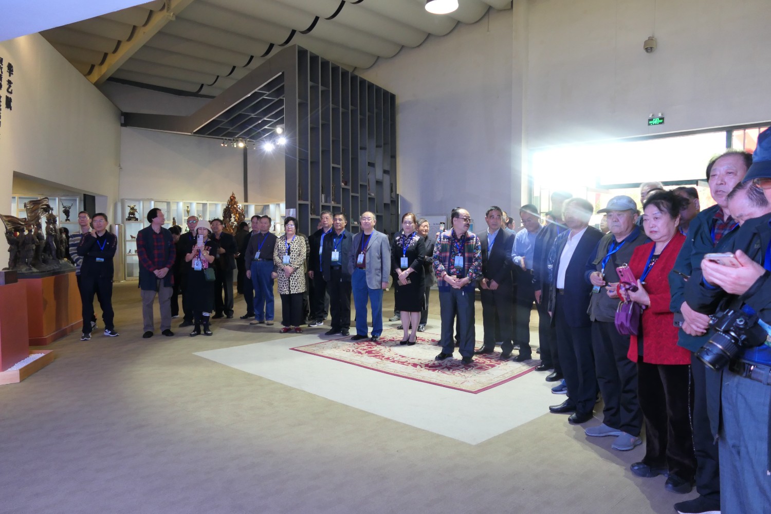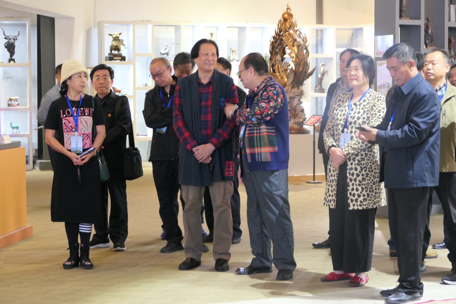 2023年11月3日,“‘永遠(yuǎn)跟黨走、奮進(jìn)新征程’山東省老年書(shū)畫(huà)精品展” 作者200余人, 在山東省老年書(shū)畫(huà)研究會(huì)會(huì)長(zhǎng)吳永福和臨朐縣老干部書(shū)畫(huà)研究會(huì)黨總支部書(shū)記鄧世華的帶領(lǐng)陪同下,蒞臨華藝雕塑參觀指導(dǎo),中國(guó)工美藝術(shù)大師傅紹相向嘉賓介紹雕塑藝術(shù)。