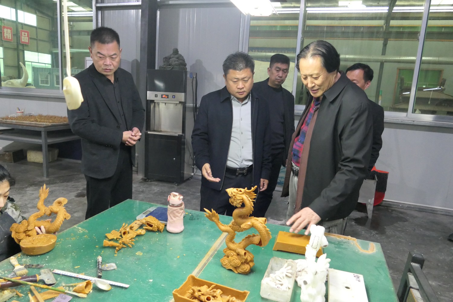2023年11月22日,山東江正食品有限公司李紅飛董事長,菏澤市匠工木雕文化有限公司董事長李彥鋒一行,蒞臨華藝雕塑參觀指導,國大師傅紹相介紹雕塑藝術并與嘉賓進行了友好的合作交流。