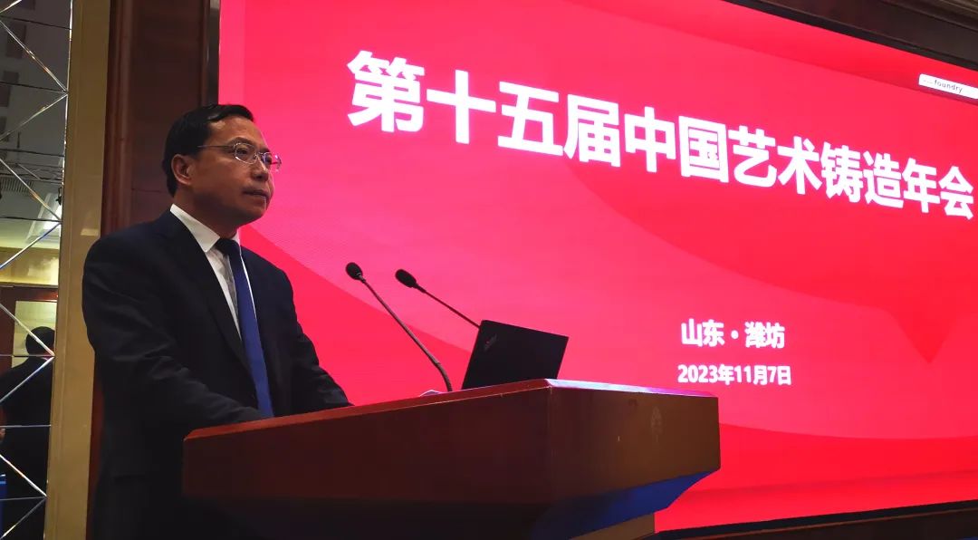 2024-1-172023年11月7日,第十五屆中國藝術(shù)鑄造年會在山東濰坊富華大酒店如期召開。會議由中國鑄造協(xié)會主辦,中國鑄造協(xié)會藝術(shù)鑄造分會、山東華藝雕塑藝術(shù)股份有限公司承辦,鄭州翔宇鑄造材料有限公司、無錫燁鈞機電設(shè)備有限公司、山東省數(shù)字化綠色鑄造技術(shù)與裝備創(chuàng)新平臺協(xié)辦。