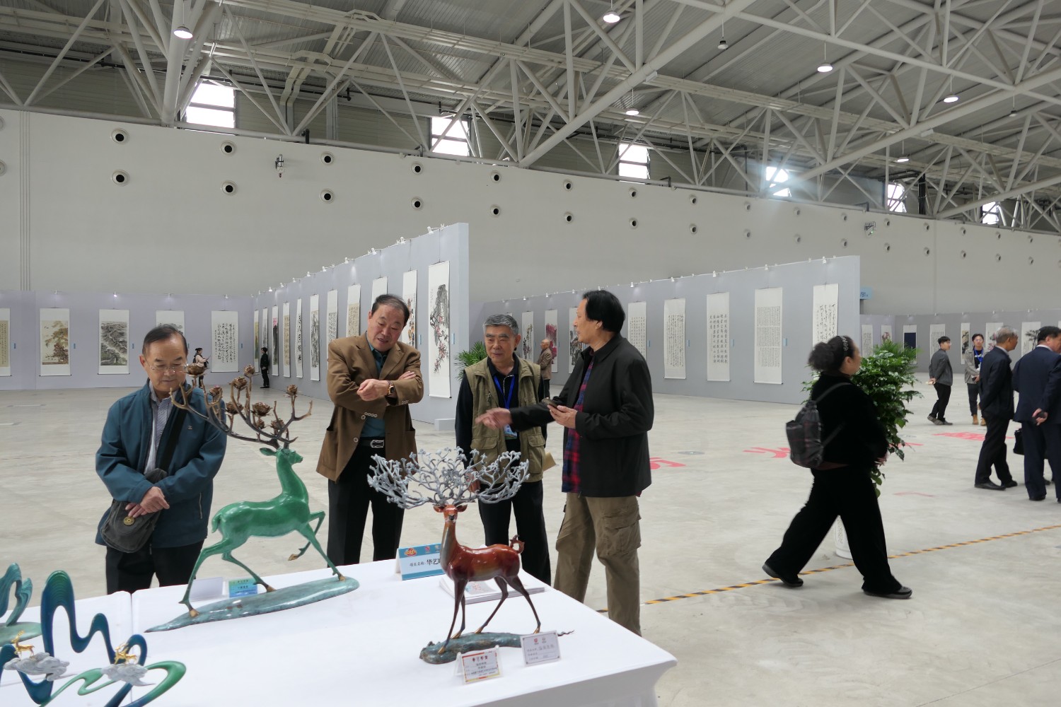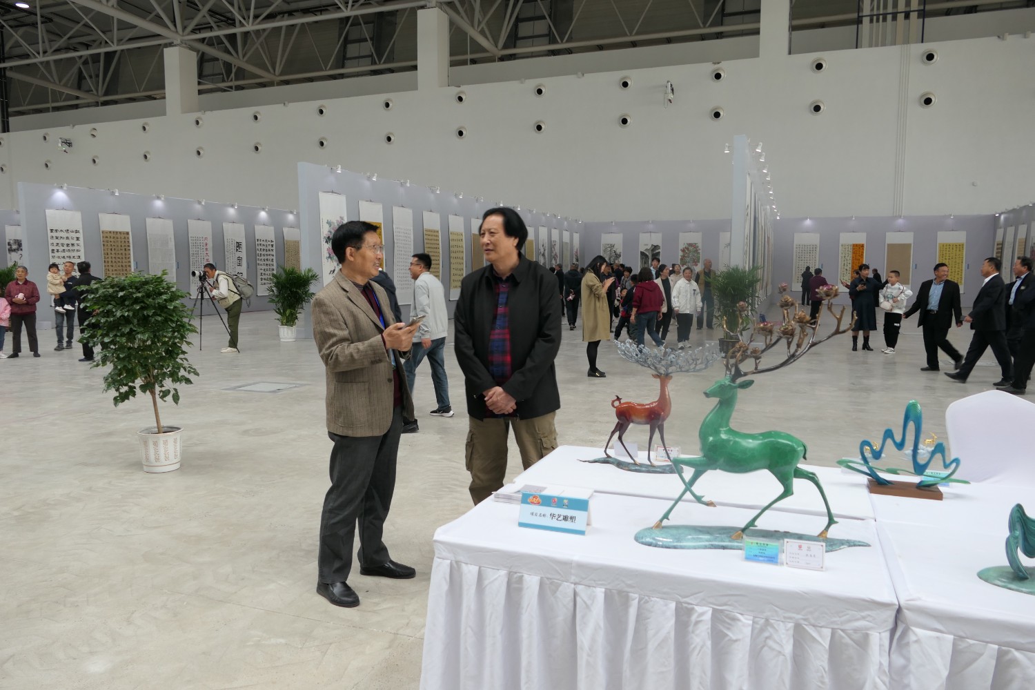 2024-1-222023年11月4日,“永遠(yuǎn)跟黨走·奮進(jìn)新征程”山東老年書畫精品展在臨朐國(guó)際會(huì)展中心開幕。出席開幕式的老領(lǐng)導(dǎo)和嘉賓有:原文化部直屬機(jī)關(guān)黨委常務(wù)副書記、中國(guó)老年書畫研究會(huì)黨支部書記王吉,山東省人大常委會(huì)原副主任國(guó)家森,山東省高級(jí)人民法院原院長(zhǎng)尹忠顯,山東省人大常委會(huì)原常委、財(cái)經(jīng)委主任委員馬金忠,山東老年大學(xué)原副校長(zhǎng)孫波,山東老年書畫研究會(huì)會(huì)長(zhǎng)吳永福、副會(huì)長(zhǎng)兼秘書長(zhǎng)王榮福,副會(huì)長(zhǎng)楊文俠、副會(huì)長(zhǎng)王健。濰坊市委原常委、秘書長(zhǎng)李光信,濰坊市人大常委會(huì)副主任韓幸福,濰坊市老年(老干部)書畫研究會(huì)會(huì)長(zhǎng)于友國(guó),濰坊市老干部服務(wù)中心主任王德斌、副主任郭振森,濰坊市委常委、臨朐縣委書記劉艷芳,臨朐縣人大常委會(huì)主任田立軍,臨朐縣政協(xié)主席王秀剛,臨朐縣委常委、辦公室主任王磊等領(lǐng)導(dǎo),臨朐縣人大常委主任田立軍同志主持開幕式,臨朐縣老干部書畫研究會(huì)鄧世華書記匯報(bào)“山東老年書畫精品展”籌備情況,臨朐縣委書記劉艷芳同志講話,山東老年書畫研究會(huì)會(huì)長(zhǎng)吳永福在致辭,中國(guó)老年書畫研究會(huì)王吉書記(中)宣布“山東老年書畫精品展”開幕,各級(jí)領(lǐng)導(dǎo)及書畫作者嘉賓出席開幕式。 中國(guó)工美藝術(shù)大師傅紹相書法作品“毛澤東詩(shī)詞沁園春?長(zhǎng)沙“參加展出。華藝雕塑遴選20余件青銅作品參加活動(dòng),傅紹相與朋友嘉賓合影留念,華藝精湛的青銅技藝,精美的青銅作品得到各級(jí)領(lǐng)導(dǎo)和觀眾的高度贊譽(yù)。