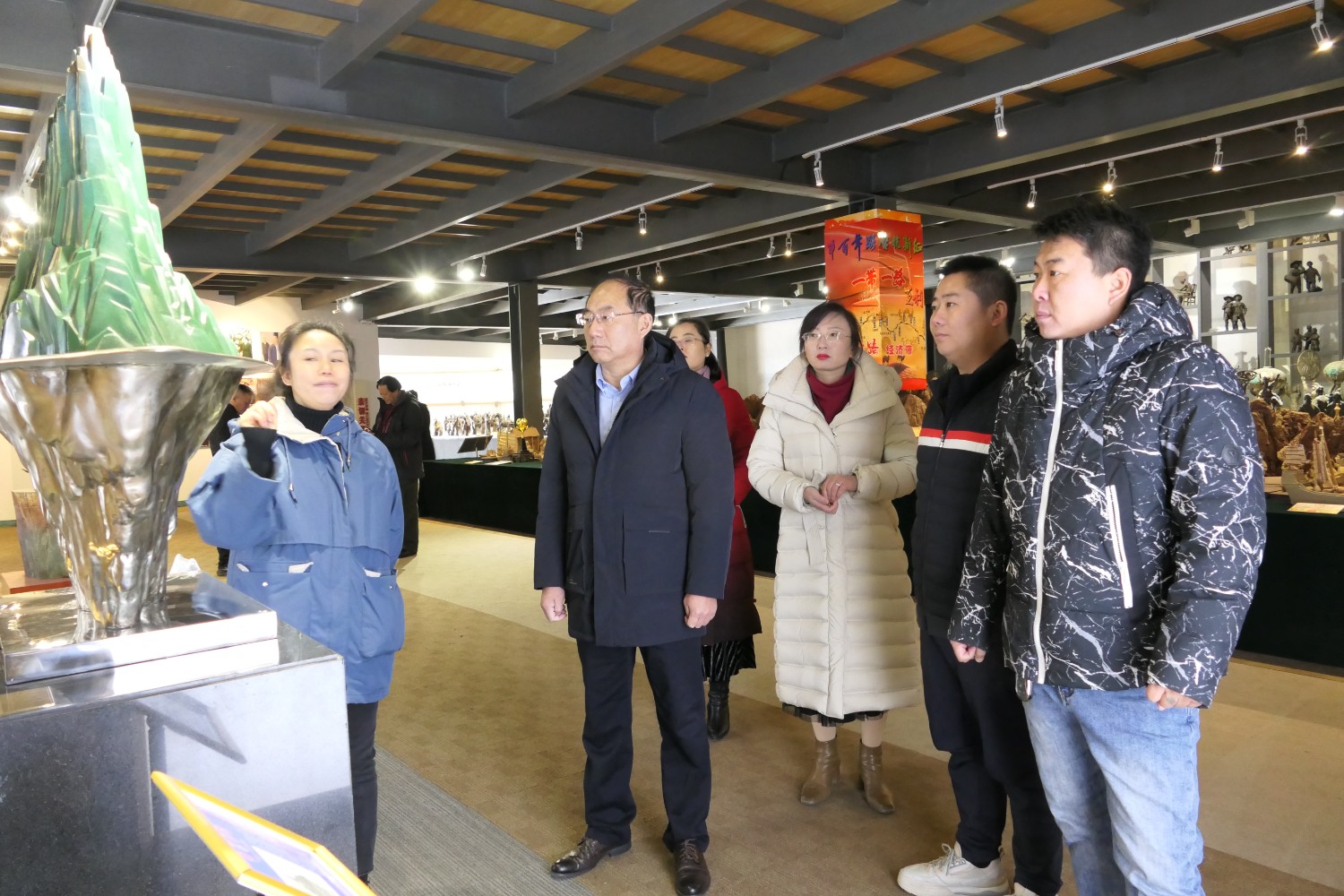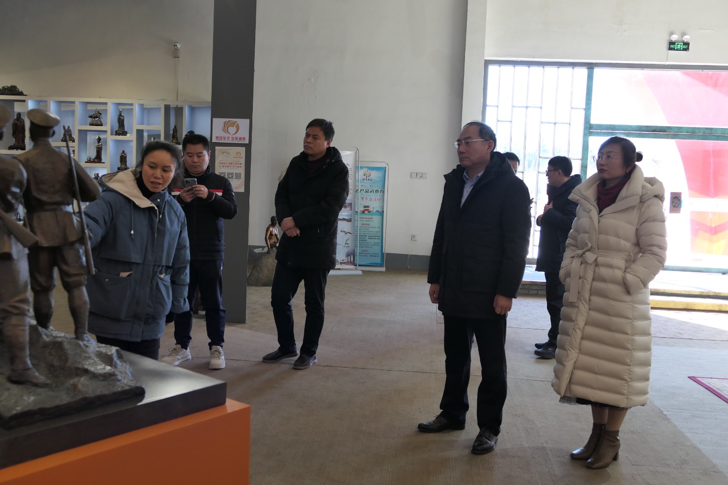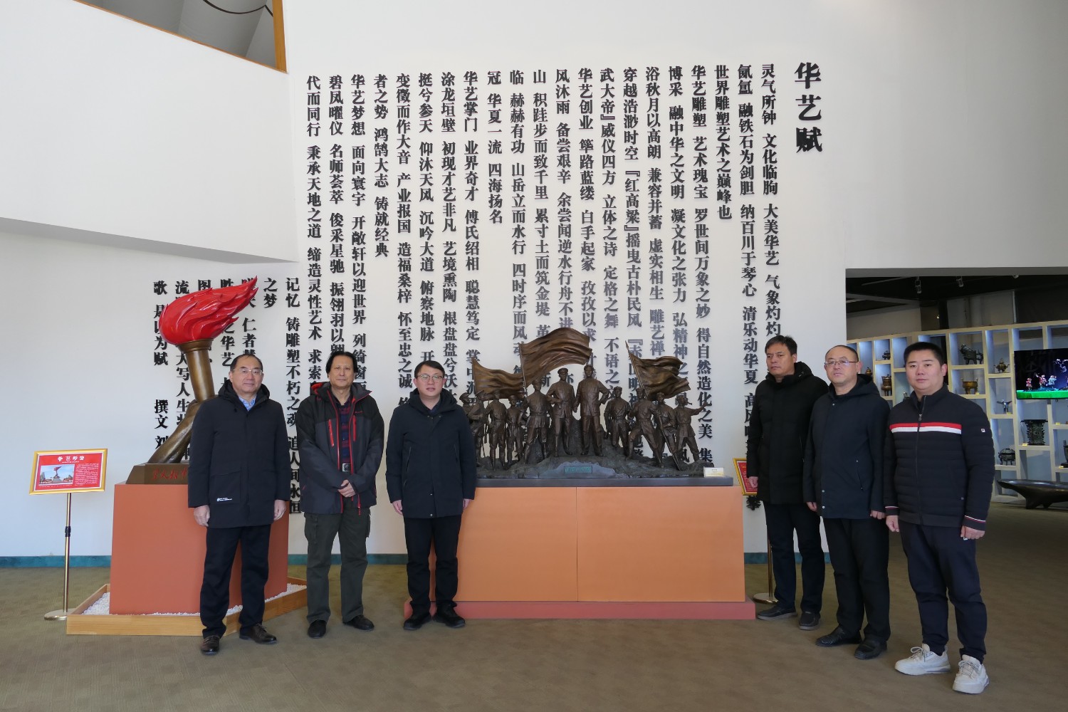 2023年12月20日,山東?;葔A樹(shù)脂有限公司黨總支書(shū)記郝宏亮一行蒞臨華藝雕塑參觀指導(dǎo),國(guó)大師傅紹相向嘉賓介紹雕塑藝術(shù)。
