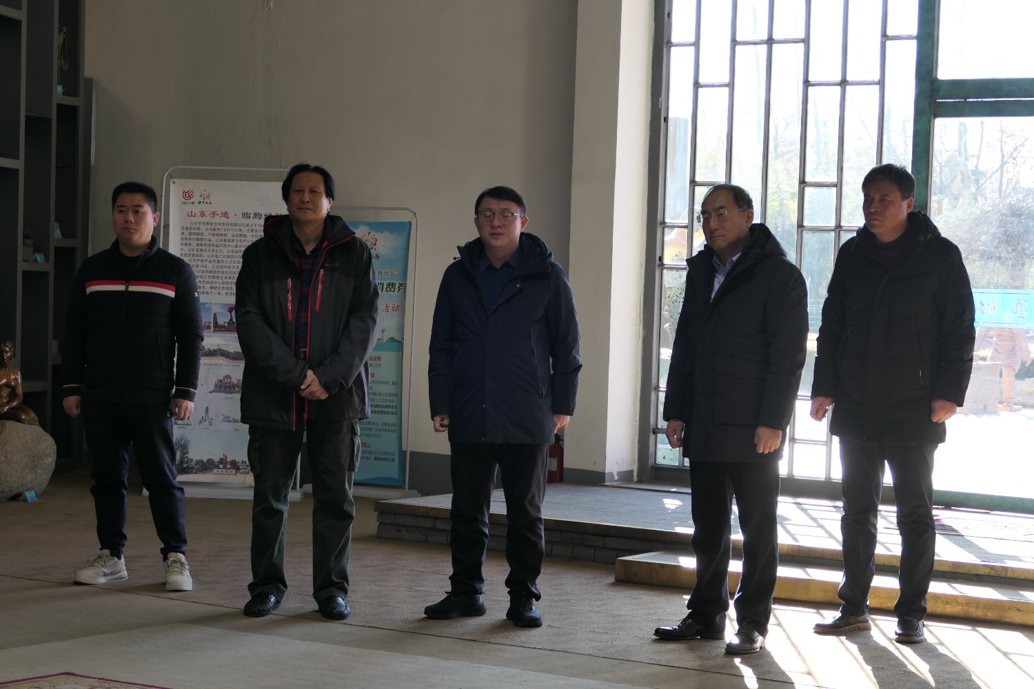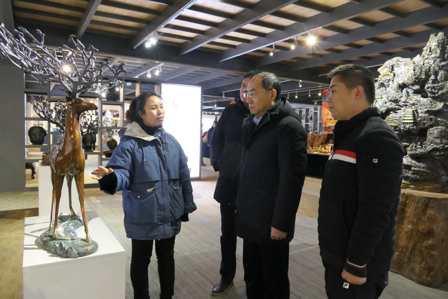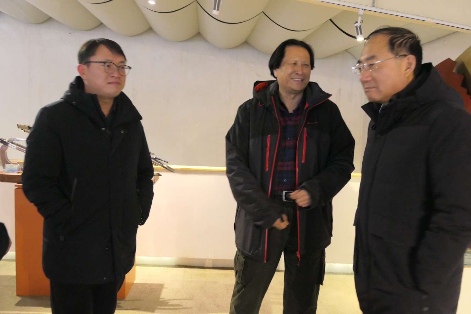 2023年12月20日,山東?;葔A樹(shù)脂有限公司黨總支書(shū)記郝宏亮一行蒞臨華藝雕塑參觀指導(dǎo),國(guó)大師傅紹相向嘉賓介紹雕塑藝術(shù)。