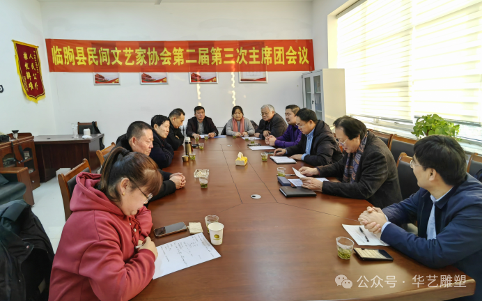 2024年1月27日,臨朐縣民間文藝家協(xié)會(huì)在冶源召開(kāi)第二屆第三次主席團(tuán)會(huì)議,縣文聯(lián)社科聯(lián)黨組書(shū)記、主席張克奇蒞臨現(xiàn)場(chǎng)并講話(huà)。參加會(huì)議的人員有:臨朐縣民間文藝家協(xié)會(huì)主席傅紹相,常務(wù)副主席兼秘書(shū)長(zhǎng)劉文遠(yuǎn),副主席連恩平、范文剛、趙永德、鄭成雙;副秘書(shū)長(zhǎng)譚建偉、蔣靜、季韋韋、孫秀華。會(huì)議由常務(wù)副主席秘書(shū)長(zhǎng)劉文遠(yuǎn)主持。首先,由副秘書(shū)長(zhǎng)譚建偉作2023年度財(cái)務(wù)工作報(bào)告;第二項(xiàng),根據(jù)協(xié)會(huì)發(fā)展需要,報(bào)請(qǐng)縣文聯(lián)批準(zhǔn),選舉增補(bǔ)了劉廣海同志為民協(xié)副主席。第三項(xiàng),縣民協(xié)主席傅紹相匯報(bào)2023年度協(xié)會(huì)的工作發(fā)展及活動(dòng)情況。傅主席講話(huà)中說(shuō),今年我們民協(xié)成功舉辦了“鄉(xiāng)村振興齊魯樣板—產(chǎn)業(yè)興旺有好戲”2023(臨朐好手藝)民間藝術(shù)?工藝美術(shù)精品展銷(xiāo)會(huì)暨首屆臨朐(舟超杯)設(shè)計(jì)創(chuàng)新大賽,得到了省市縣各級(jí)領(lǐng)導(dǎo)和協(xié)會(huì)領(lǐng)導(dǎo)的充分肯定和認(rèn)可。省市有關(guān)領(lǐng)導(dǎo)在參觀現(xiàn)場(chǎng)時(shí)說(shuō),此次大展由縣民協(xié)成功舉辦,這在濰坊市還是空前的,這是一個(gè)很好地開(kāi)端!此次展覽實(shí)現(xiàn)了老中青藝術(shù)家,同臺(tái)獻(xiàn)藝,國(guó)大師、省大師、市大師代表性作品齊聚,是一次八仙過(guò)海、各顯其能的藝術(shù)交流盛會(huì),充分體現(xiàn)了“山東手造”技藝的創(chuàng)新發(fā)展,彰顯了臨朐民間藝術(shù)的學(xué)術(shù)性和獨(dú)特性。