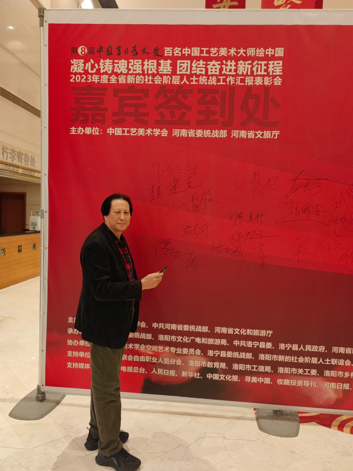 2024-3-112023年12月31日,由中國工藝美術學會、河南省委統(tǒng)戰(zhàn)部、河南省文化旅游廳共同主辦的第八屆中國【當日】藝術展暨百名中國工藝美術大師繪中國活動在洛陽隆重舉辦。出席開幕式的主要領導及嘉賓有中國工藝美術學會黨委書記、理事長才大穎,河南省委統(tǒng)戰(zhàn)部副部長、一級巡視員梁險峰,洛陽市人大常委會副主任雷雪芹,洛陽市政協(xié)副主席魏險峰,中國工藝美術學會黨委副書記王建良,河南省委統(tǒng)戰(zhàn)部新階層人士統(tǒng)戰(zhàn)工作處處長、二級巡視員張?zhí)礻嚕鍖幙h縣長王瑞,洛寧縣委統(tǒng)戰(zhàn)部部長易劍波,中國工藝美術大師代表:趙國安、楊德全、苗煒、鄭國明、熊建新、袁洪濱、傅紹相、王芝文、苗長強、雷天勇、孔相卿、賈會成、仵孟超、李竹玲、史延春、龐永輝、郭愛和,以及相關單位領導、專家、學者近二百余人出席了此次活動。