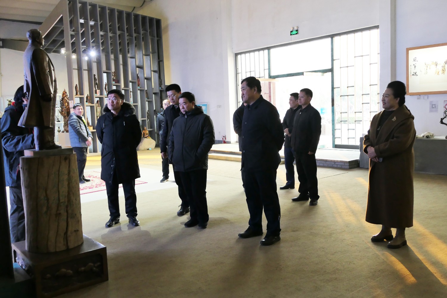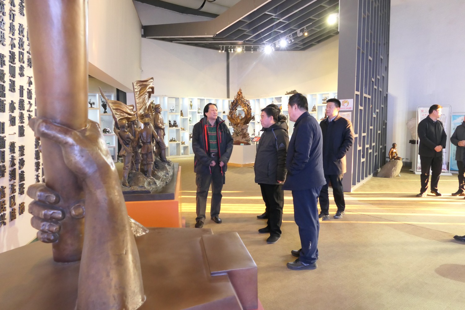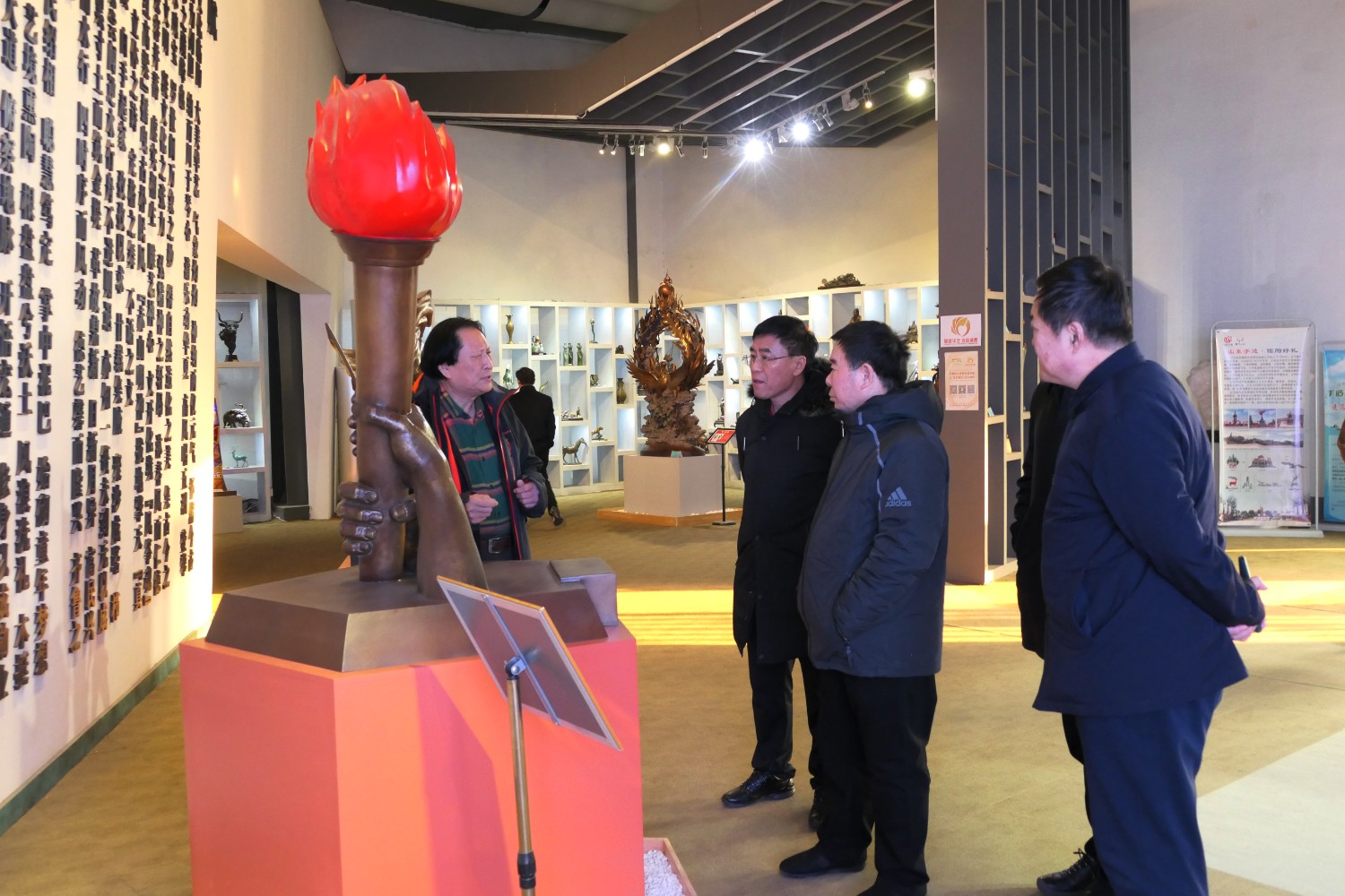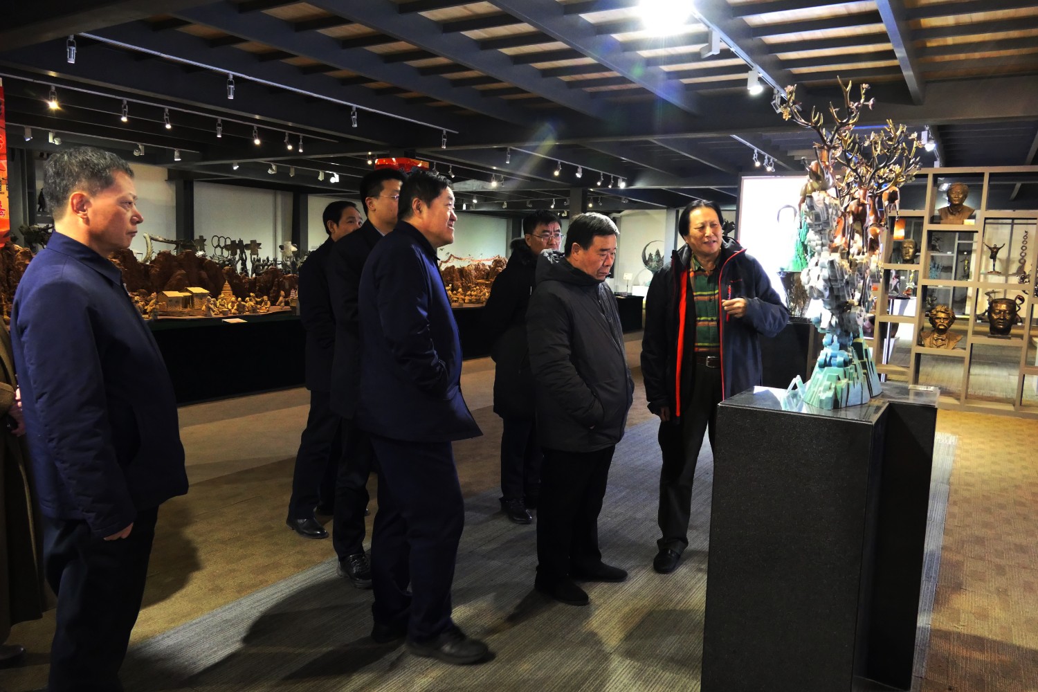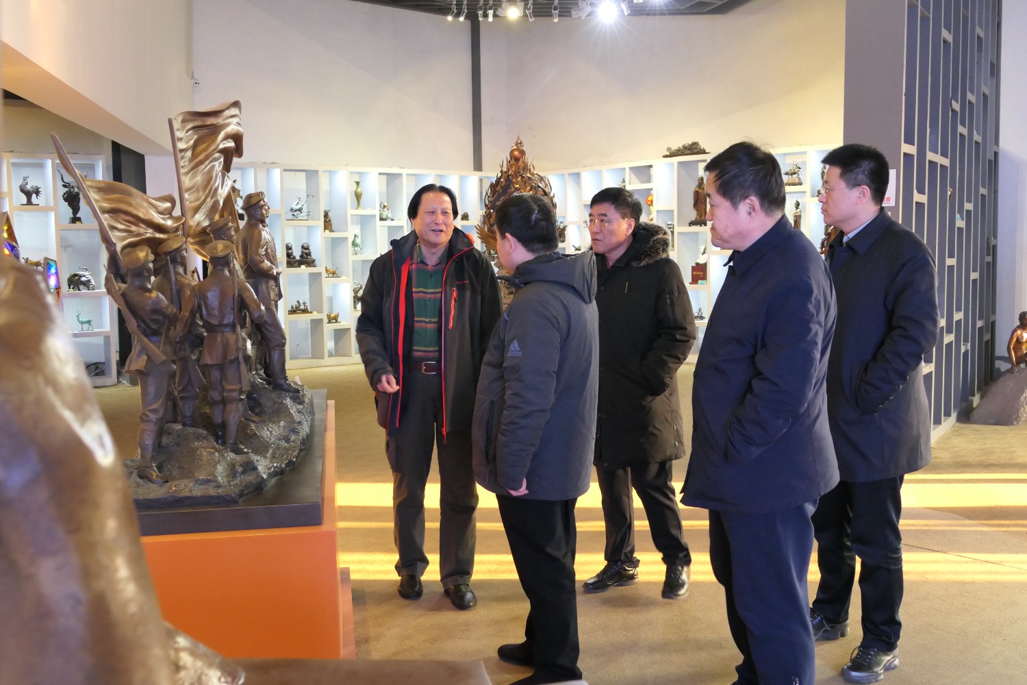 2023年12月23日,原濰坊市委書(shū)記劉曙光,原濰坊市政協(xié)主席蘇立科,原濰坊市政協(xié)主席劉建國(guó)等濰坊市老領(lǐng)導(dǎo),在臨朐縣委副書(shū)記、縣長(zhǎng)陳誠(chéng)陪同下,蒞臨華藝雕塑參觀指導(dǎo),國(guó)大師傅紹相向老領(lǐng)導(dǎo)介紹山東手造文創(chuàng)作品及雕塑藝術(shù)。 ?