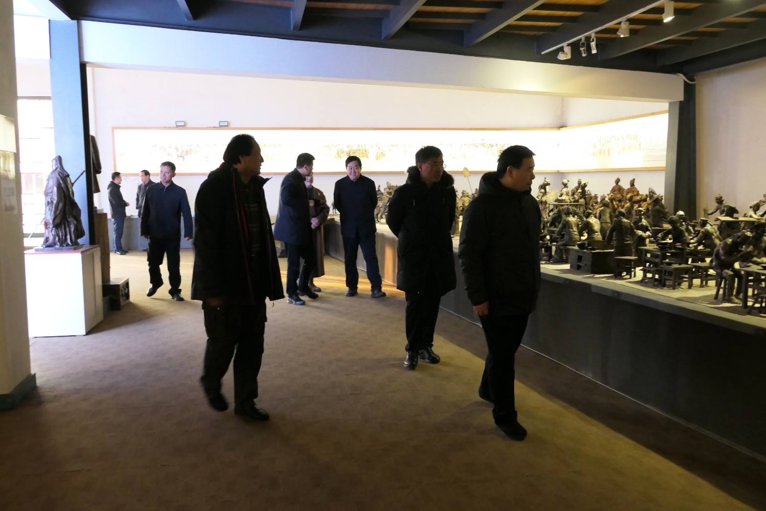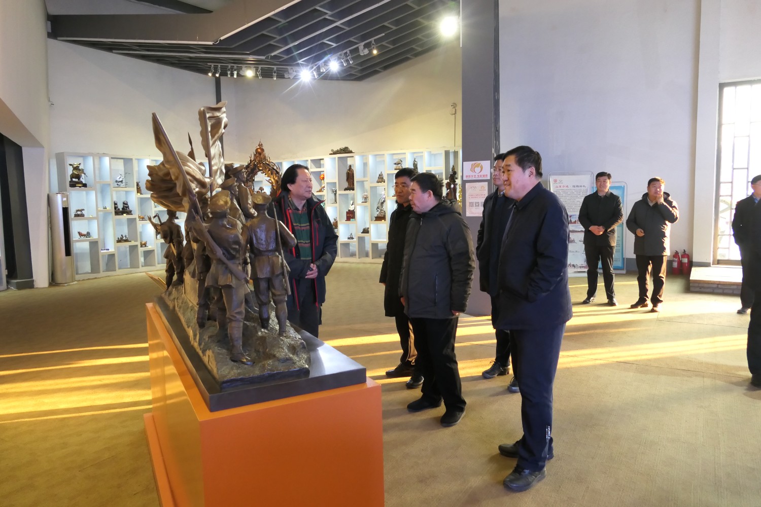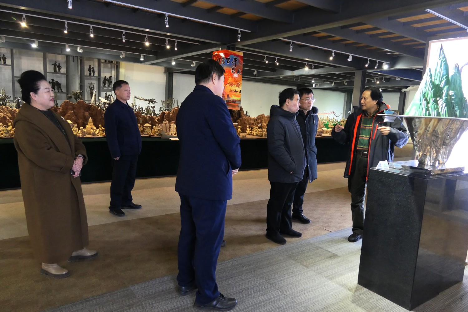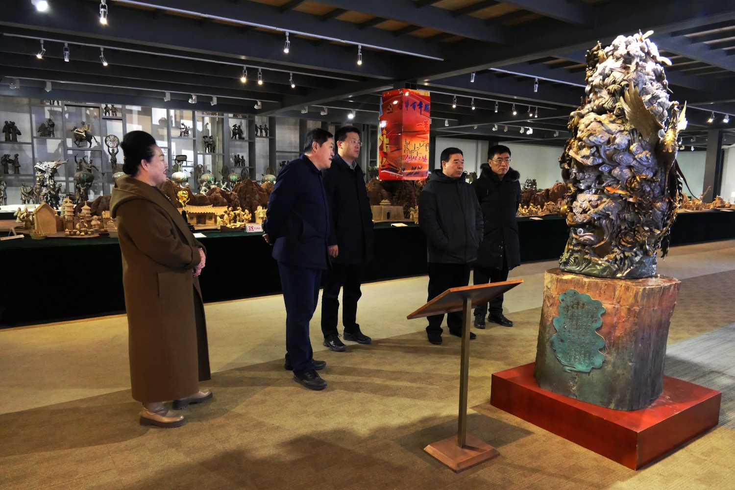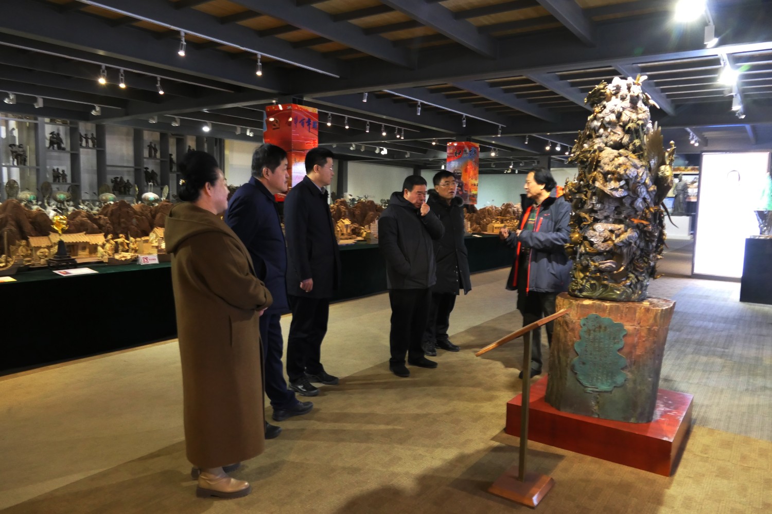 2023年12月23日,原濰坊市委書(shū)記劉曙光,原濰坊市政協(xié)主席蘇立科,原濰坊市政協(xié)主席劉建國(guó)等濰坊市老領(lǐng)導(dǎo),在臨朐縣委副書(shū)記、縣長(zhǎng)陳誠(chéng)陪同下,蒞臨華藝雕塑參觀指導(dǎo),國(guó)大師傅紹相向老領(lǐng)導(dǎo)介紹山東手造文創(chuàng)作品及雕塑藝術(shù)。 ?