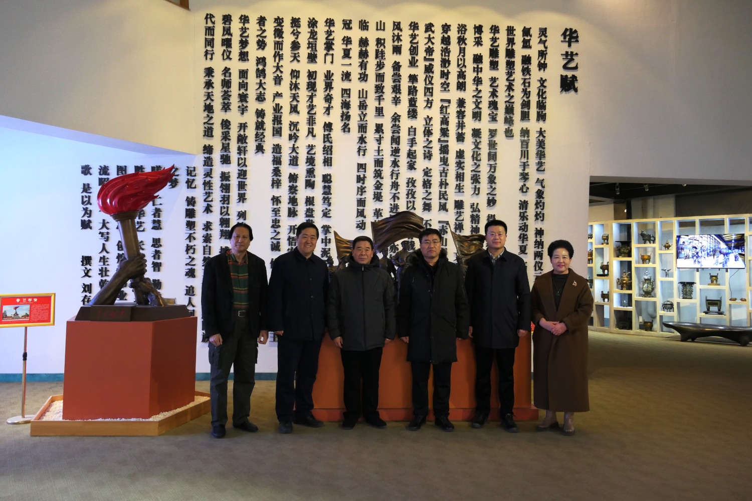 2023年12月23日,原濰坊市委書(shū)記劉曙光,原濰坊市政協(xié)主席蘇立科,原濰坊市政協(xié)主席劉建國(guó)等濰坊市老領(lǐng)導(dǎo),在臨朐縣委副書(shū)記、縣長(zhǎng)陳誠(chéng)陪同下,蒞臨華藝雕塑參觀指導(dǎo),國(guó)大師傅紹相向老領(lǐng)導(dǎo)介紹山東手造文創(chuàng)作品及雕塑藝術(shù)。