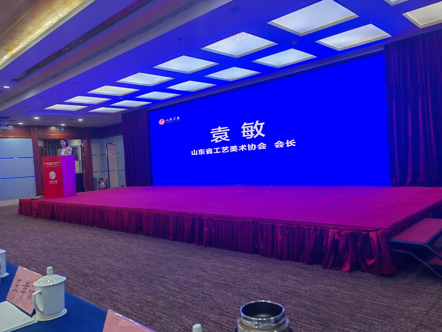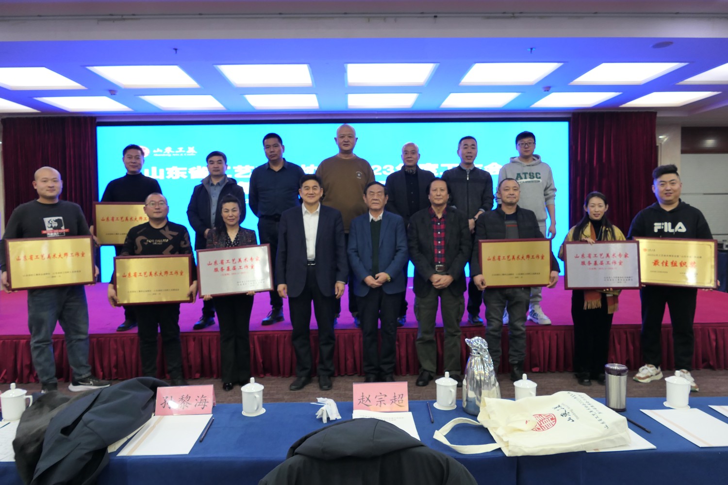 山東省工業(yè)和信息化廳一級(jí)巡視員羅新軍,山東省社會(huì)主義學(xué)院黨組成員、副院長(zhǎng)孫黎海,山東省輕工聯(lián)社黨組成員、理事會(huì)副主任初建強(qiáng),山東省輕工紡織工會(huì)委員會(huì)主席劉磊,山東省人力資源和社會(huì)保障廳專業(yè)技術(shù)人員管理處副處長(zhǎng)楊俊,山東工藝美術(shù)學(xué)院現(xiàn)代手工藝術(shù)學(xué)院副院長(zhǎng)惠巖,山東省工藝美術(shù)協(xié)會(huì)會(huì)長(zhǎng)袁敏出席會(huì)議。山東省工藝美術(shù)協(xié)會(huì)副會(huì)長(zhǎng)李元元主持會(huì)議。