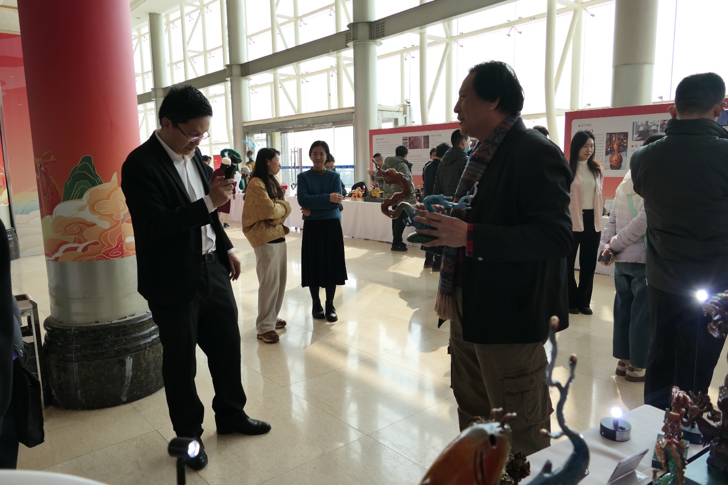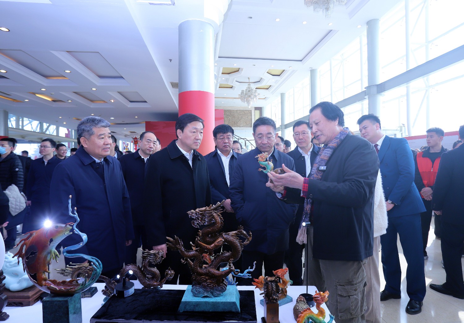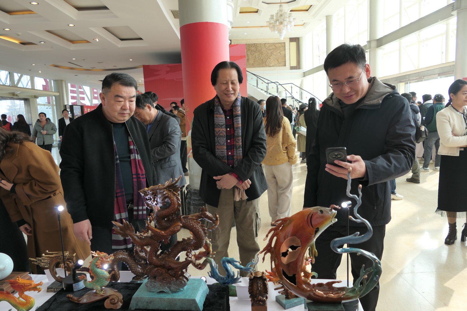 2024-4-22024年3月11日,二月二“龍點(diǎn)晴、龍?zhí)ь^”風(fēng)箏放飛活動(dòng)在濰城區(qū)浮煙山國(guó)際風(fēng)箏放飛廣場(chǎng)舉行。山東省委常委、宣傳部部長(zhǎng)白玉剛,濰坊市委副書(shū)記、市長(zhǎng)劉建軍等領(lǐng)導(dǎo)出席活動(dòng),并參觀了“龍年主題”文創(chuàng)展,中國(guó)工藝美術(shù)大師傅紹相設(shè)計(jì)的甲辰龍年青銅賀歲禮品,得到了各位領(lǐng)導(dǎo)的高度贊譽(yù),白玉剛部長(zhǎng)、劉建軍市長(zhǎng)與傅紹相親切交流了“山東手造”青銅文創(chuàng)作品的研發(fā)情況及“黃河龍”青銅作品的設(shè)計(jì)制作。傅紹相接受濰坊電視臺(tái)記者采訪,并與參觀華藝雕塑龍年青銅藝術(shù)品的外國(guó)留學(xué)生合影留念。