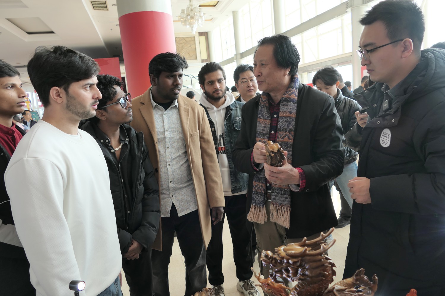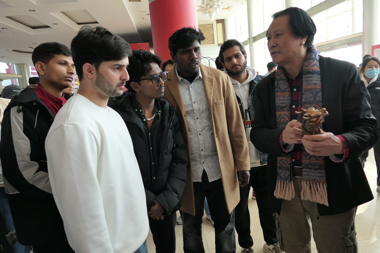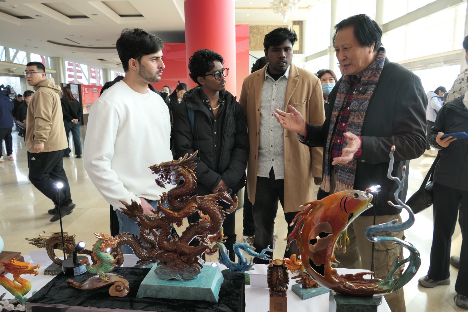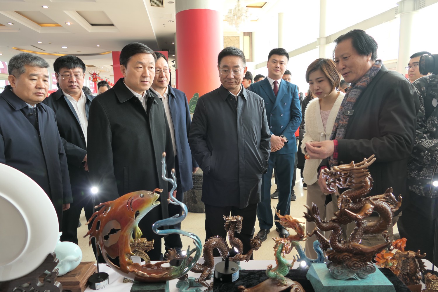 2024-4-22024年3月11日,二月二“龍點(diǎn)晴、龍?zhí)ь^”風(fēng)箏放飛活動(dòng)在濰城區(qū)浮煙山國(guó)際風(fēng)箏放飛廣場(chǎng)舉行。山東省委常委、宣傳部部長(zhǎng)白玉剛,濰坊市委副書(shū)記、市長(zhǎng)劉建軍等領(lǐng)導(dǎo)出席活動(dòng),并參觀了“龍年主題”文創(chuàng)展,中國(guó)工藝美術(shù)大師傅紹相設(shè)計(jì)的甲辰龍年青銅賀歲禮品,得到了各位領(lǐng)導(dǎo)的高度贊譽(yù),白玉剛部長(zhǎng)、劉建軍市長(zhǎng)與傅紹相親切交流了“山東手造”青銅文創(chuàng)作品的研發(fā)情況及“黃河龍”青銅作品的設(shè)計(jì)制作。傅紹相接受濰坊電視臺(tái)記者采訪,并與參觀華藝雕塑龍年青銅藝術(shù)品的外國(guó)留學(xué)生合影留念。