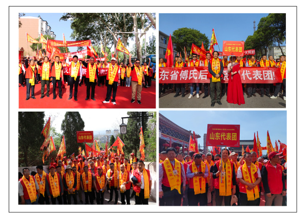 5月5日(農(nóng)歷乙巳四月初八),萬人攢動、聲勢浩大的踩街巡游活動拉開序幕。平陸賓館莊嚴肅穆,政府門前拜祖隊伍群星列隊,個個衣冠整肅,蓄勢待發(fā)。上午8時許,踩街儀式正式開始,六十多個方隊,浩浩蕩蕩地向傅相祠廣場行進,全程約1.5公里。各省代表團隊伍綿延2公里,宛如一條氣勢磅礴的文化長龍。山東傅氏作為此次活動的重要力量,派出了300余人的代表團奔赴祖地,積極參與巡游踩街,他們身著慶典紅衣,胸前系著“尊宗敬祖、孝道傳承”的金色綬帶,精神抖擻,與祖地人民熱情互動,展現(xiàn)出深厚的宗族情誼。踩街巡游活動結束后,眾人齊聚傅相祠大典廣場。人潮如織,彩旗飄飄,鑼鼓喧天,盛況空前。10時許,“中華圣人傅說誕辰3360周年紀念大典”在悠揚的古樂聲中拉開了帷幕。一項項儀式飽含著傅氏宗親對先祖的深情緬懷。種植千秋松柏,寓意著傅氏家族如松柏般常青,家族文化源遠流長;鐘鳴九聲,擊鼓56響,象征著傅說文化在中華大地的深遠影響,以及中華民族的團結一心;敬獻花籃,表達了對傅說的崇高敬意;全體宗親依次鞠躬、跪拜上香,動作虔誠,寄托著對先祖的追思和敬仰。