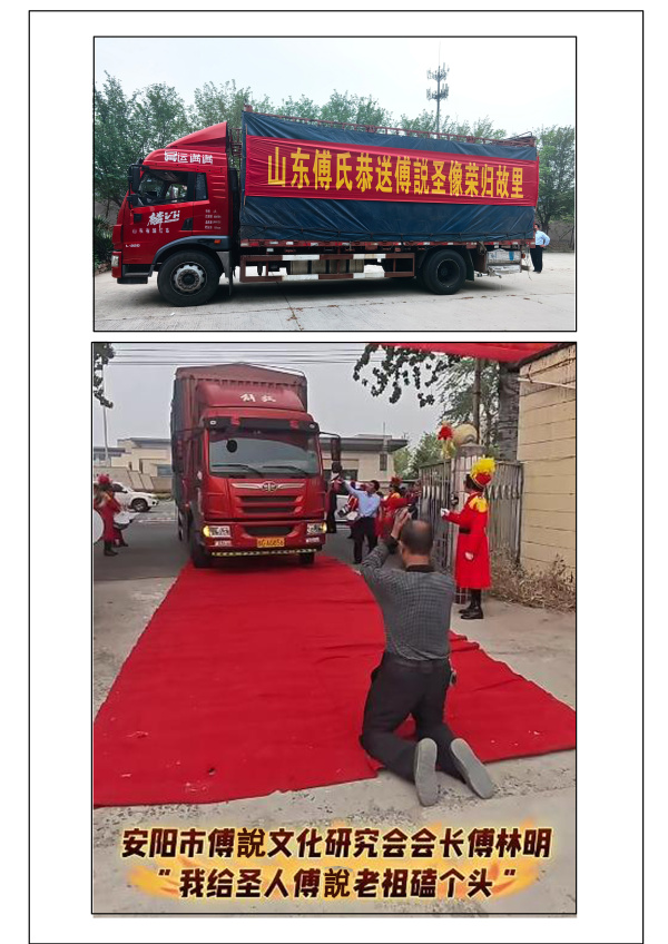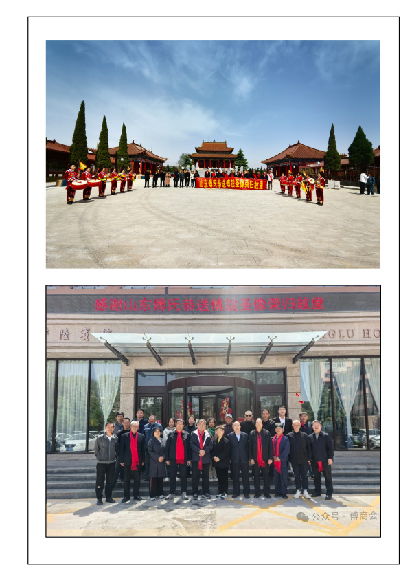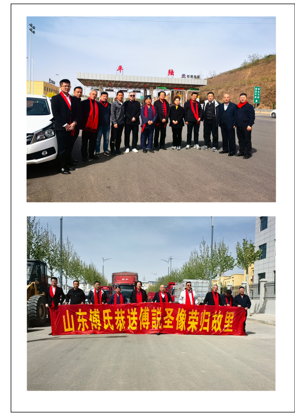 4月12日《傅說圣像》啟程前往終目的地——山西平陸傅相祠,平陸縣傅圣故里文化研究會會長傅寶柱率領傅彩麗等宗親舉行了盛大的迎接儀式,山東護送團隊與平陸迎接隊伍一同前往傅相祠,在大家的祝福聲中,《傅說圣像》端坐于傅相祠臺階之上。