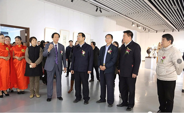 山東理工大學黨委書記呂傳毅;山東省輕工集體企業(yè)聯(lián)社黨組成員、副主任李修德;淄博市政協(xié)副主席徐培棟;山東省輕工集體企業(yè)聯(lián)社企業(yè)處處長曹慶生;山東省輕工集體企業(yè)聯(lián)社離退休干部處處長張玉潔;山東省工藝美術(shù)協(xié)會會長袁敏;淄博市文化旅游局、二級調(diào)研員李玉福;山東省工藝美術(shù)學學會會長、山東華藝雕塑藝術(shù)股份有限公司董事長傅紹相;淄博市政協(xié)書畫院執(zhí)行會長、淄博市鄉(xiāng)賢文化促進會副會長耿毓亮;淄博市政協(xié)常委、淄博市政協(xié)農(nóng)業(yè)和農(nóng)村委員會副主任李玲;淄博市陶琉輕紡產(chǎn)業(yè)發(fā)展中心黨組成員、副主任何雅英;淄博市勞動人民文化宮主任紀悅通;張店區(qū)政協(xié)原副主席、市鄉(xiāng)賢文化促進會黨建聯(lián)絡員趙峰;中國工藝美術(shù)大師王一君、張明文;濰坊市工業(yè)發(fā)展中心副主任孟江;濰坊市工藝美術(shù)協(xié)會會長丁傳信;濰坊市工藝美術(shù)協(xié)會秘書長邢順建;臨朐縣文聯(lián)社科聯(lián)黨組書記、主席李詠梅;臨朐縣文聯(lián)社科聯(lián)黨組成員、文聯(lián)副主席張克奇;臨朐縣中醫(yī)院黨委書記譚波;濰坊市工藝美術(shù)協(xié)會副會長劉文遠;臨朐縣民間文藝家協(xié)會黨支部書記副主席李志君;山東華藝雕塑藝術(shù)股份有限公司總經(jīng)理譚宏偉以及省市工藝美術(shù)大師代表、淄博市陶琉企業(yè)負責人、山東四合美術(shù)館館長王麗君;淄博市鄉(xiāng)賢文化促進會秘書長邊優(yōu)瑋等100余人出席開幕式。