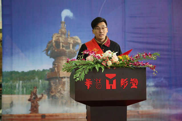 臨朐經(jīng)濟(jì)開發(fā)區(qū)管委會(huì)副主任、臨朐縣城關(guān)街道黨工委委員尹德忠講話,對(duì)公司一年以來(lái)所取得的成績(jī)表示祝賀和充分肯定,要求華藝雕塑團(tuán)隊(duì)進(jìn)一步堅(jiān)定信心,堅(jiān)持創(chuàng)業(yè)精神,加快新舊動(dòng)能轉(zhuǎn)換,蹄疾步穩(wěn)走好每一步,以科學(xué)的態(tài)度推進(jìn)創(chuàng)新發(fā)展,努力做強(qiáng)做大雕塑文化產(chǎn)業(yè),當(dāng)好振興臨朐文化經(jīng)濟(jì)的領(lǐng)頭羊,為全縣文化經(jīng)濟(jì)發(fā)展做出更大的貢獻(xiàn)。