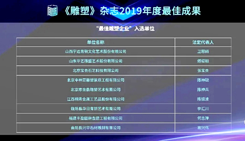 山東華藝雕塑藝術(shù)股份有限公司榮獲“雕塑企業(yè)”